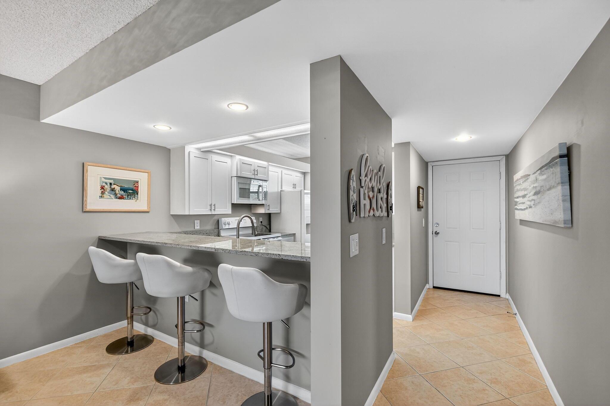 One of most desirable units at Whitehall! Top floor with spectacular lake views! Unit is highly updated with newer paint, carpet, impact windows, hot water heater and A/C. Other great features are open design kitchen with granite counter tops and no floating cabinets. Master bedroom has custom closet with plenty of storage. Second bedroom is like a separate apartment with a private entry and bathroom. Utility area has a laundry sink and second refrigerator. Extra room can be used as an office and for storage. The building has elevator access. The Whitehall community is gated and located adjacent to Dutchman's Pipe world class golf club and resort. Great location near shopping, restaurants airport, downtown, outlet mall and ocean.