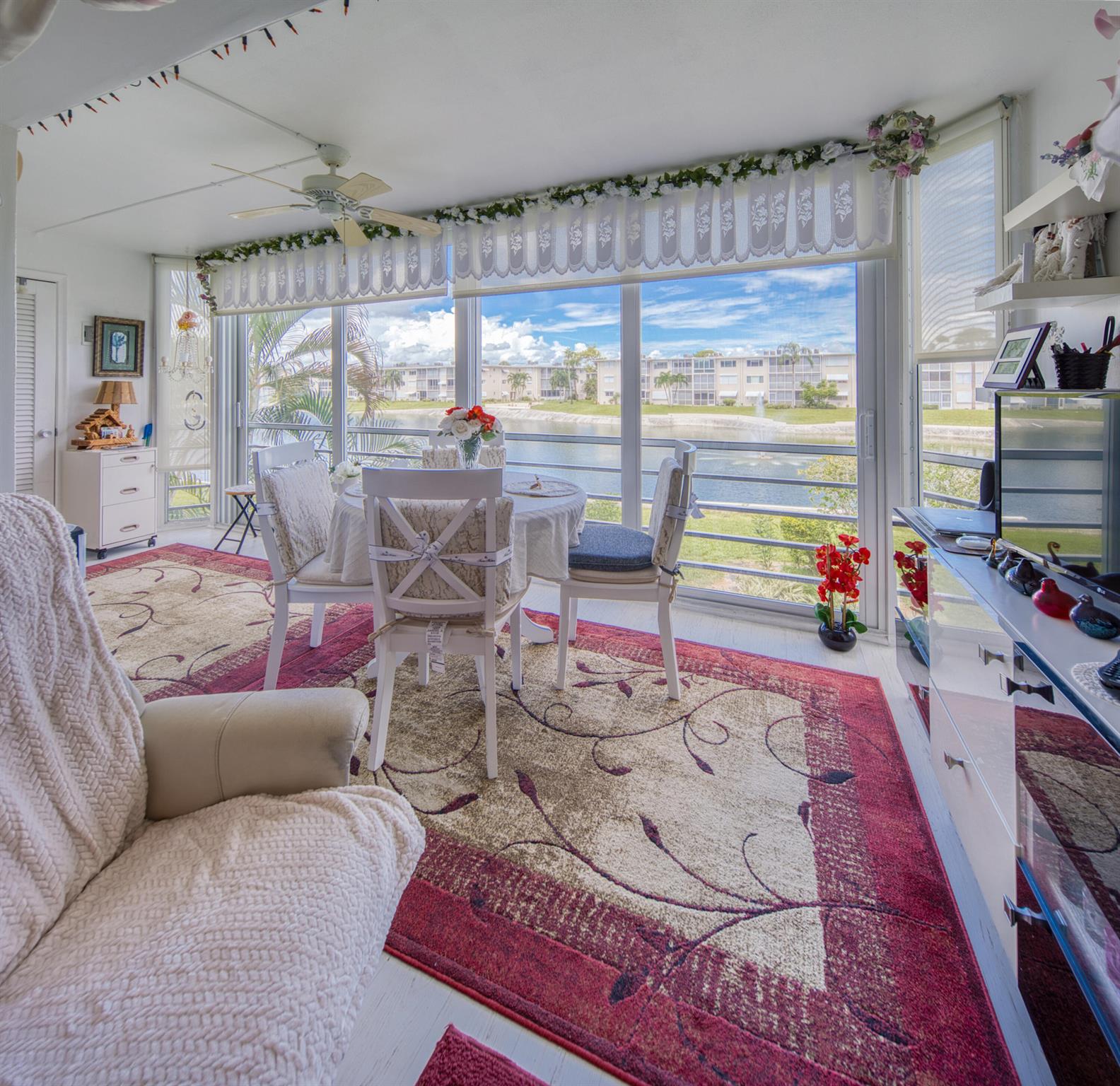 You've come home! This 55+ Lake Clarke Gardens 1 bedroom, 1,5 bathroom condo is the perfect home for the aesthetic lover. The living room opens to a bright patio with opening impact windows. Beautiful natural white kitchen with a granite counter tops opens to the cozy living room. Nice office nook in the bedroom. The laundry with brand new washing machines is located close to the apartment. Some of the furniture are for sale with the apartment. AC installed 2024. Water heater is about 6 months old. Almost new fridge. Very well kept apartment.
