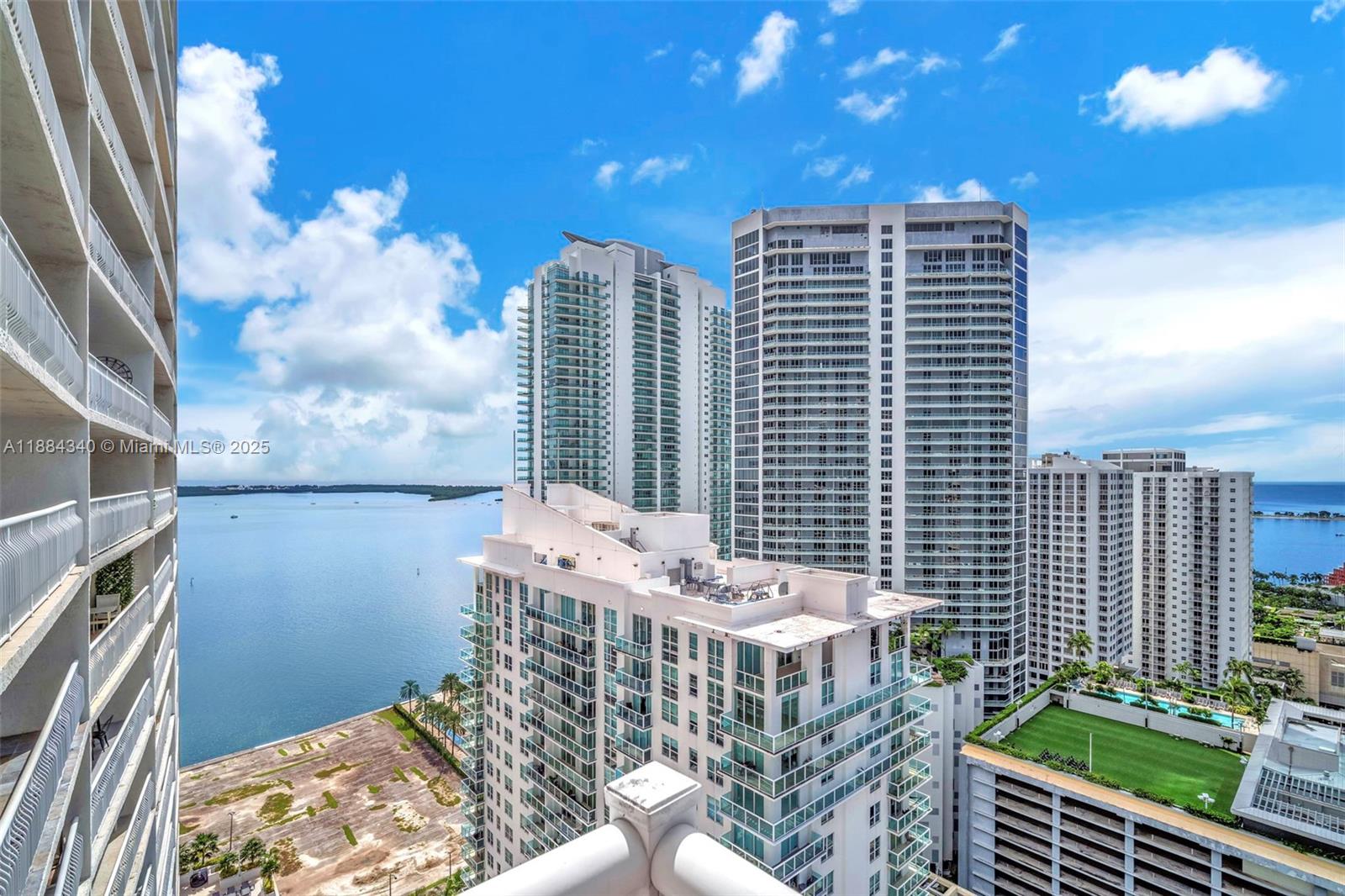Spectacular 31st floor corner condo in the heart of Brickell with 2 bedrooms, 2 bathrooms plus a den. Daily rentals allowed making it ideal for investors or as a private residence. Wraparound balcony with striking city views and partial bay vistas. Features include travertine floors, renovated bathrooms, custom closets, stainless steel appliances, granite countertops, motorized window shades and a high end washer and dryer. Two assigned parking spaces included. Building amenities offer a tropical pool deck overlooking the bay, two heated pools, oversized whirlpool, fitness center, kids play area, business center, party and game rooms with 24 hour security and valet.