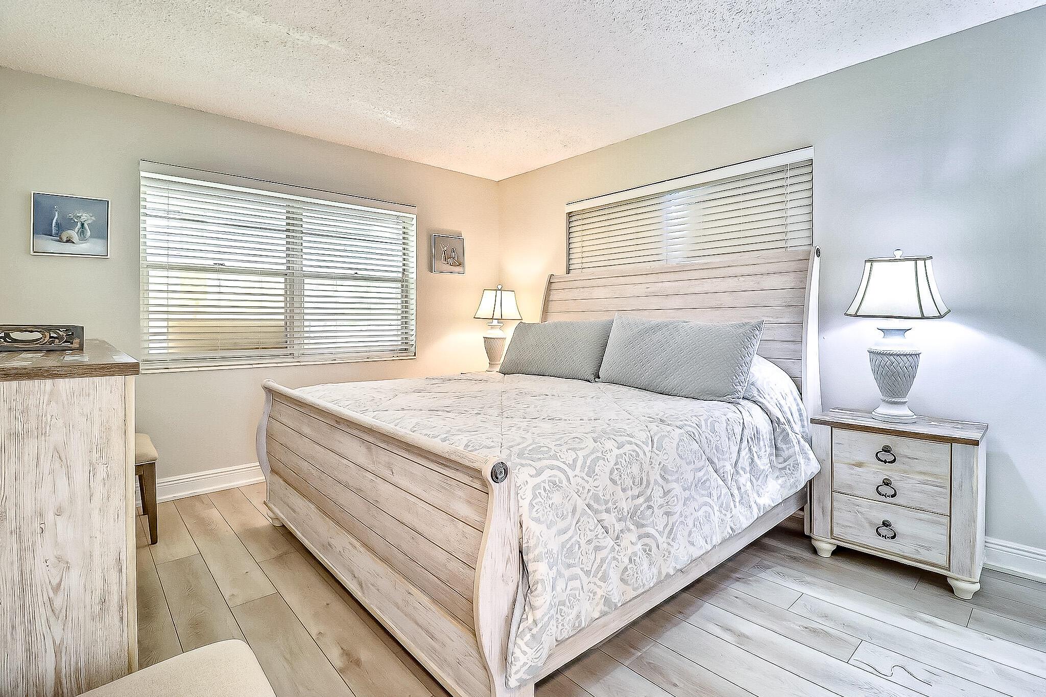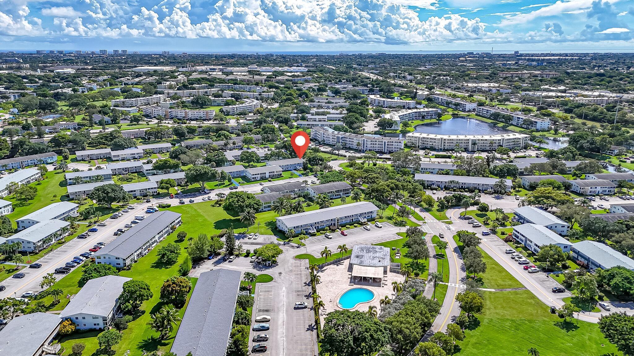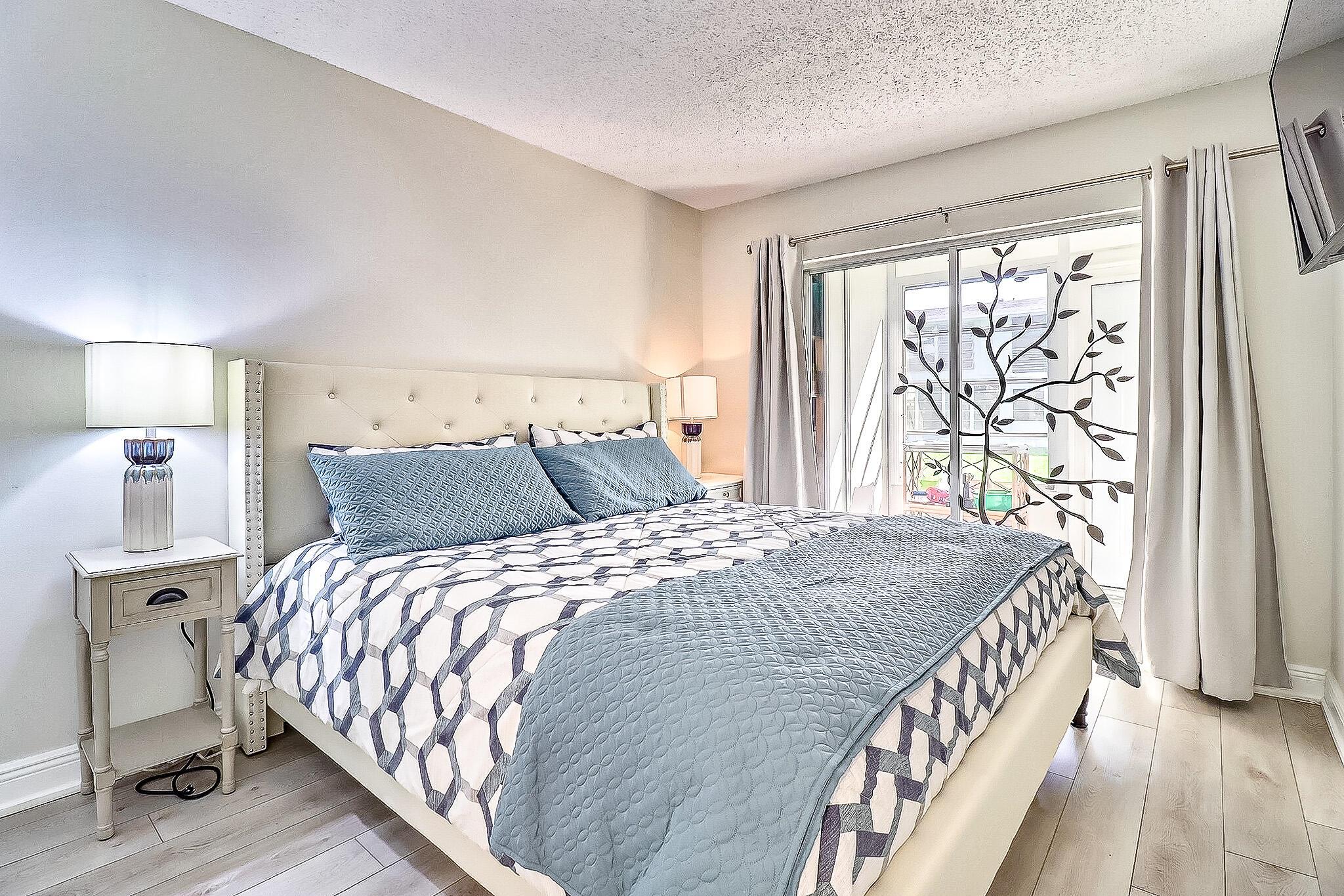 Immaculately clean and beautifully updated 1st floor corner condo in prime Century Village location! This bright, turnkey unit features luxury waterproof vinyl flooring, a modern kitchen with white cabinetry, glass backsplash, recessed lighting, and a double sink. Enjoy your morning coffee on your private back patio. The building offers a new shared brick paver patio with BBQ area. Available fully furnished and move-in ready at request. 2 walk in closets for extra storage space. Resort-style amenities include clubhouse, pools, theater, pickleball & more. Association 55+
