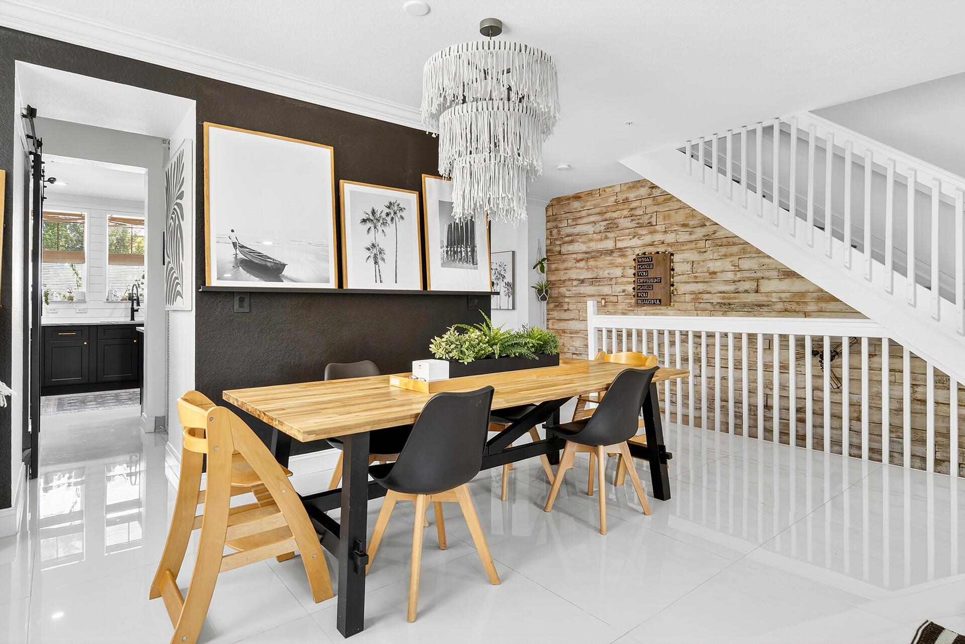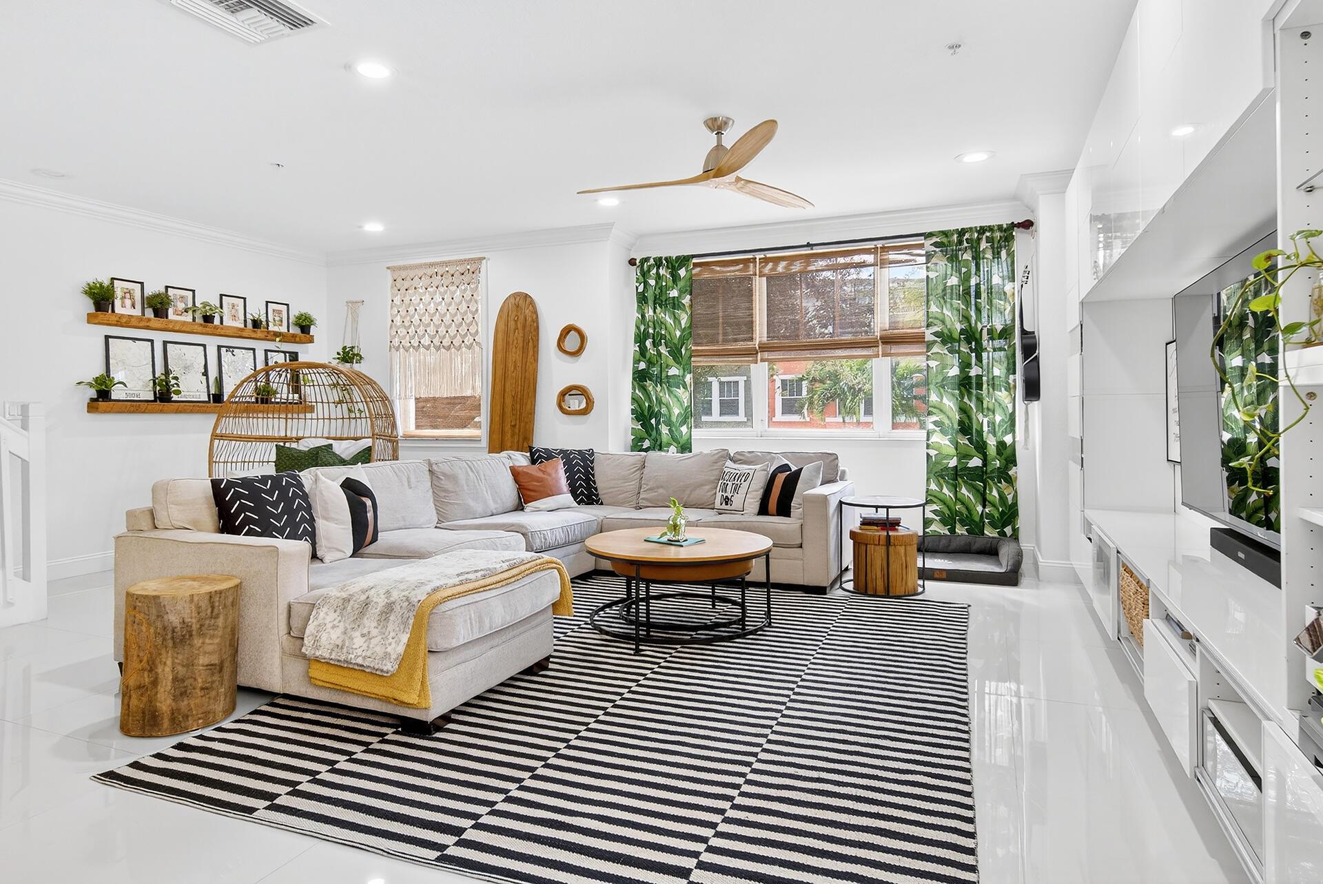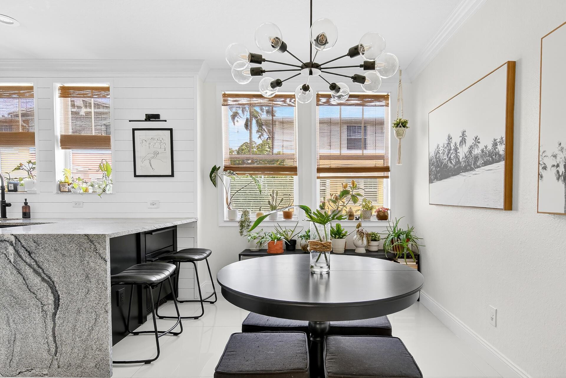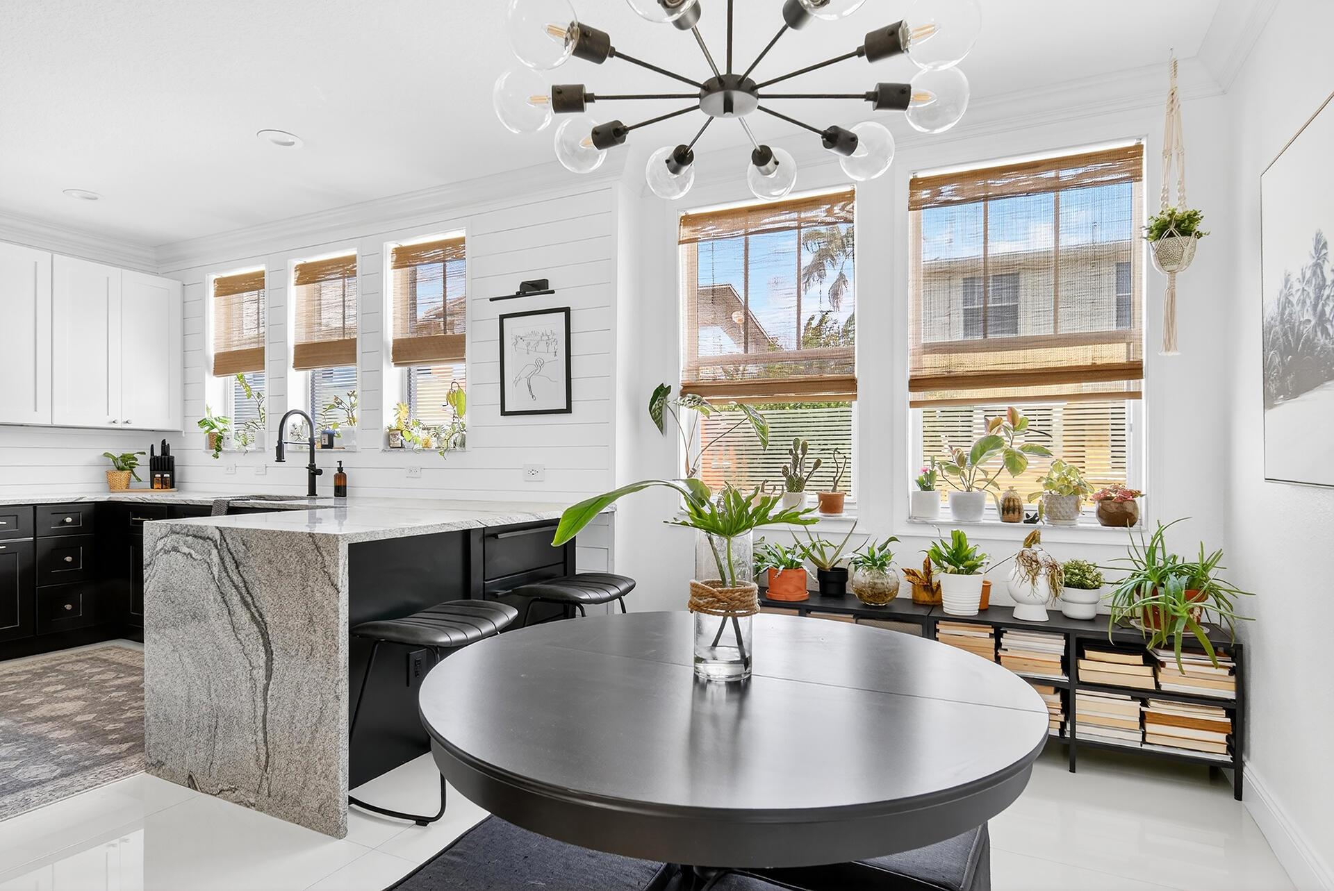 Stunning! Thoughtfully upgraded 4 bed 3.5 bath corner unit offers bright, open living with soaring 10' ceilings & tons of natural light. Features 32'' white tile & wood floors, crown molding, accent wall entry, modern fans, HUE lights, Nest thermo, etc. BRAND NEW kitchen is a showstopper, boasting granite waterfall edge with bar seating, slow-close cabinetry with 42'' uppers, open shelves, shiplap siding, black work station sink, & spacious pantry with a sliding barn door. Outfitted with top of the line Samsung Bespoke appliances, including a Family Hub touchscreen refrigerator & 3-drawer wine/beverage cooler, this kitchen is both stunning & smart. All bathrooms have been beautifully updated with new floors, counters, sinks, toilets, lighting & fixtures. New Bespoke W/D. 2 car garage.