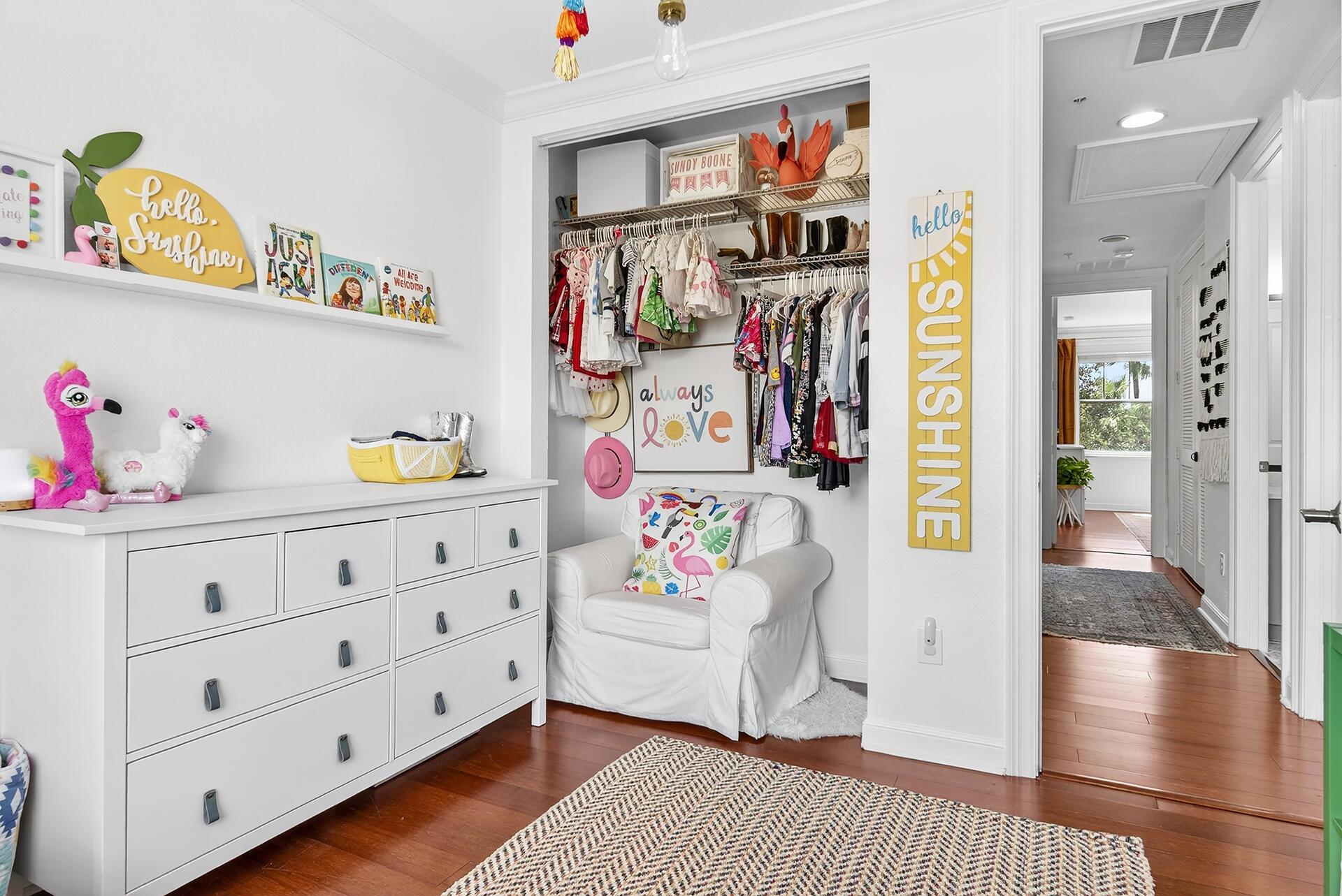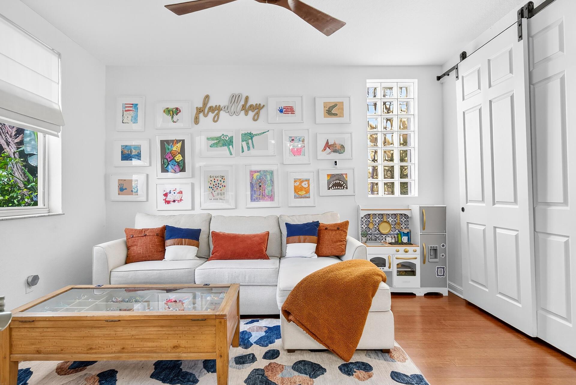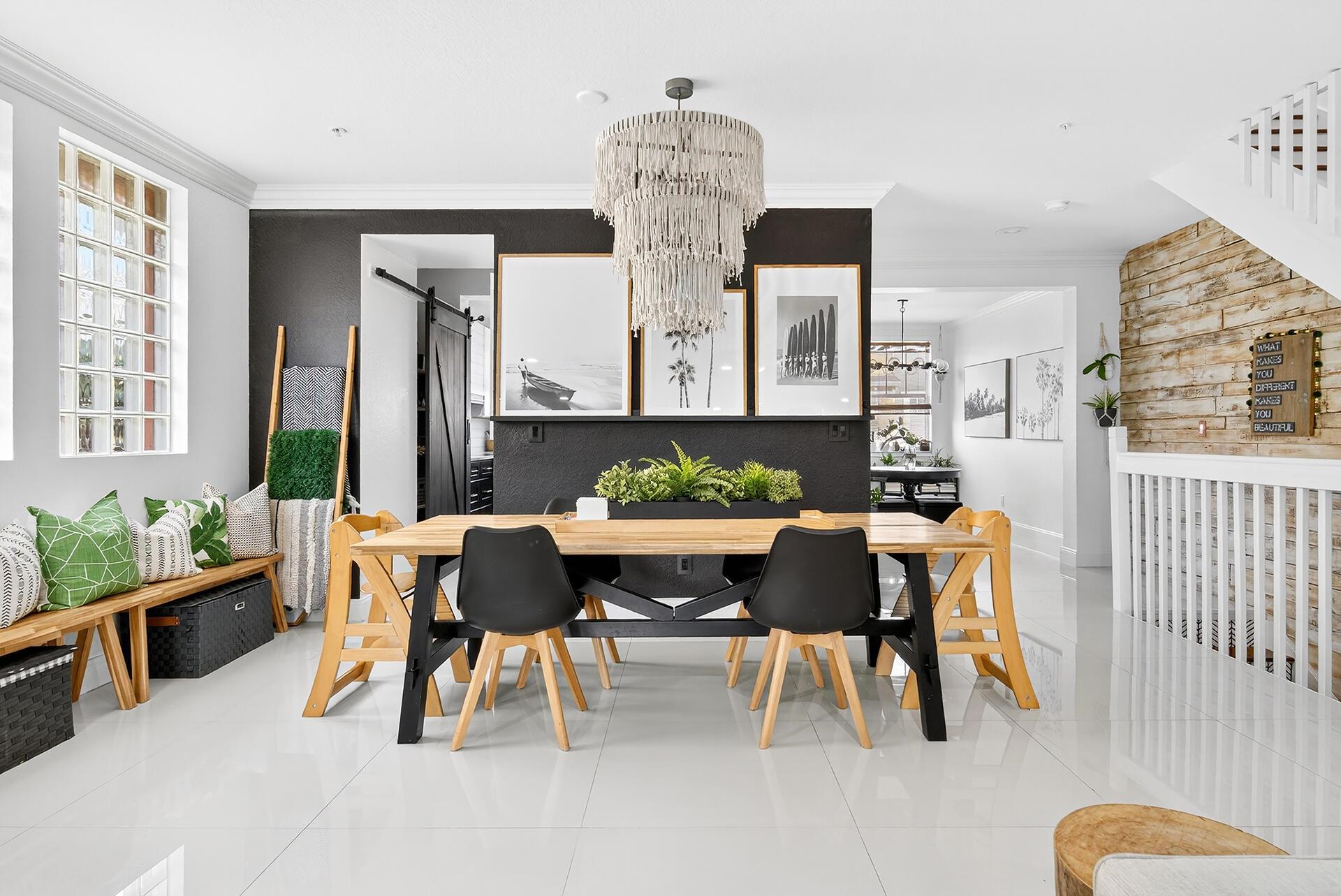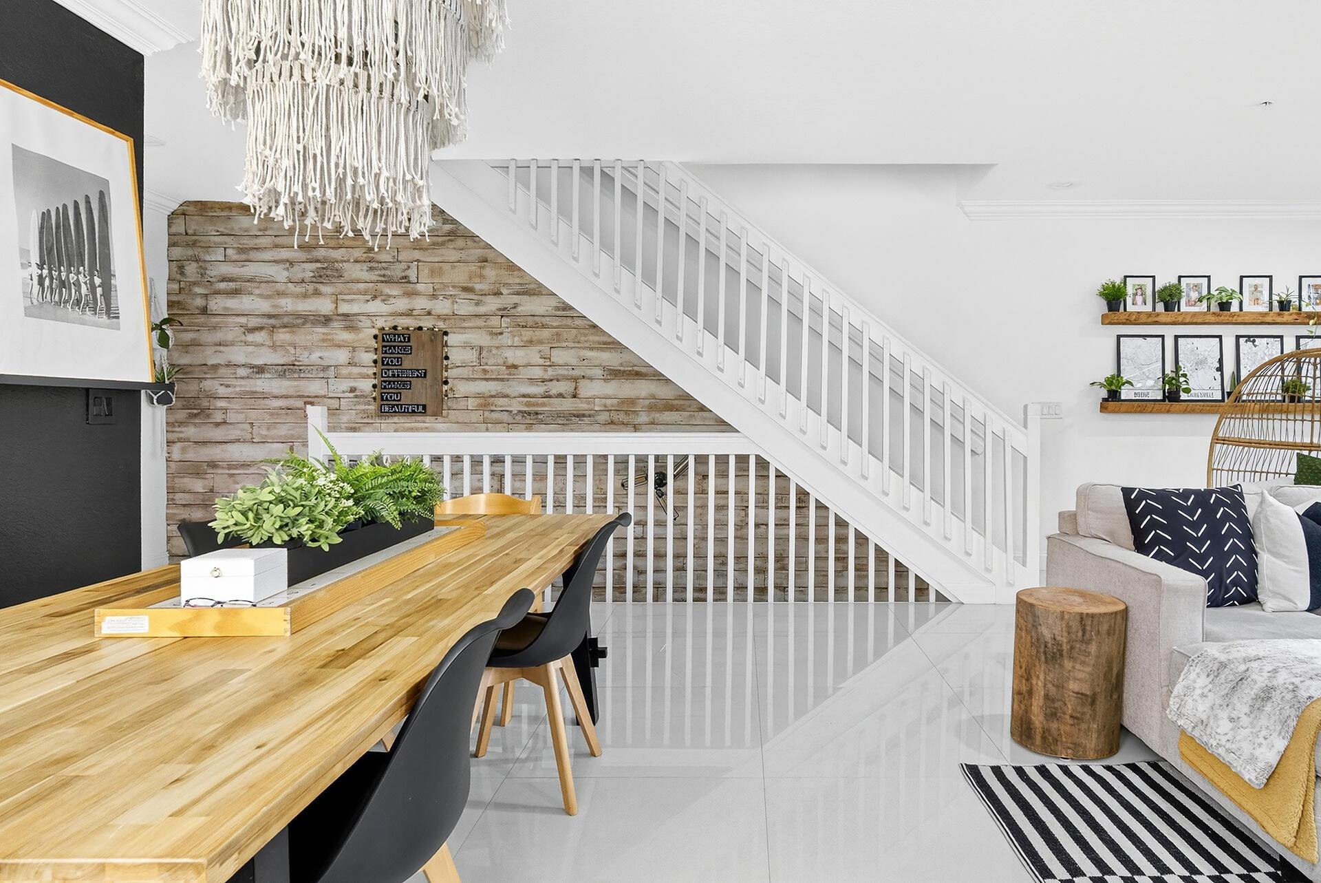 Stunning! Thoughtfully upgraded 4 bed 3.5 bath corner unit offers bright, open living with soaring 10' ceilings & tons of natural light. Features 32'' white tile & wood floors, crown molding, accent wall entry, modern fans, HUE lights, Nest thermo, etc. BRAND NEW kitchen is a showstopper, boasting granite waterfall edge with bar seating, slow-close cabinetry with 42'' uppers, open shelves, shiplap siding, black work station sink, & spacious pantry with a sliding barn door. Outfitted with top of the line Samsung Bespoke appliances, including a Family Hub touchscreen refrigerator & 3-drawer wine/beverage cooler, this kitchen is both stunning & smart. All bathrooms have been beautifully updated with new floors, counters, sinks, toilets, lighting & fixtures. New Bespoke W/D. 2 car garage.