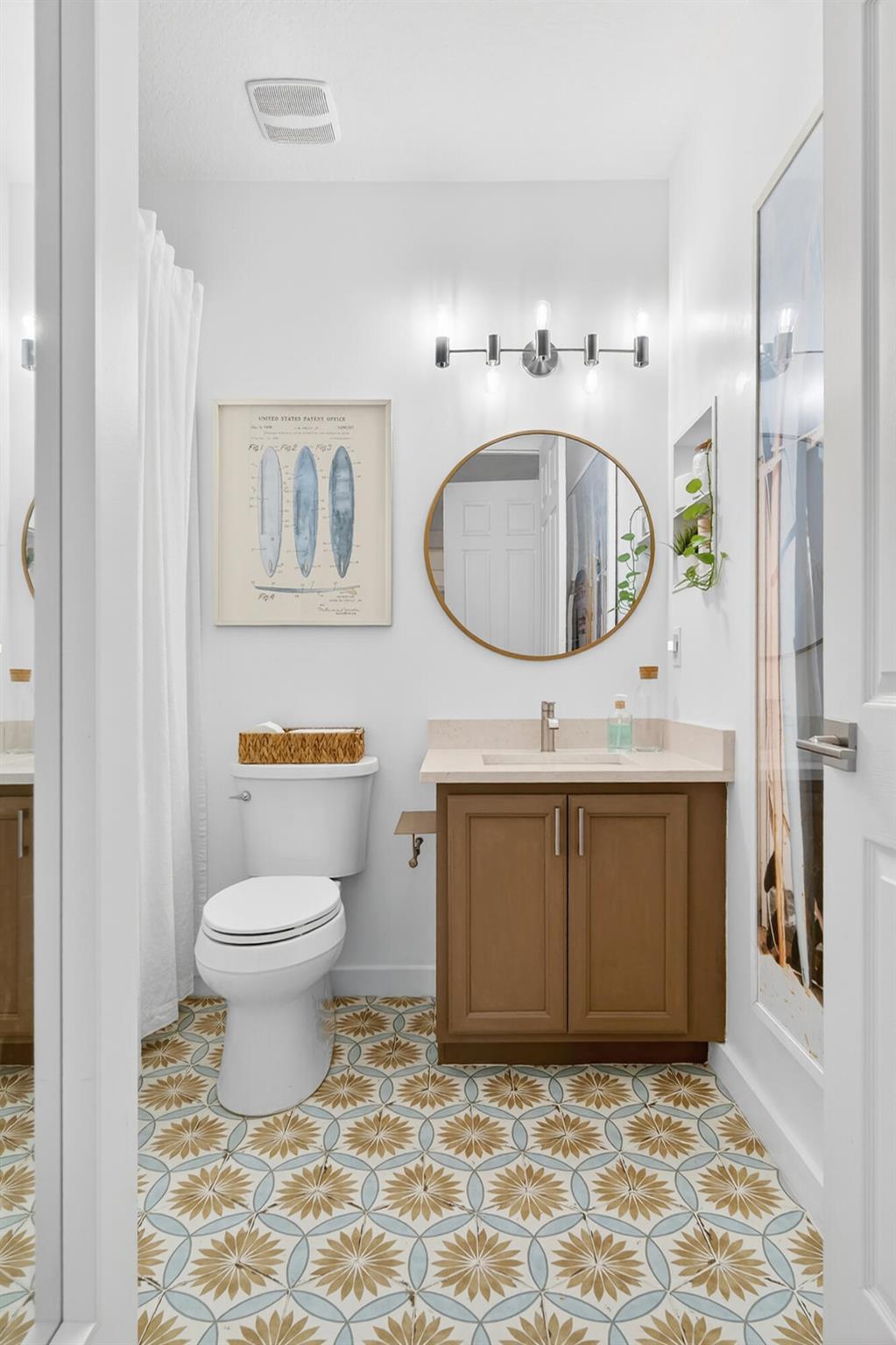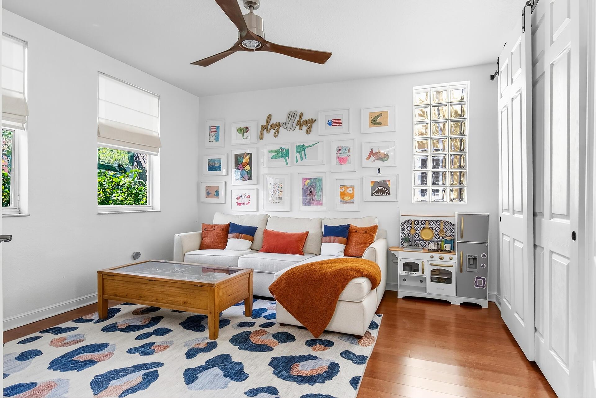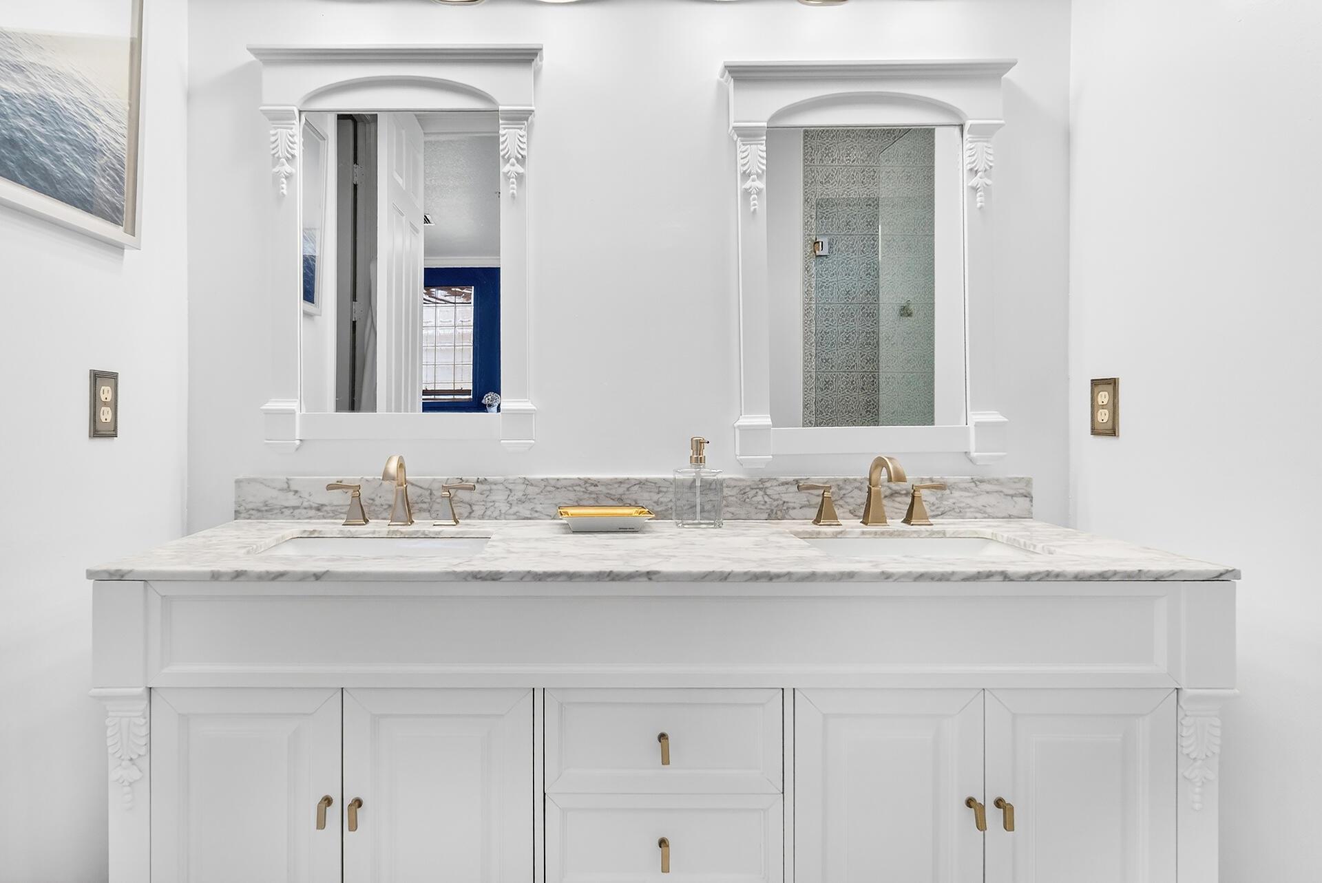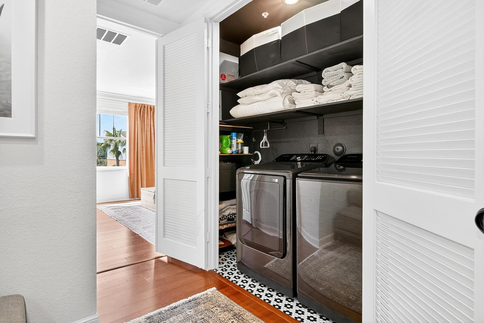 Stunning! Thoughtfully upgraded 4 bed 3.5 bath corner unit offers bright, open living with soaring 10' ceilings & tons of natural light. Features 32'' white tile & wood floors, crown molding, accent wall entry, modern fans, HUE lights, Nest thermo, etc. BRAND NEW kitchen is a showstopper, boasting granite waterfall edge with bar seating, slow-close cabinetry with 42'' uppers, open shelves, shiplap siding, black work station sink, & spacious pantry with a sliding barn door. Outfitted with top of the line Samsung Bespoke appliances, including a Family Hub touchscreen refrigerator & 3-drawer wine/beverage cooler, this kitchen is both stunning & smart. All bathrooms have been beautifully updated with new floors, counters, sinks, toilets, lighting & fixtures. New Bespoke W/D. 2 car garage.