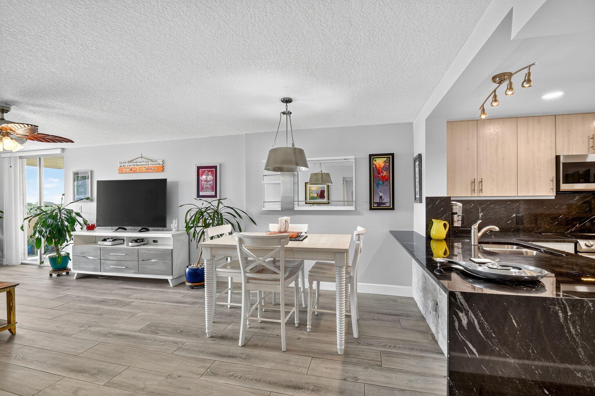 Updated 2/2 on barrier island! Tranquil Intracoastal and Sunset Views! Bonus: SEPARATELY DEEDED 98 SQ. FT. UTILITY ROOM with AC and Electric also available (less than 10 in the building). Use it for toy storage, office or workshop in addition the units regular storage closet. Renovated kitchen with granite counters, tile floors plus designer baths! Inviting living area with generous space for entertaining and relaxing with family and friends. The heart of the space is the corner balcony. The living room has both a south and west facing sliders for a corner view of the intracoastal and sunsets. It is deep and long, so the space is wonderful for all occasions. The property has a pool, sauna and community room on the ICW plus deeded beach access across the street.