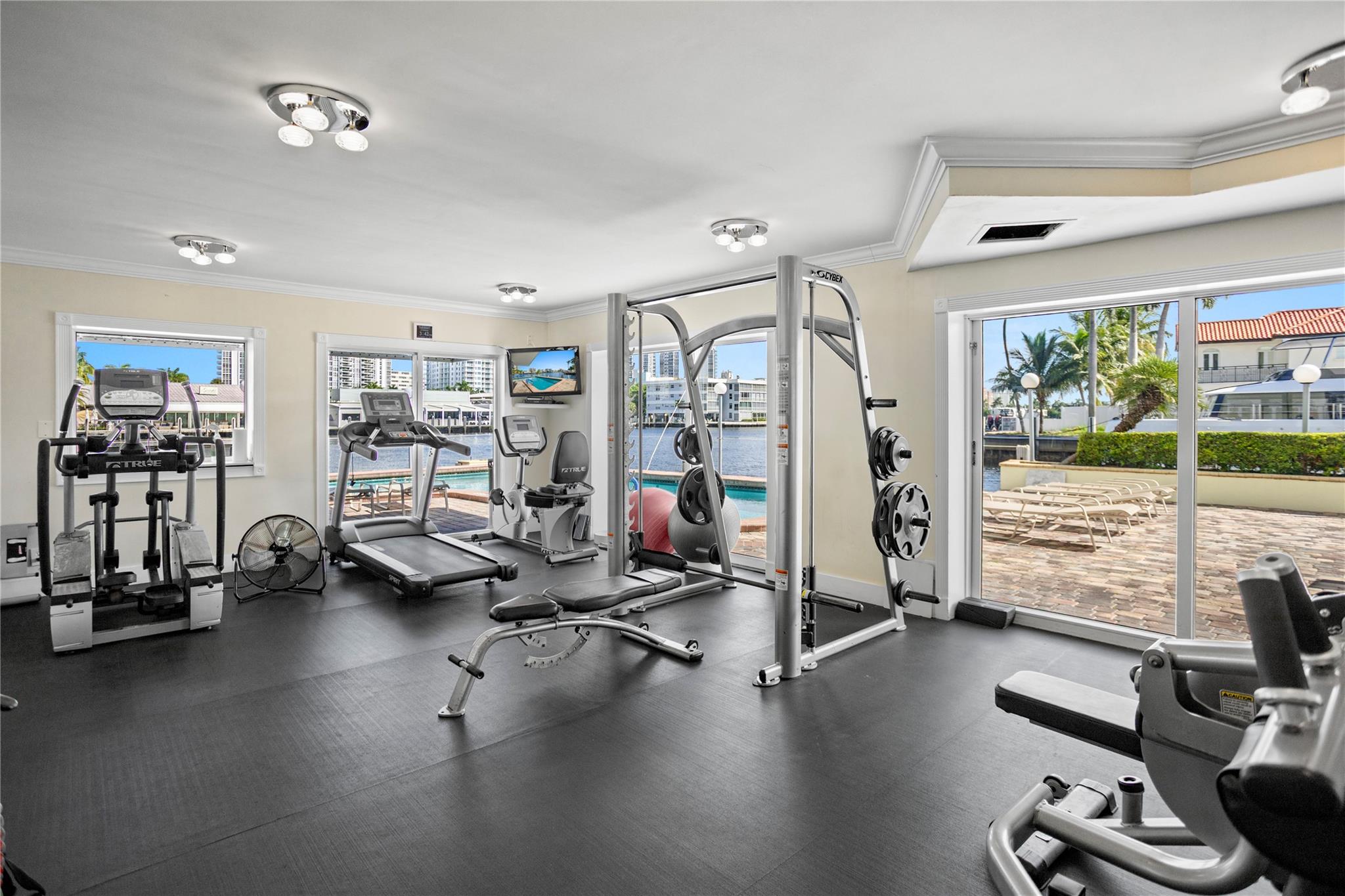 Beautifully remodeled 2 beds/2 baths condo for SALE, located in desirable Lauderdale Tower on the Intracoastal. Unit features updated tile, impact windows, plantation shutters, renovated bathrooms & kitchen. Kitchen includes wall oven, built-in microwave, glass cooktop & wine cooler. The oversized island opens to the living room & features bar seating for four. The expansive living area is over 270 sq. feet and features dimmable soffit lighting. Adjacent to the living area is a large 11x14 ft guest room & renovated bathroom across the hall. The oversize main suite measures in at 11x17 ft. and has dual sliding glass doors that lead to the master bathroom and walk-in dressing area. Building 40yr Cert Completed. It features waterfront pool, exercise room, community dock and BBQ.