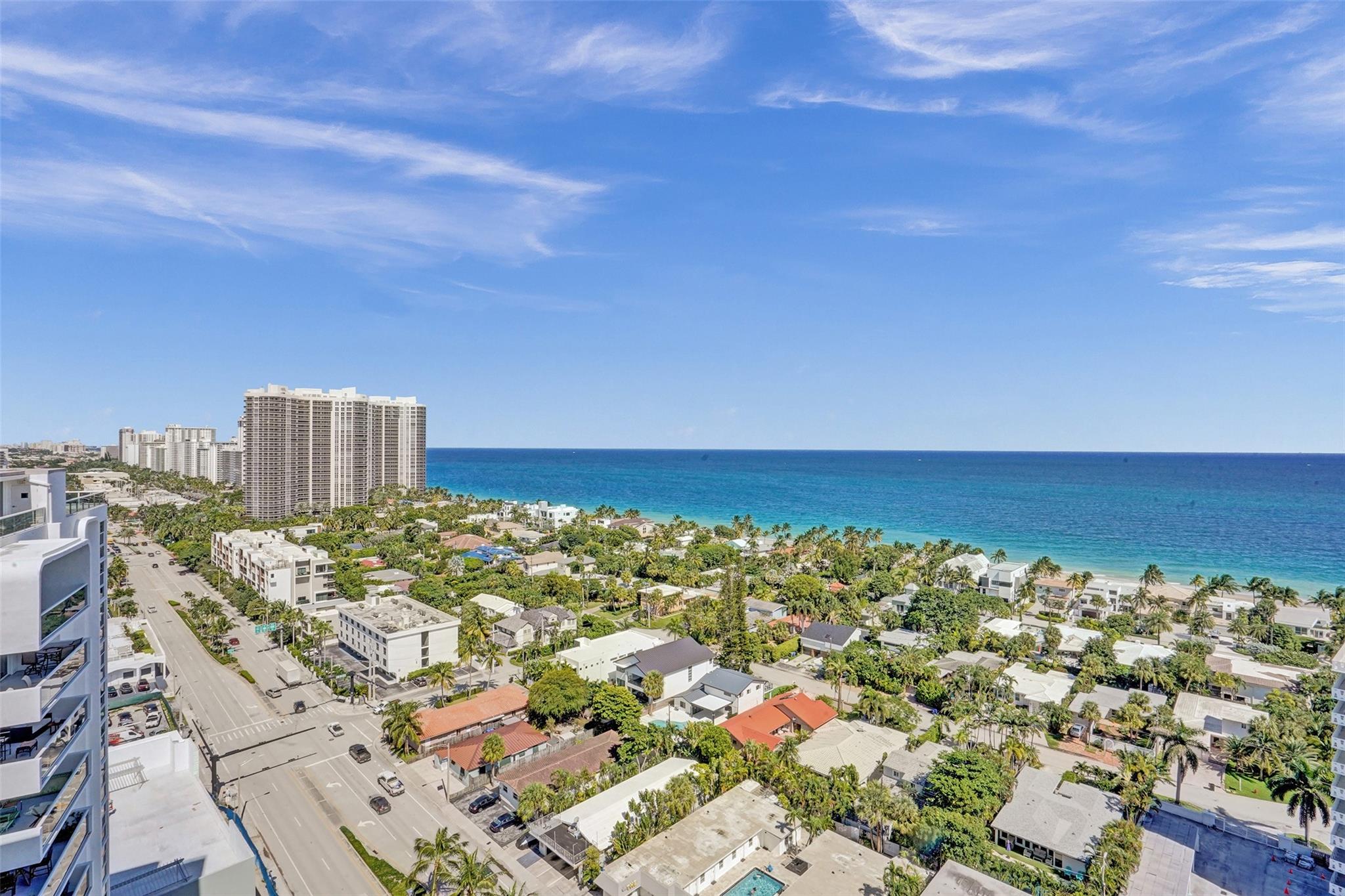 The lowest price unit in the entire building! Welcome to your 2-bedroom, 2-bathroom beachside retreat. Inside, you'll find a split floor plan with beautiful tile floors throughout, generously sized bedrooms, updated bathrooms, hurricane impact sliding doors and windows, and an in-unit washer/dryer. Enjoy the tranquility of your balcony while fully embracing the South Florida lifestyle. The building features a rooftop pool with unobstructed panoramic views of the ocean, intracoastal, and downtown Fort Lauderdale skyline. Additional amenities include fitness center, sauna, community room, 24-hour security, covered parking, storage room, and plenty of guest parking. Stroll to the beach, restaurants, bars, the new publix & shops.