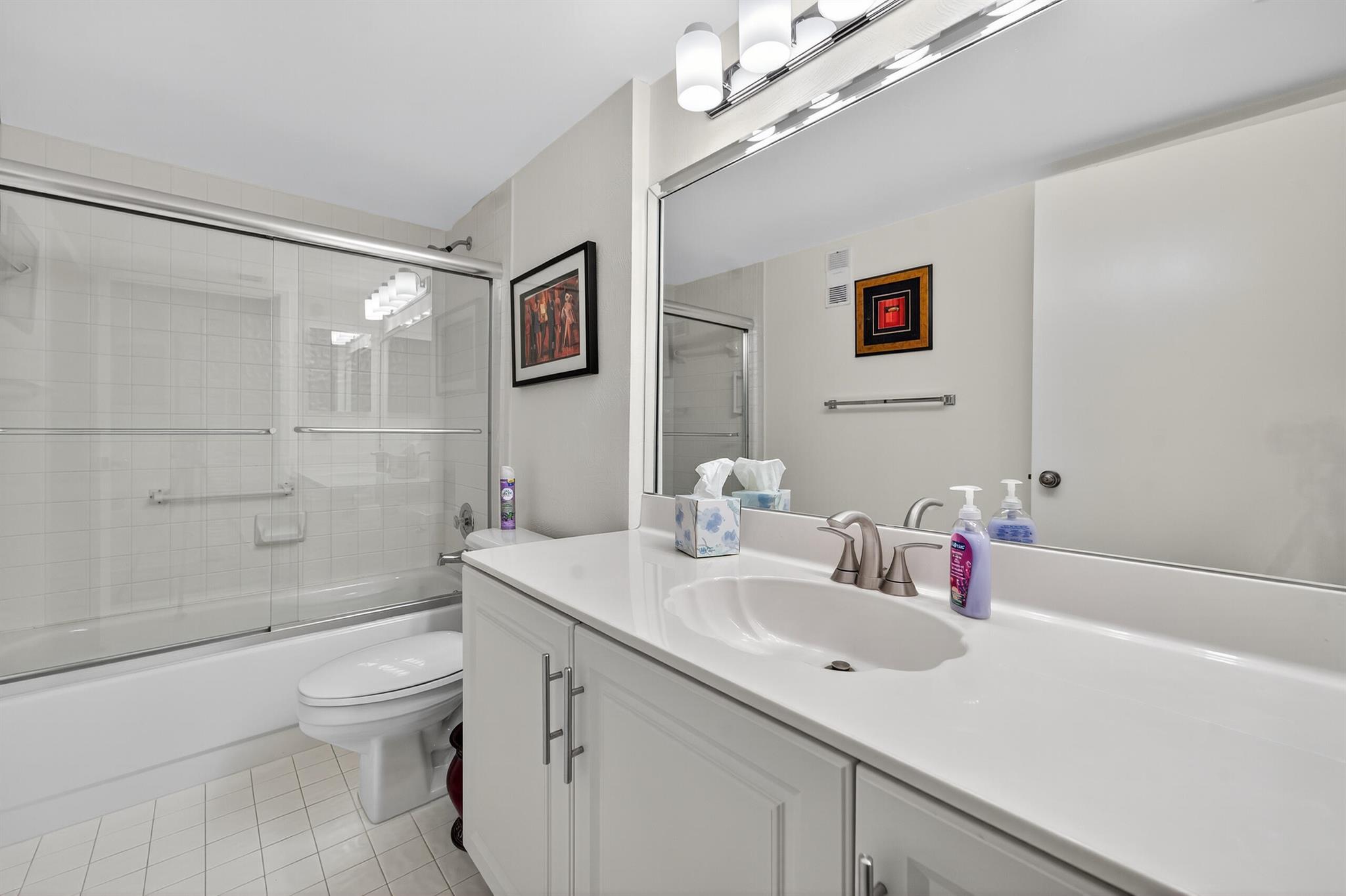 Immaculate, light, bright 2/2 penthouse condo with den and Florida room with panoramic lake view. Conveniently located right across the street from the re-designed clubhouse. Stunning, high-grade wood laminate floors cover all living areas except baths. Updated kitchen cabinets. Stainless steel appliances. A/C is 5 years old. Sold AS IS including elegant and expensive furniture on premises. This ready-to-go unit even has its own covered parking space. Perfect for snowbirds looking for a fast, effortless move-in and start to the season. Huntington Pointe is a an active adult community that features a 53,000 square foot clubhouse. The 600 seat theater offers live entertainment and movies year 'round. You also find a fitness center, card rooms, billiard room, aerobics room, bocce courts,