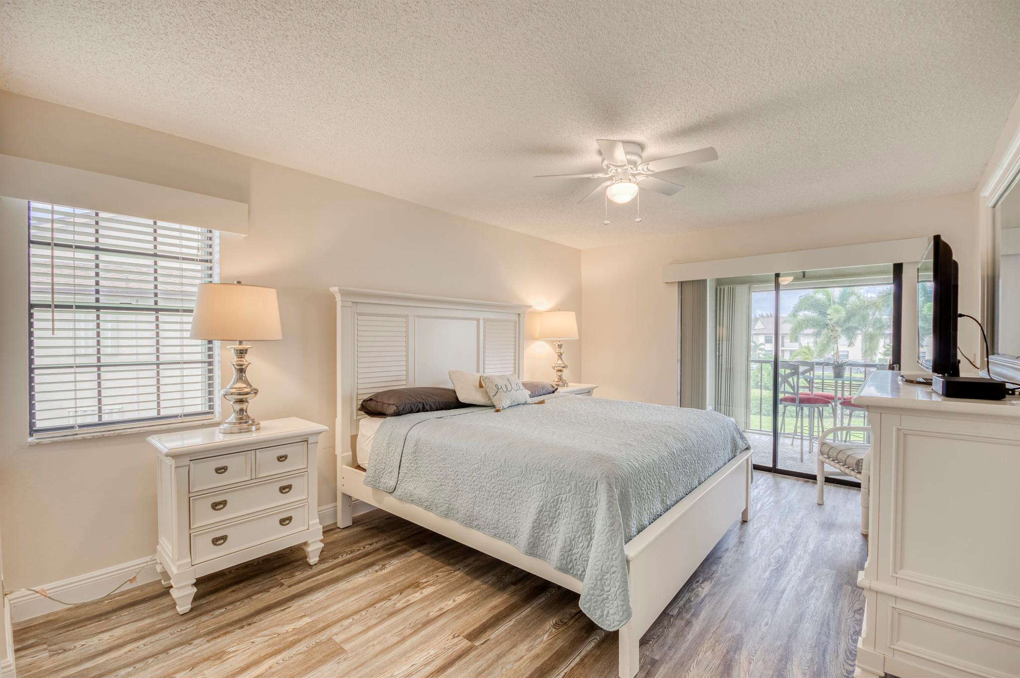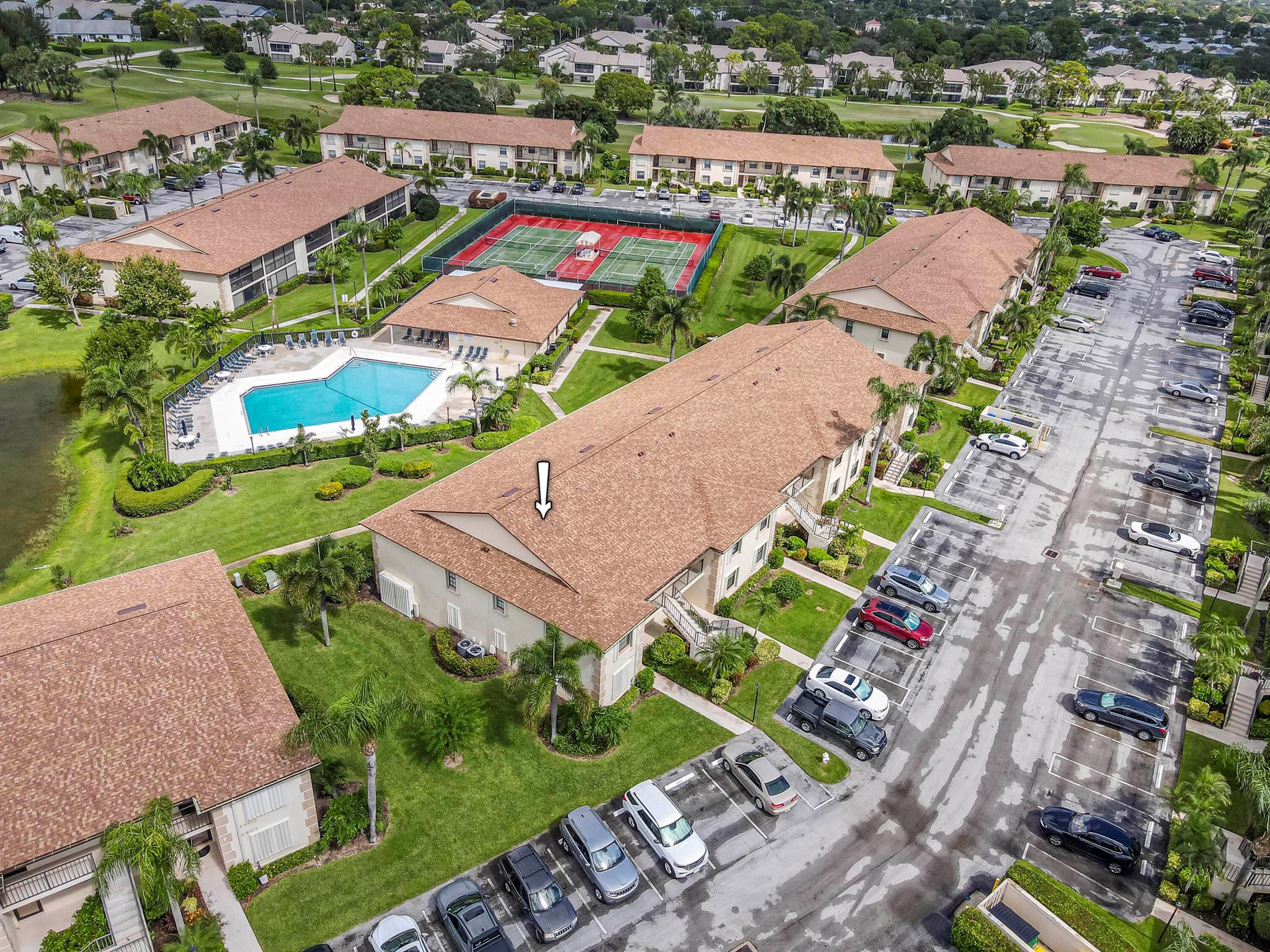 BEAUTIFULLY RENOVATED, TURNKEY, and spacious second-floor corner 2 bedroom, 2 bath condo w/vaulted ceilings. Step inside to a 2021 kitchen w/custom cabinetry, quartz countertops, tile backsplash, and modern appliances. The living room, bright and airy, opens to an oversized enclosed lanai w/views of the pool, lake, and fountain--perfect for morning coffee or evening gatherings. Updates include luxury vinyl plank flooring, refreshed vanities, updated breakers, 2024 roof, 2021 water heater, and 2017 AC. Community amenities feature tennis, pickleball, pool w/BBQ area, and clubhouse w/full kitchen. Stroll to the Golf Club of Jupiter for golf, driving range, and dining. Why vacation when you can call Jupiter home? Well-managed HOA lowering fees in 2026. A MUST SEE!