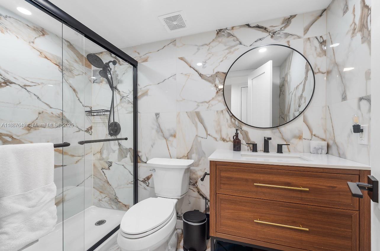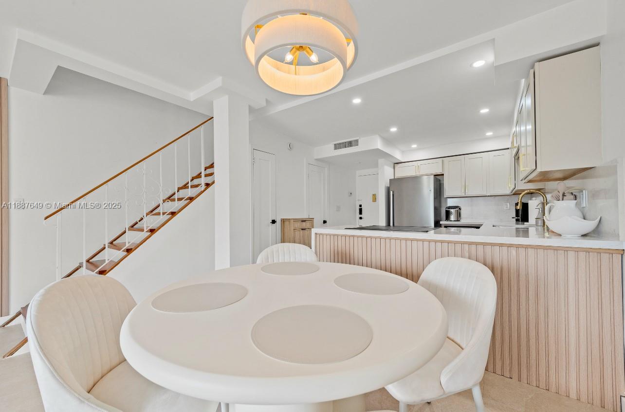 Elegant 2-Story Penthouse Condo just 1 Block from the Beach! Fully renovated with city-approved permits, this 2BR/1.5BA, two story condo residence blends modern design with elegant finishes. This open-concept living features brand-new electrical & PVC plumbing, quartz countertops, KraftMaid cabinetry, reverse osmosis water system, updated baths, new appliances, and new ceramic floors. Fresh paint, no popcorn ceilings, hard-wired smoke detectors & optimized vents. Balcony showcases partial ocean & skyline views plus the Acqualina Resort. Ample in-unit & building storage, assigned covered parking, in a well-maintained building, steps to dining, cafes, markets, top-rated schools, with the Aventura Mall & Bal Harbour Shops just minutes away - all only steps to the sand! Lease right away!