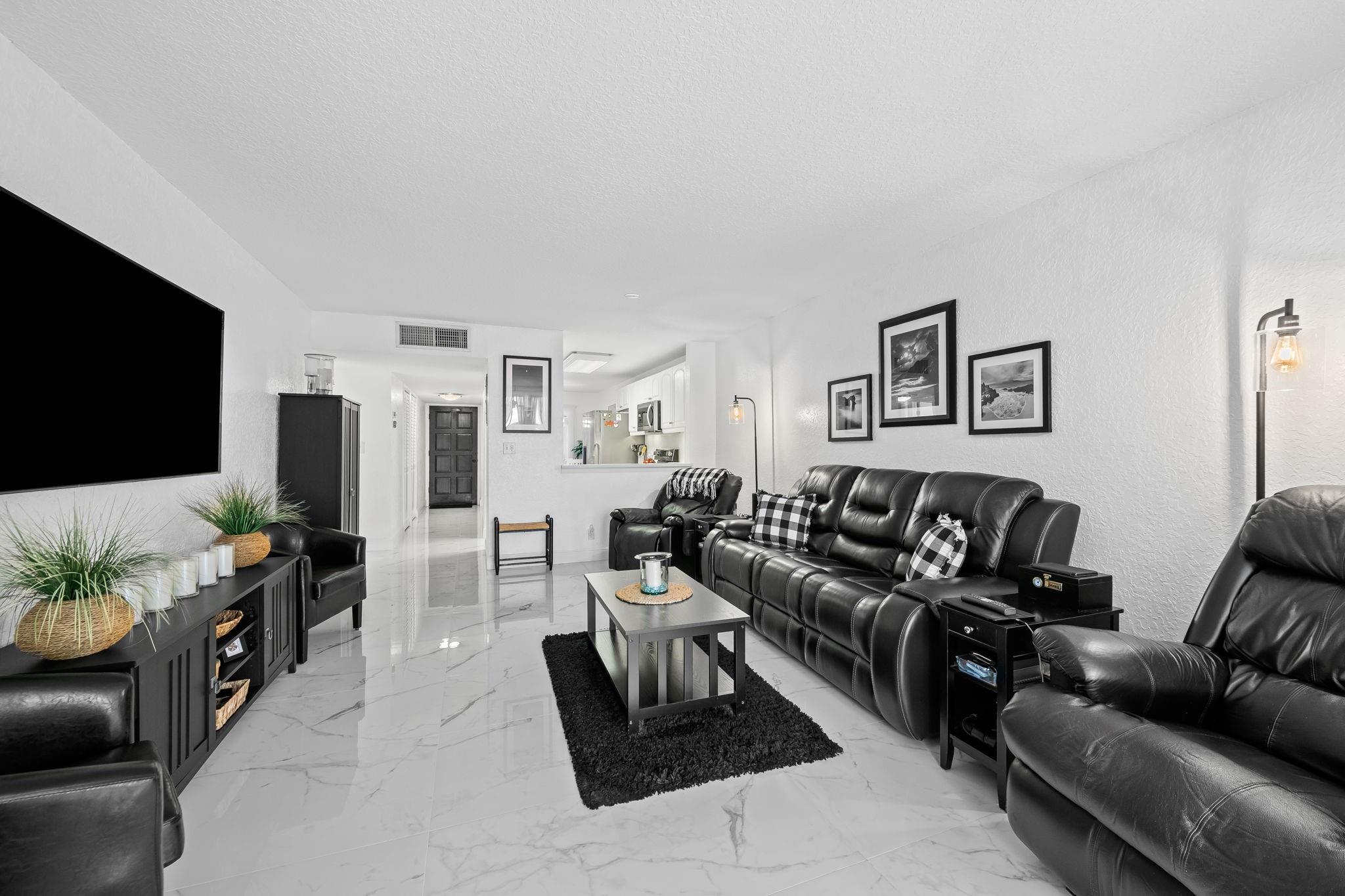 Spotless and move in condition waterfront living in highly desirable "N" building at Island Club! Renovated third floor unit with Northern exposure. Enjoy your private screened balcony overlooking the water & boats! High-end 24x48 polished porcelain tile throughout the entire apt. Light and bright ! Large eat-in kitchen with white kitchen cabinets, quartz countertops, stainless steel appliances and deep sink. Approx. 1 year old central AC. Remodeled/updated bathrooms. Upgraded electrical panel. Walk in closet in primary bedroom. 50 year building inspection completed and all special assessments have been paid in full. Pool renovation completion date is October 2025. 24 hour security/gated community, basic cable,fitness center,putting green all included with the reasonable maintenance fee.