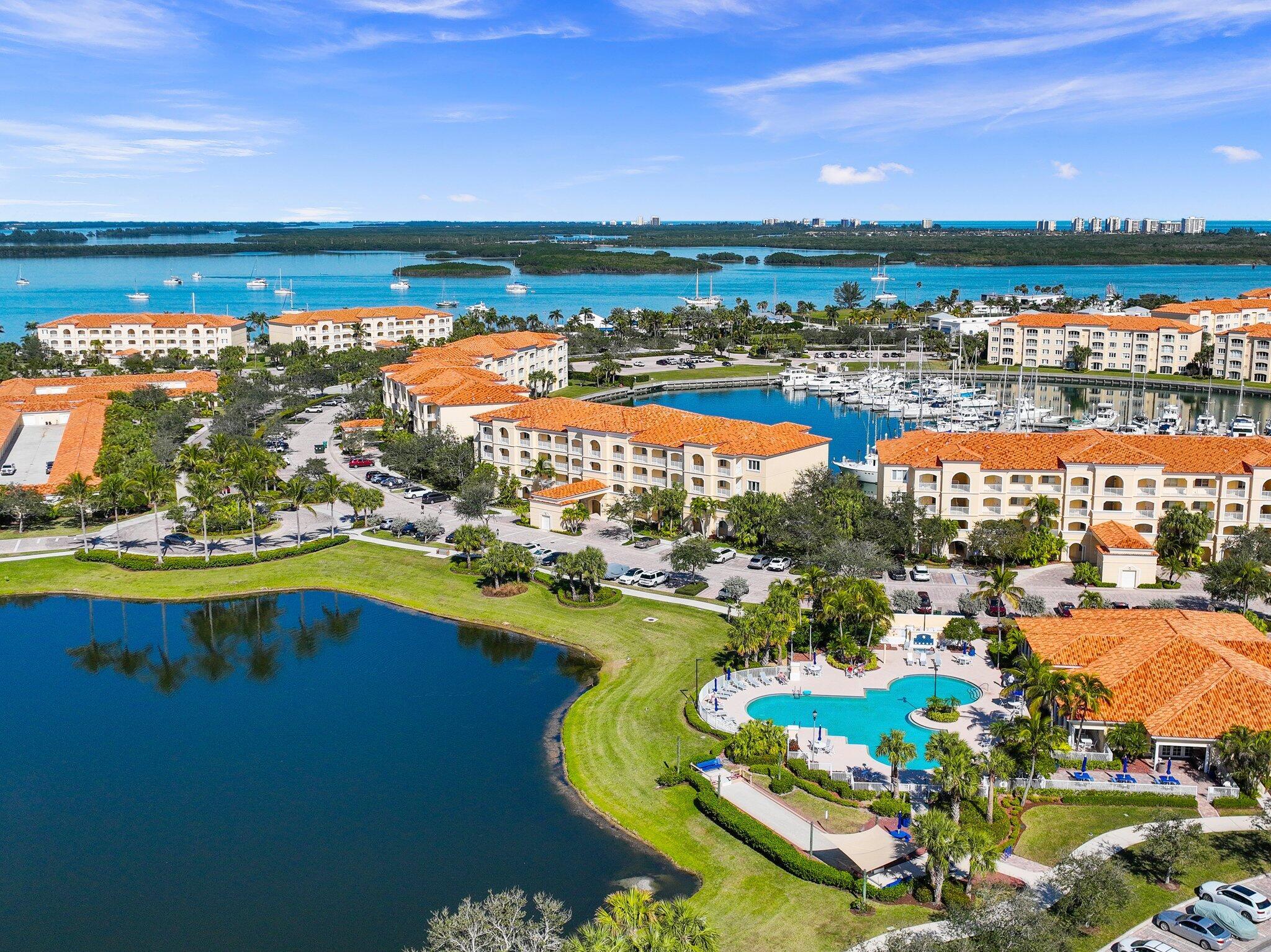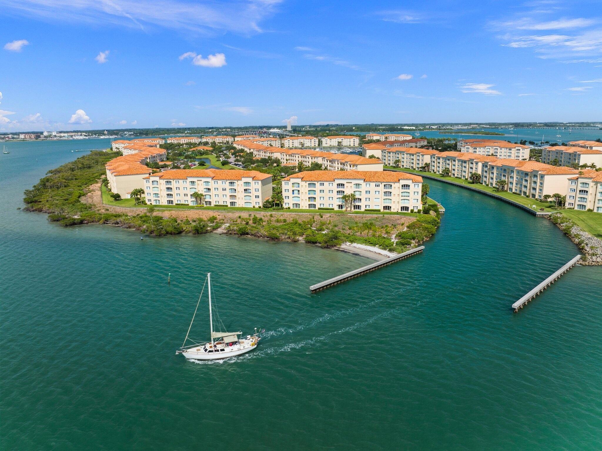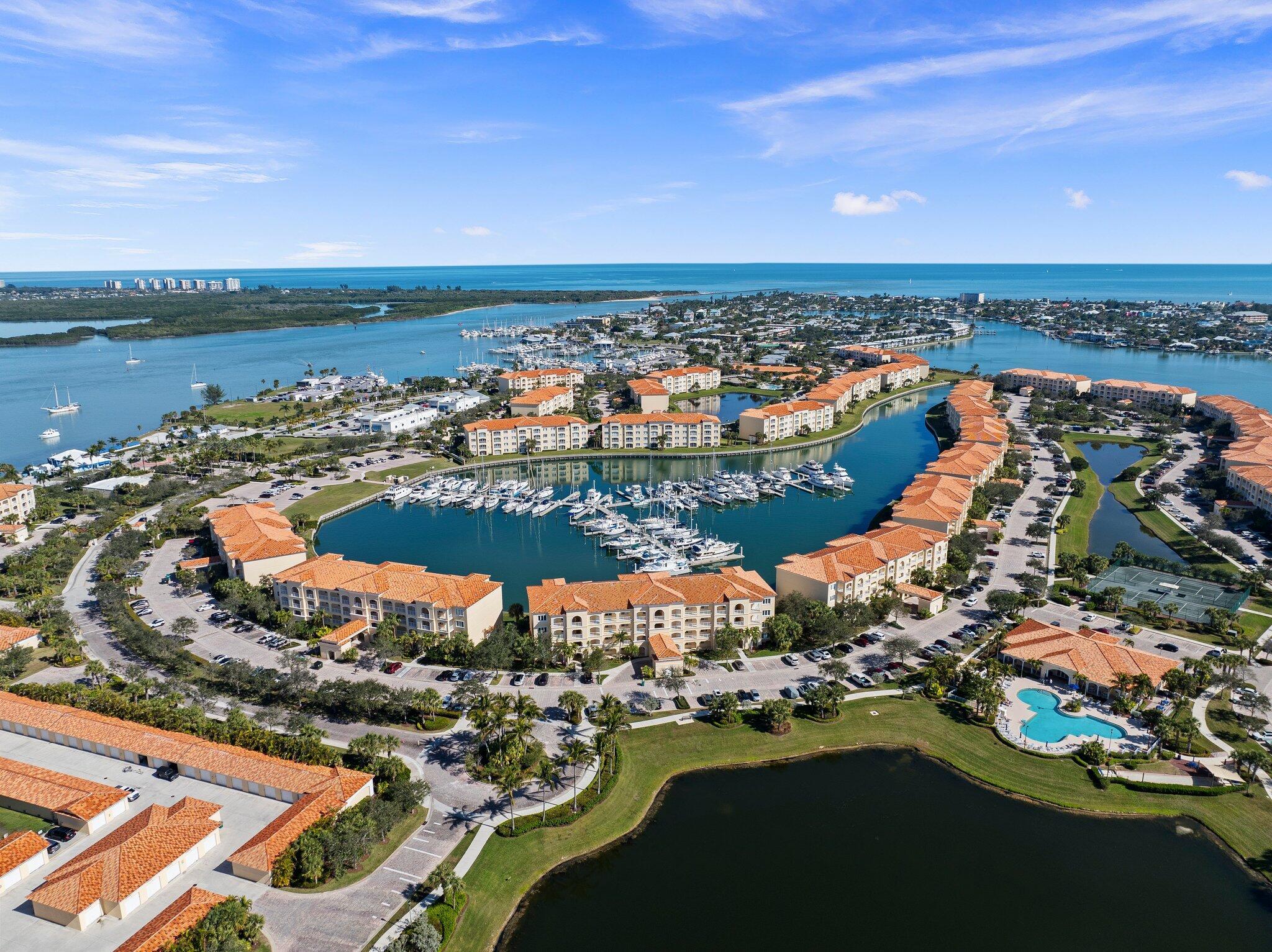 New stainless kitchen very soon! 2005-built. An hour north of Palm Beach! Fabulous penthouse marina-view at Hutchinson Island's renowned Harbour Isle on much-faved Hutchinson Island. 1989 sq ft superbly designed by DiVosta for spaciousness with 10' ceilings almost throughout. Bldgs 11-19 sunrooms enjoy great indirect light with almost no direct sunlight glaring in! NO WEIGHT LIMIT FOR DOGS! Free internet & cable, luxurious tropic-feel pool, hot tub, tennis courts, bocce ball,,Social committee with lots of fun activities, clubhouse, renovated gym, sidewalks around lovely large ponds which feature gorgeous birds, 24-hr manned security. The renowned Fort Pierce Inlet beach is walking distance. Seaway Dr is home to favorite bars & restaurants, with lots of music! 1.5 mi to beach.