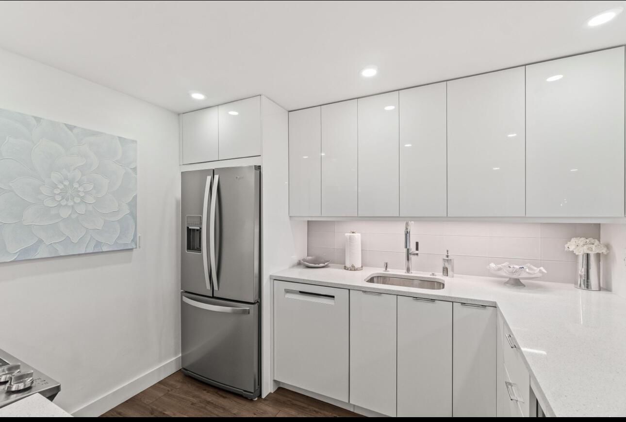 ***Modern Corner Unit with Smart Upgrades & Pool Views!***This private 2/2 corner unit offers direct stair access to your 1st row parking spot and a stunning 180 balcony overlooking the pool. Inside you'll find luxury finishes & smart-home features throughout. Large format porcelain tile on balcony, new ESW impact windows and sliding door, luxury laminate flooring, skimmed ceilings, recessed led lighting, Ring doorbell, Lutron Caseta, smart switches and dimmers, Honeywell Wi-Fi thermostat, LED undercabinet lighting with plugs, Quartz countertops in kitchen & master bathroom, Moen & Pfister plumbing fixtures, high gloss lacquer cabinets, new Bosch dishwasher, GE profile new appliances, Porcelain tile showers and baths, Screwless wall plates, Elfa closet systems,