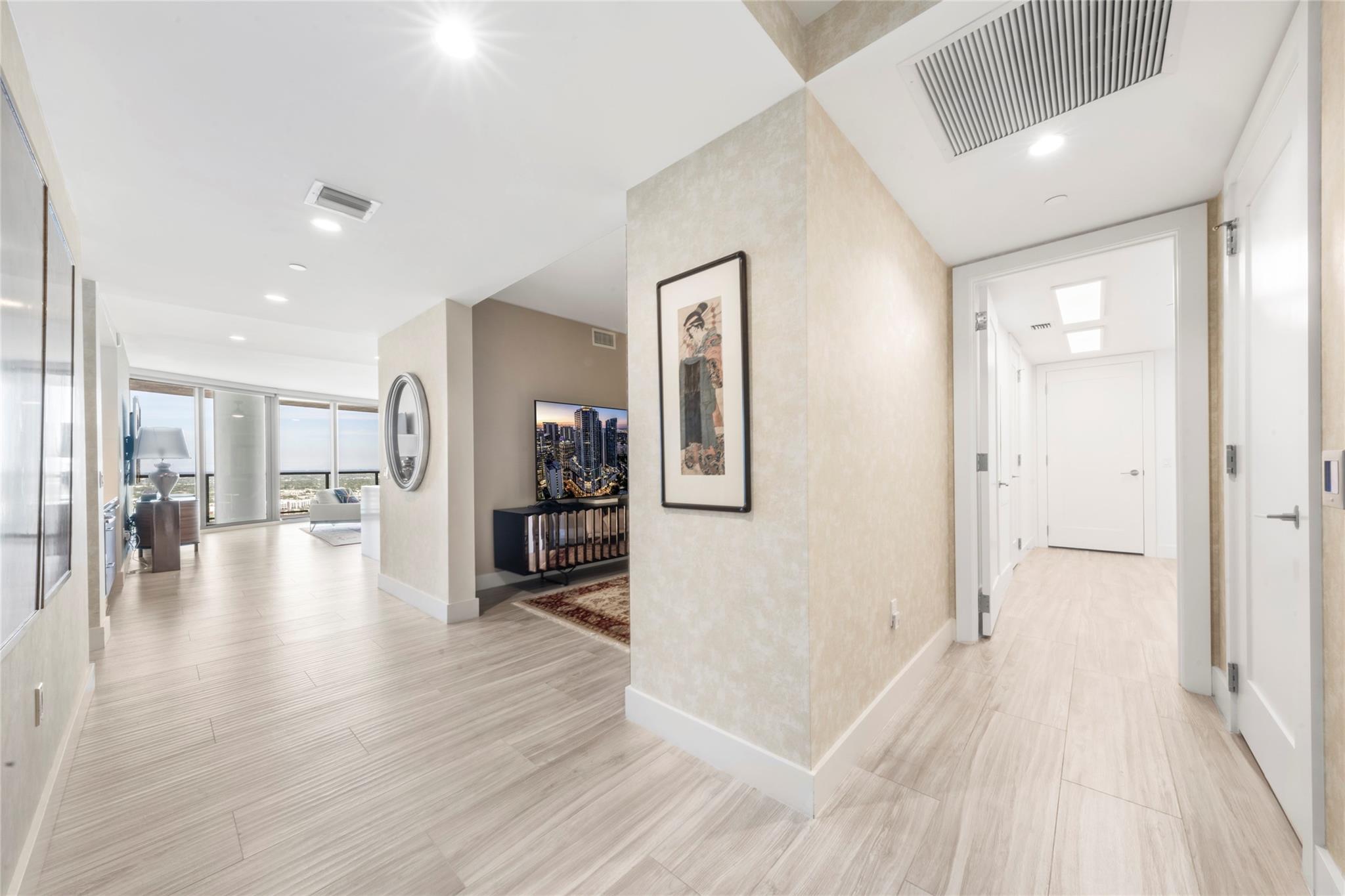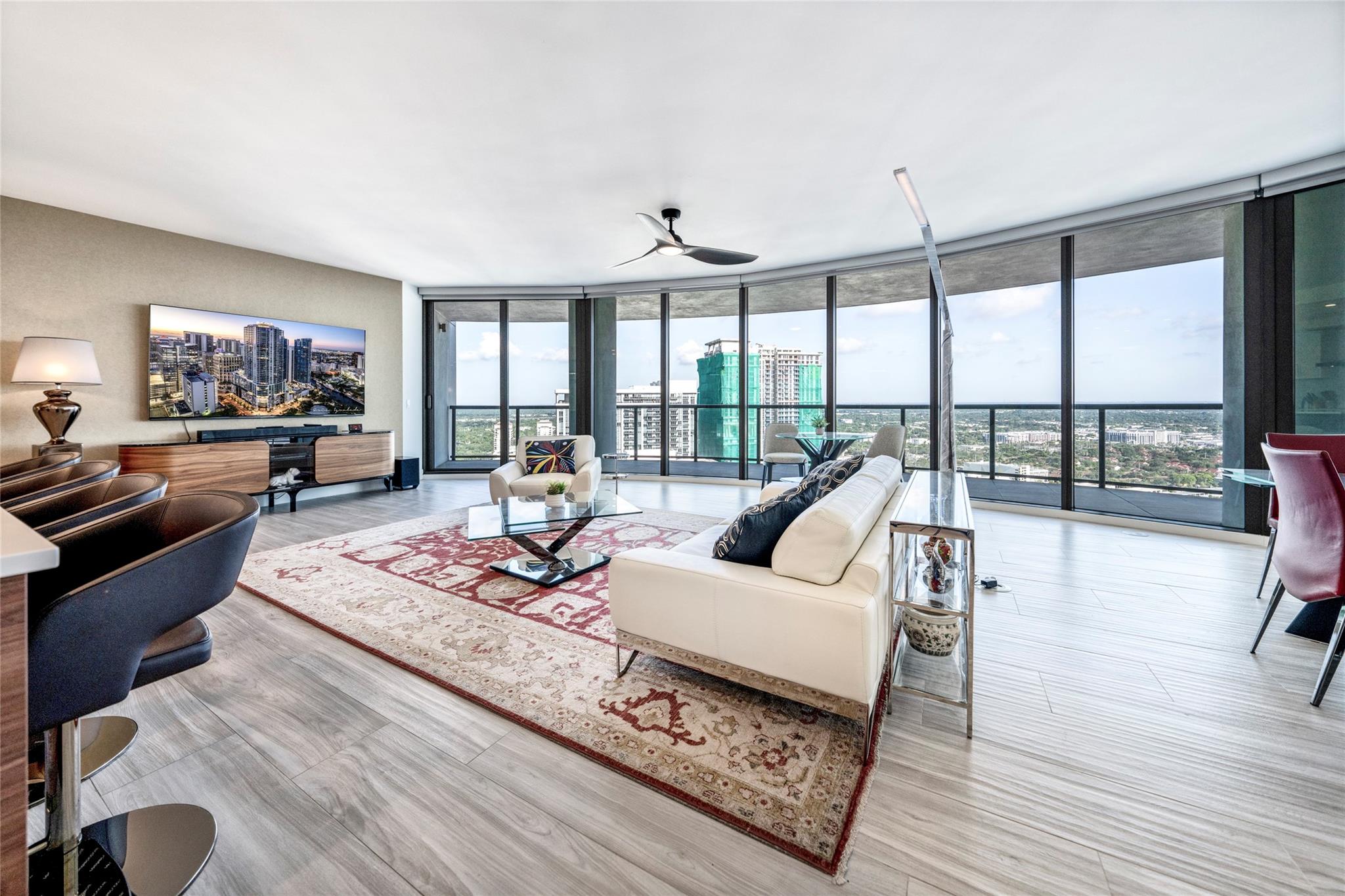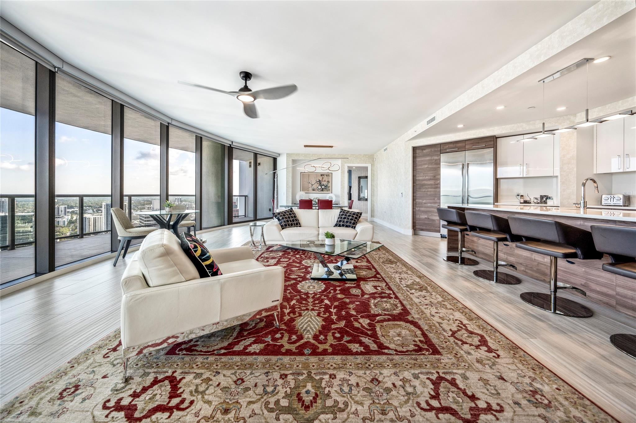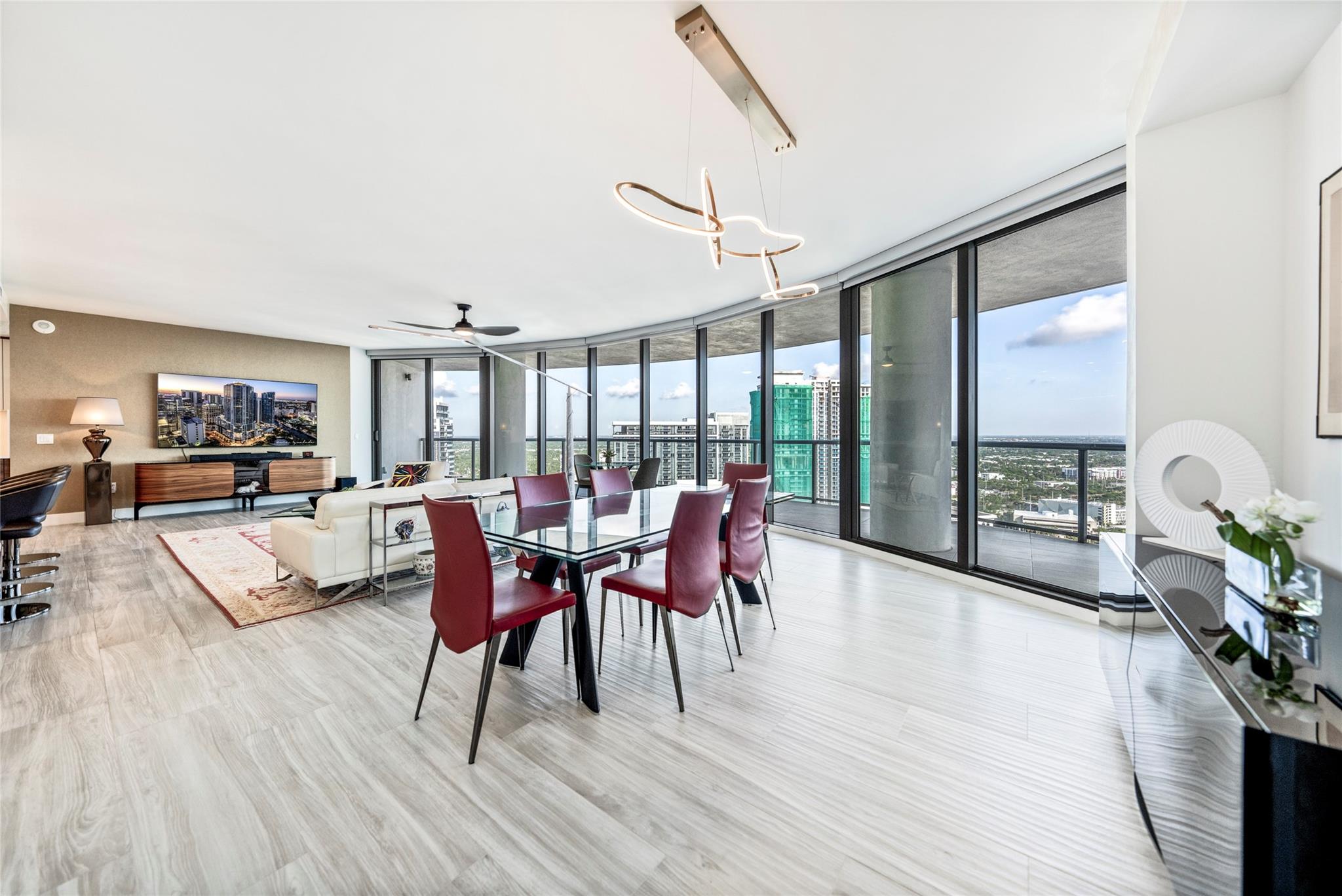 Over 3,000 sq ft of Indoor + Outdoor Living with Panoramic Views of the river, skyline, Huizenga Park & the ocean. This 3-bedroom + den has the most open floor plan downtown, upgraded tile flooring & a rare combination of white & espresso cabinetry that offers flexibility for any design vision. Additional upgrades include motorized shades, Nolte cabinetry, quartz countertops, and more. Currently furnished with high-end pieces from Roche Bobois & Bloomingdale’s (furnishings available for purchase). Includes 2 side-by-side garage parking spaces by the elevator (one oversized) + storage unit. Located above Eddie V’s & Harborwood, just moments from Las Olas Boulevard’s dining, shopping, entertainment & more. This condo has incredible space, finishes, parking & views!