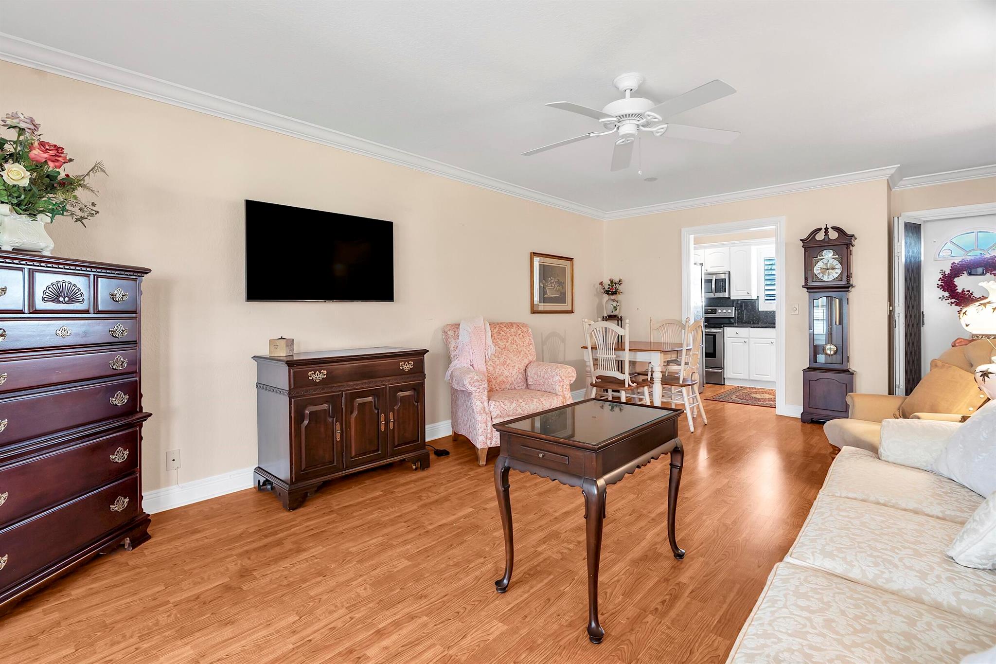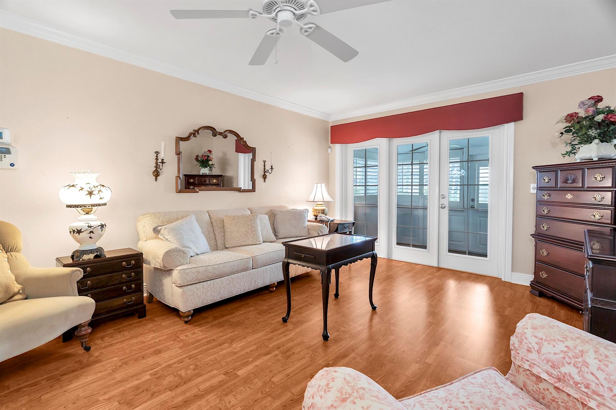 Welcome to this beautifully updated villa, featuring a spacious one-bedroom layout and one and a half baths. This home boasts crown molding, a brand-new air conditioning system, a newer roof, and an updated electrical panel for peace of mind. The kitchen is a chef's dream with granite countertops and stainless steel appliances, perfect for cooking and entertaining. Enjoy the added security and efficiency of impact windows and doors. This villa combines comfort and modern amenities, making it the ideal retreat.
