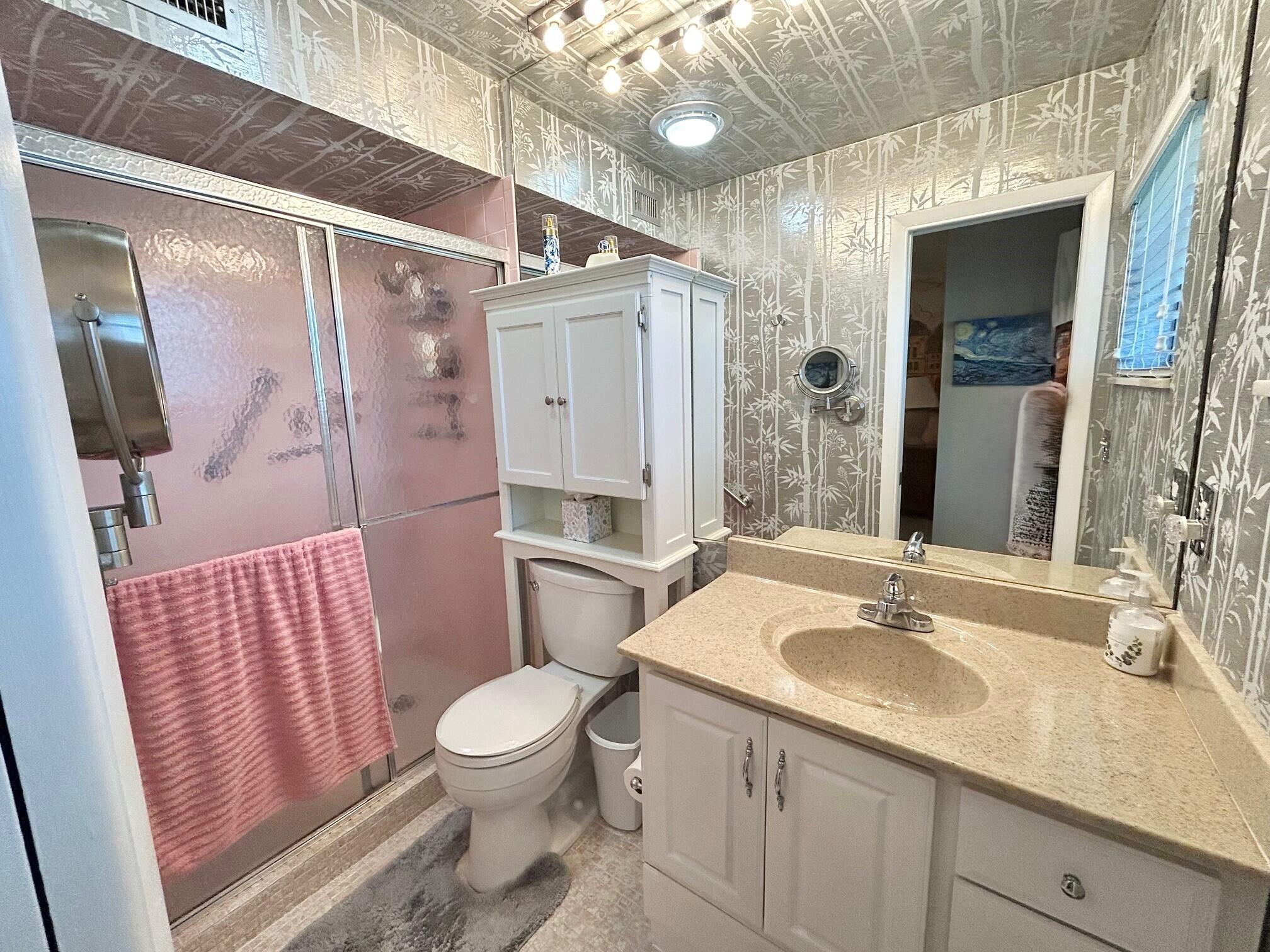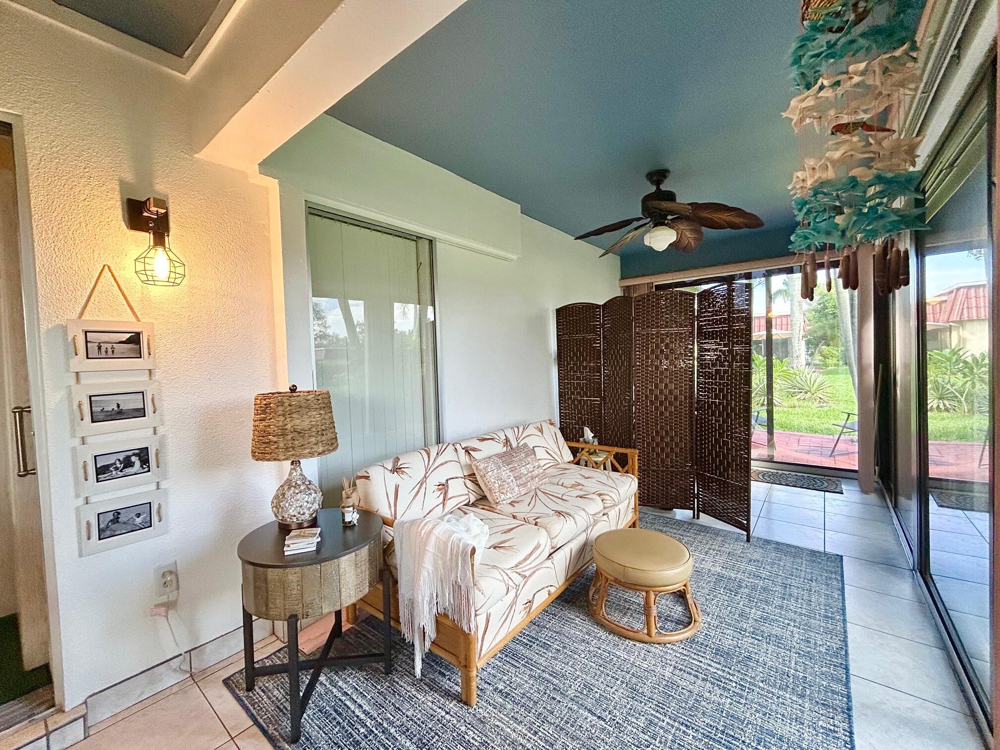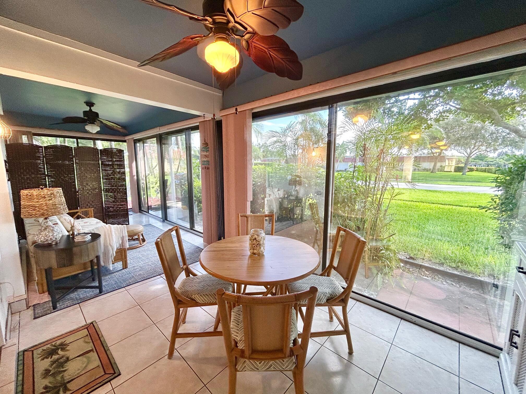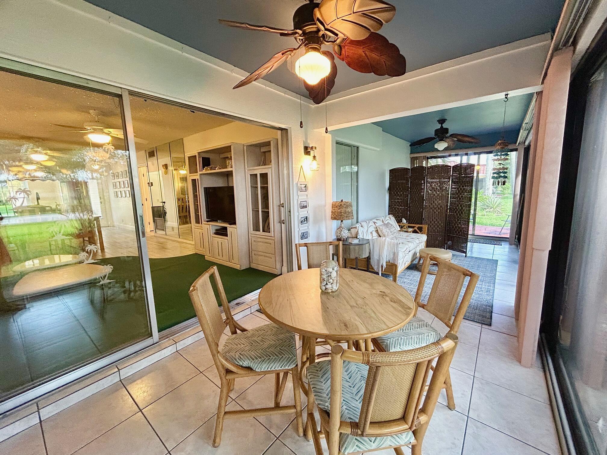 LOCATION LOCATION ... RIGHT ACROSS FROM THE CLUBHOUSE AND POOL. Come see one of the LARGEST 2 bedroom 2 bath Villas available in this PET FRIENDLY community. There are only 4 properties in all of Covered Bridge with this 27' long porch. This stunning unit offers many extras that you will not find in other properties. The kitchen wall has been removed creating a bright and spacious feel. All interior doors have been replaced w/ modern single panel doors. The master bdrm features a walk in closet & a custom built wall closet for more storage. The property is storm protected with HURRICANE/IMPACT WINDOWS & accordion shutters. There's a triple sliding glass door that leads to the large porch area. Custom built wall on porch covers hidden storage closet with a pull out cabinet. Patio for BBQ's