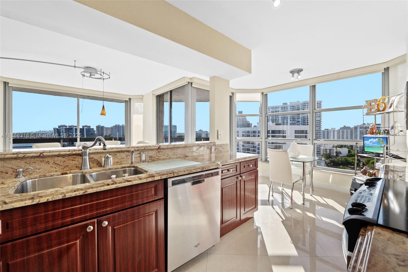 Experience breathtaking, unobstructed views of the Intracoastal Waterway and Sunny Isles Beach from this spacious 2-bedroom, 2-bath residence at Mystic Pointe Tower 200. This highly sought-after line features a wraparound balcony accessible from the living room and kitchen, offering endless natural light and stunning panoramas. The master suite includes a generous walk-in closet and electrical blinds, also found in the living room. Kitchen cabinetry is in excellent condition, ready to move in or upgrade to your taste. Enjoy resort-style living with valet service, assigned covered parking, pool, fitness center, tennis courts, and 24-hour security. An unbeatable lifestyle in Aventura, minutes from beaches, Aventura Mall, and fine dining. Easy to show.