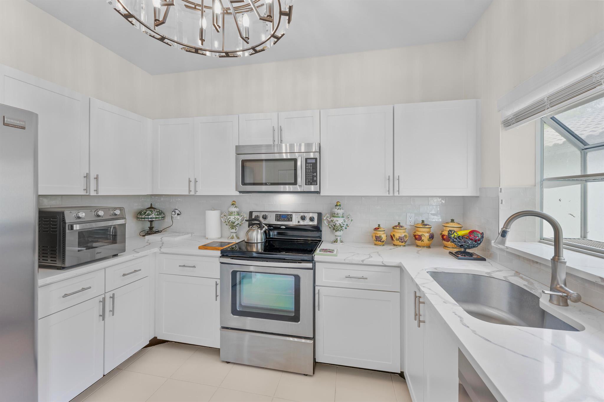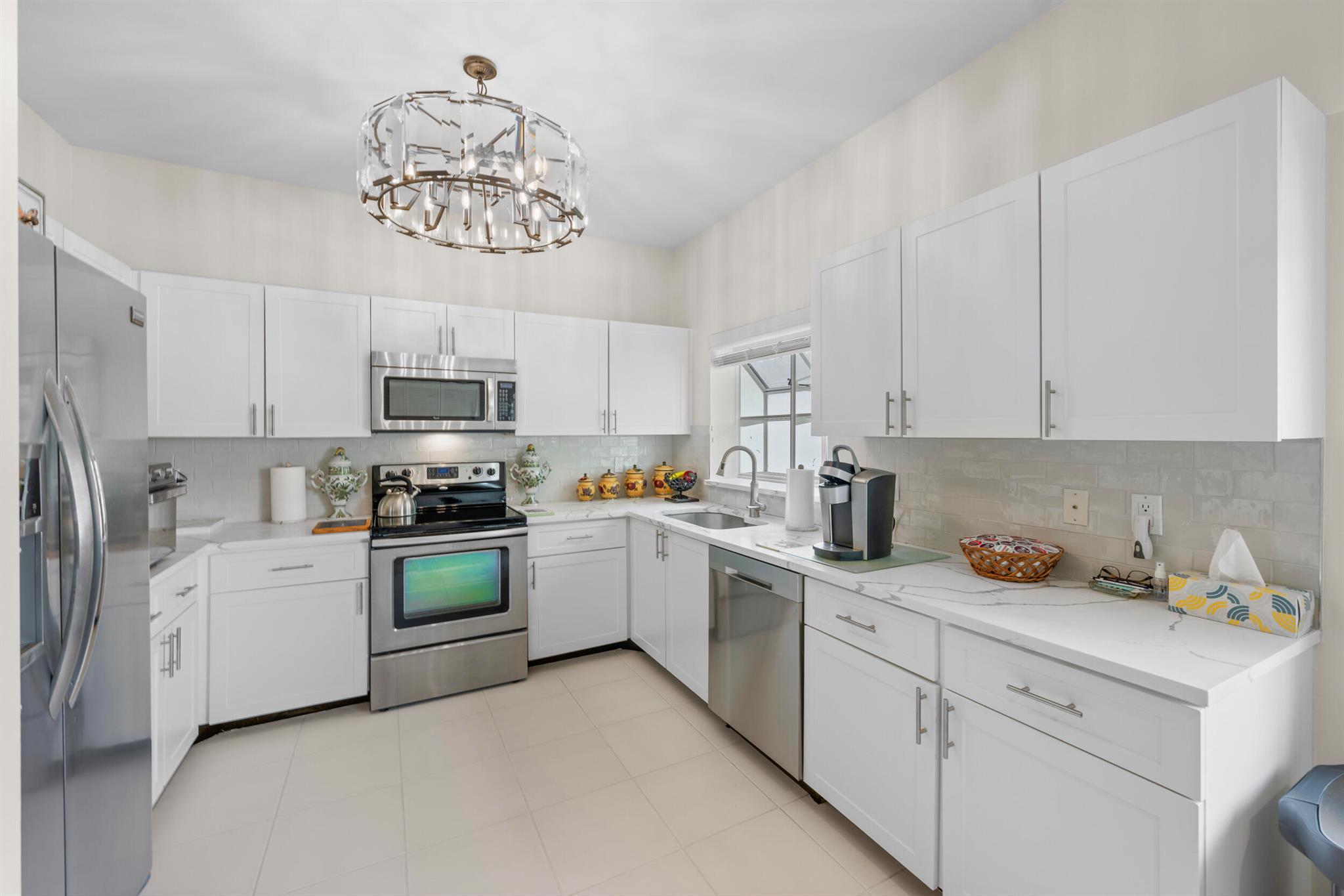MOTIVATED SELLER! Welcome to the vibrant 55+ community of Briarwood, nestled within the stunning non-equity membership Indian Spring Golf and Country Club. This immaculate 2-bedroom, 2-bathroom coach home offers a breathtaking view of the golf course from the enclosed screened-in patio. With an open, spacious layout and high ceilings, the home feels airy and inviting. The gorgeous, updated kitchen features white shaker cabinets with pull-out shelves, quartz countertops, stainless steel appliances, and a beautifully restored hardware chandelier. You'll also enjoy a large pantry and a charming greenhouse window. The guest bathroom has been updated with a walk-in shower, and the bedrooms showcase lovely wood floors AC 2020 - Water Heater 2019.