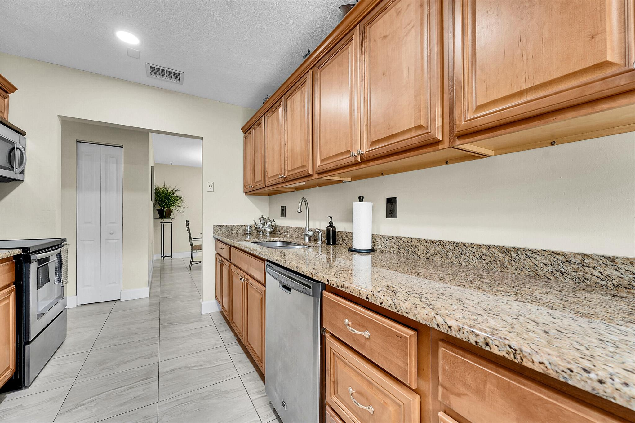 Beautiful WATERFRONT end unit - ready to move in!!! Can add a 3rd bedroom.... Recently updated with wooden cabinets, stainless steel appliances, top of the line bathroom fixtures and a huge master bedroom. This home includes and BRAND-NEW ROOF, , hot water heater 2022 and a/c unit 2018.Great location off of Forest Hill Blvd, minutes to the ocean or east to Wellington