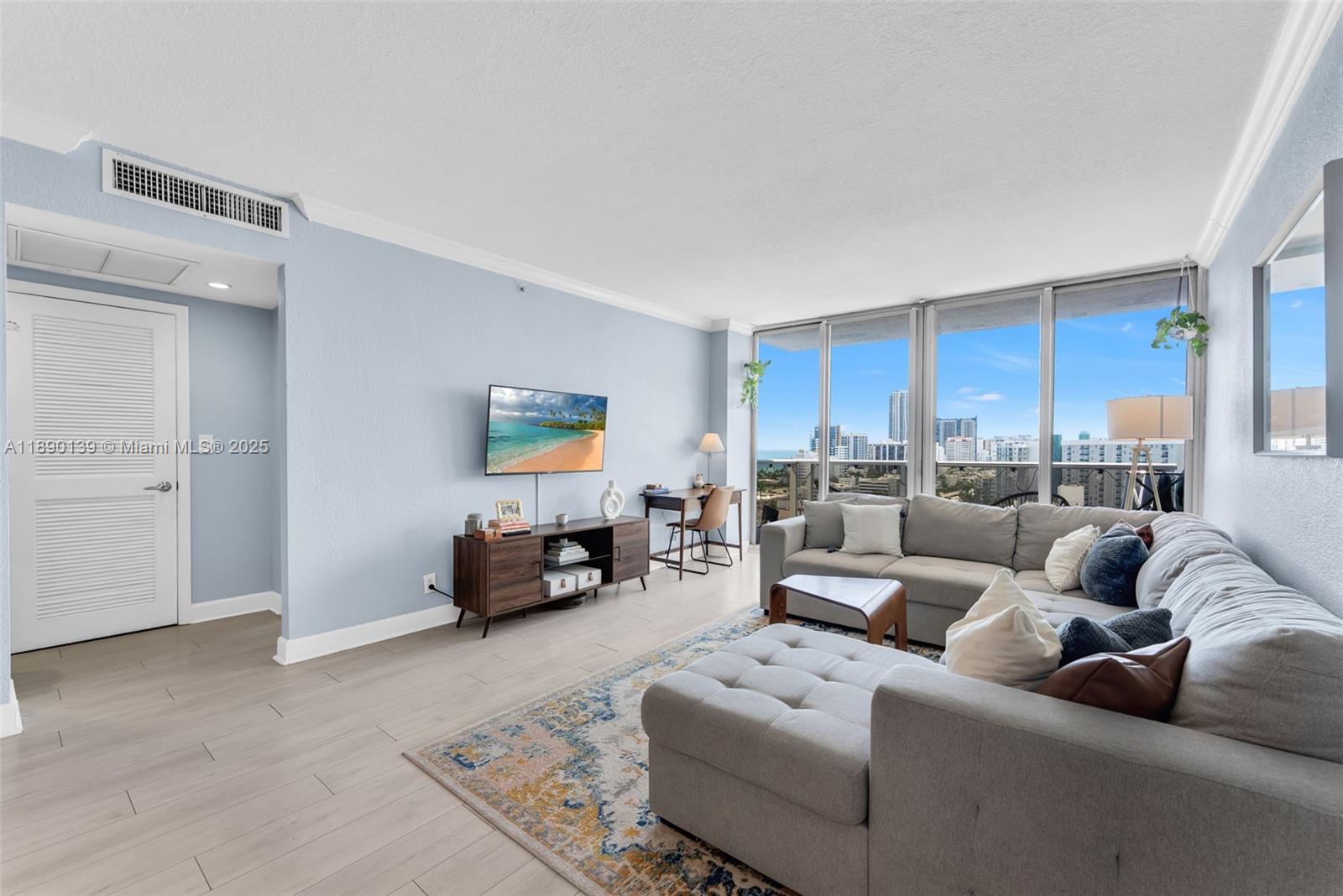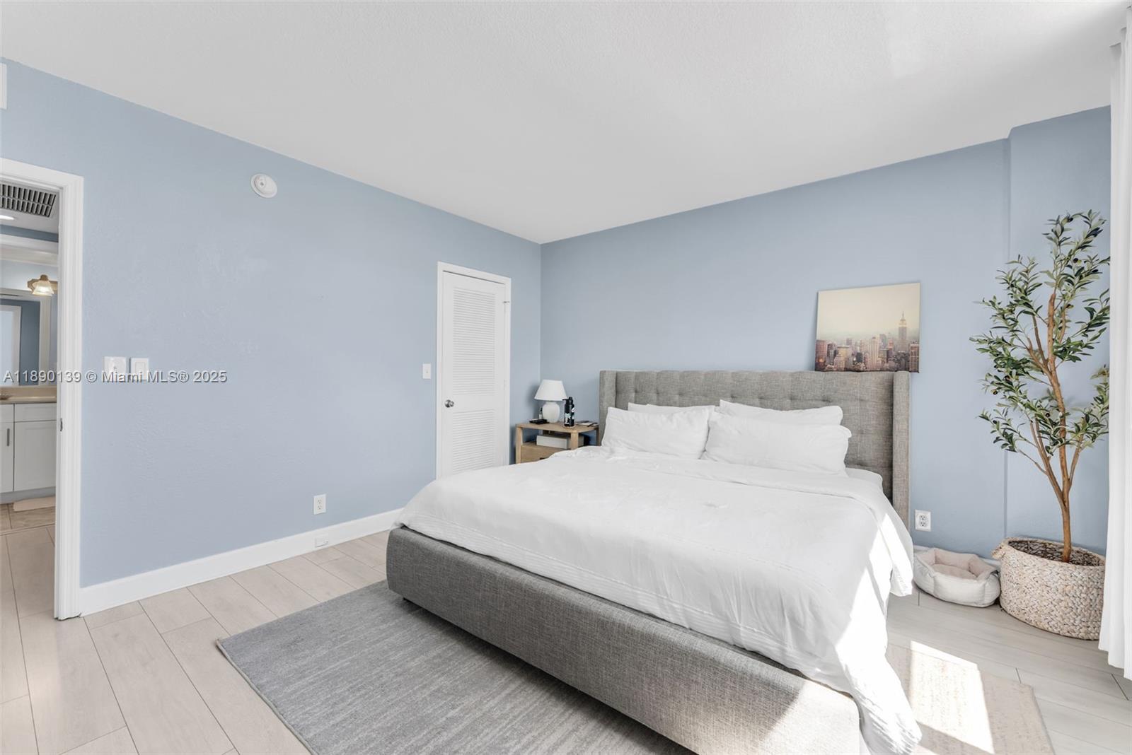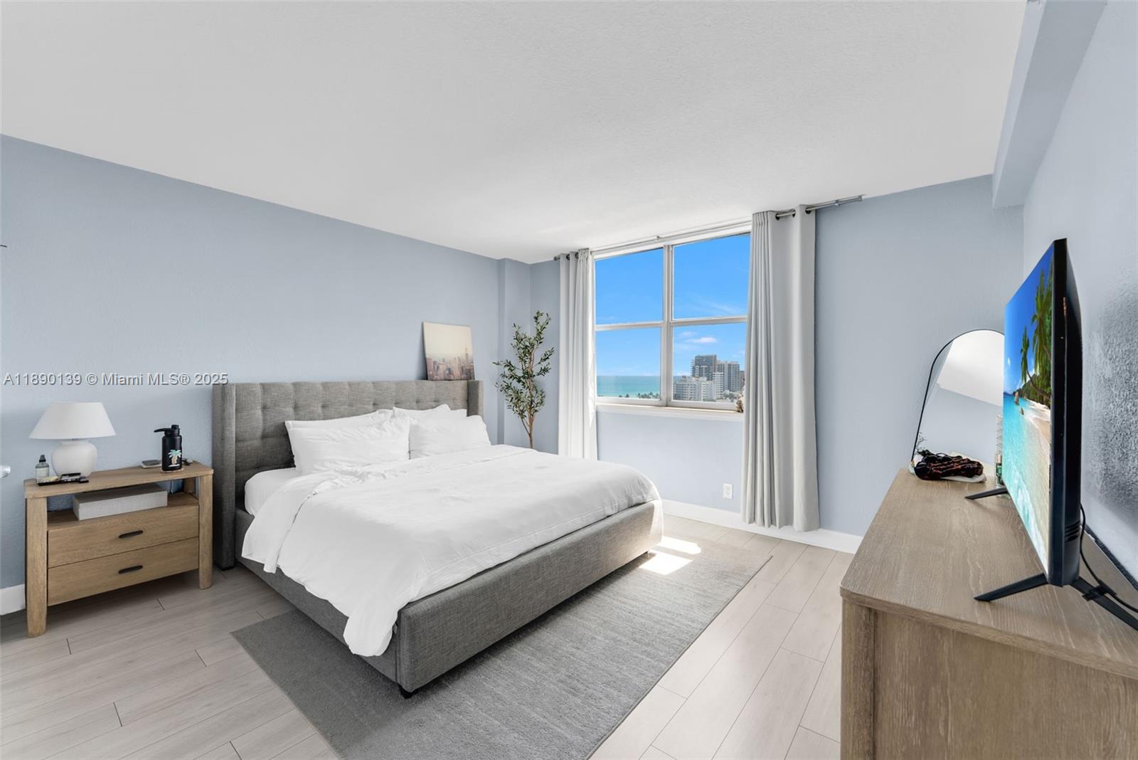 Experience unobstructed ocean, bay, and Miami skyline views from this beautiful 1/1 at 401 BLU. This south facing unit on high floor just under the PH is flooded with natural light and features many upgrades including white kitchen cabinetry, granite, SS appliances, high ceilings w/ crown moldings, wood flooring, spacious bedroom w/ large walk in closet, and large private balcony. This fully renovated high rise is located in the heart of North Beach's Town Center. With a walking score of 95! Publix, shopping, many great dining options, entertainment, and your beach entrance are all just outside your door. 401 BLU has excellent financials! Fully funded with big reserves & no assessments. Amenities include 24/7 front desk, roof top pool, gym, bike room, and covered secured parking.