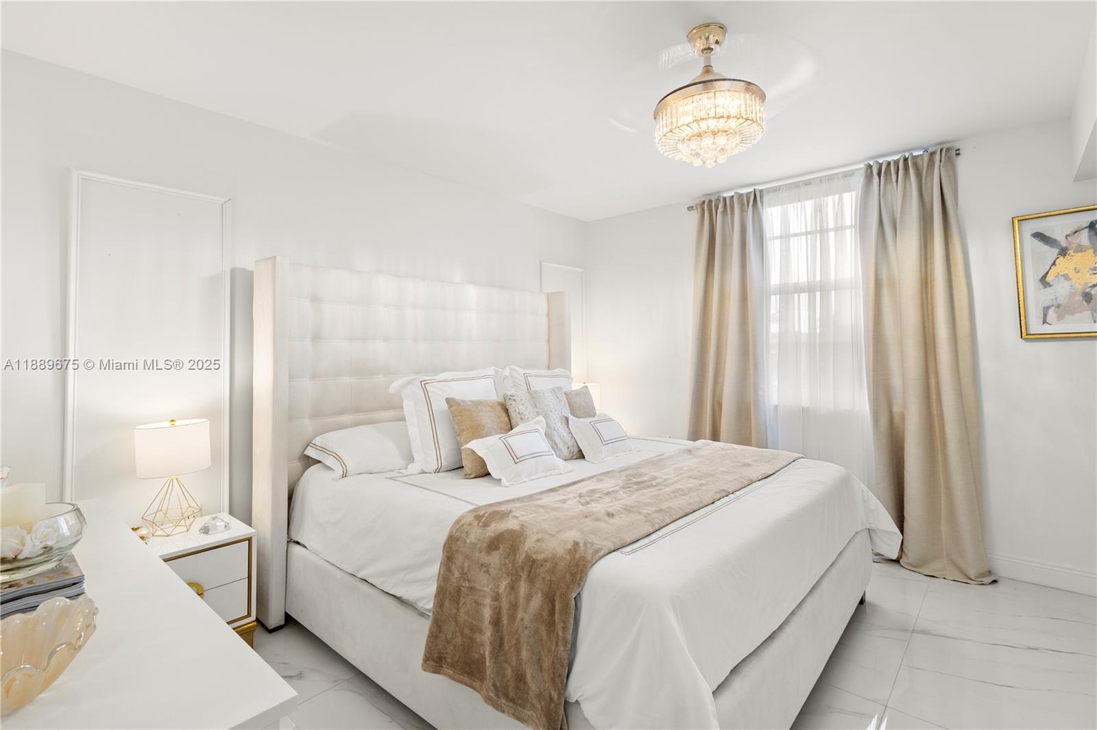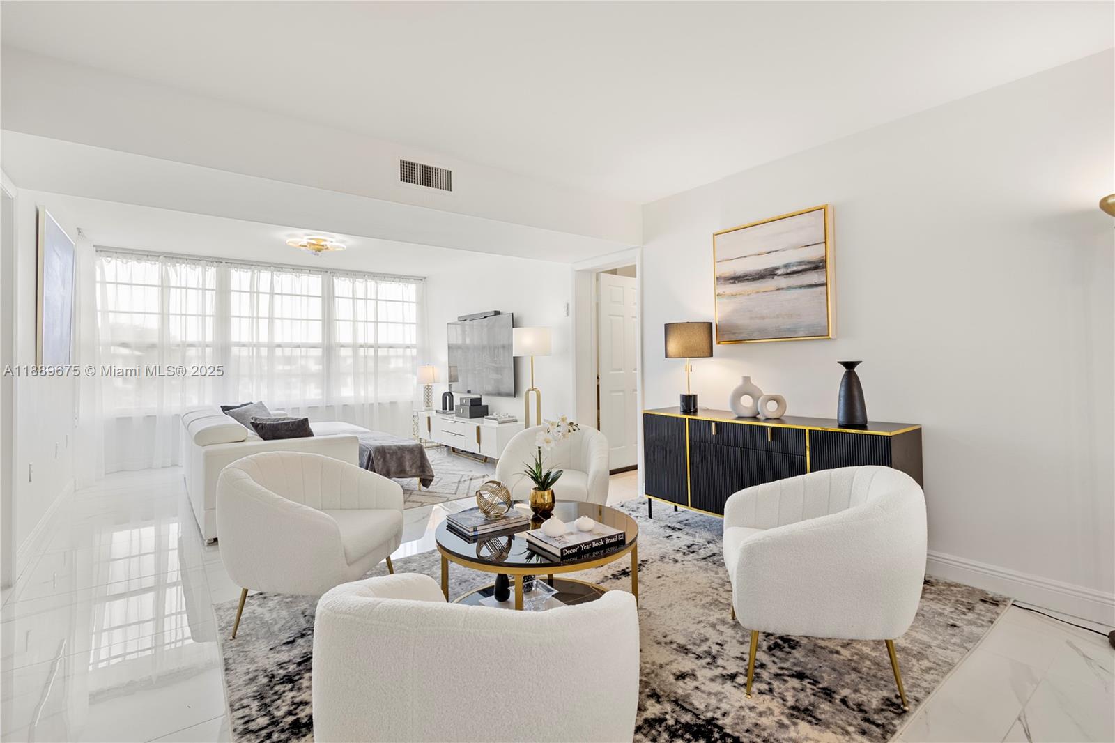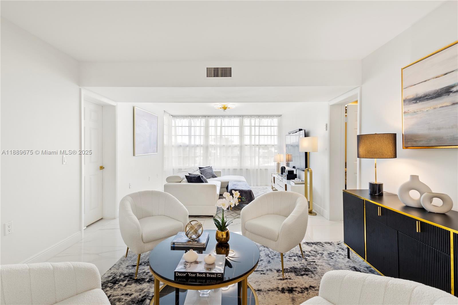 Beautiful 3 bed, 2 bath apt with 1,437 Sqf. Renovated with high-end materials and luxury details. It offers a large living room with Tv room, conversation room, dinning room and a bar for 4 people. It has 2 large bedrooms, great loundry area (new washing and dryer machines) whose annex was converted into a 3rd bedroom and also can be used as an office. High quality designer finishes throughout. All impact windows, 48x48 italian porcelain tile flooring throughout the apt, including the kitchen and bathrooms, smooth ceelings and wall painted in white with high quality paint for an easy cleaning. Must see!