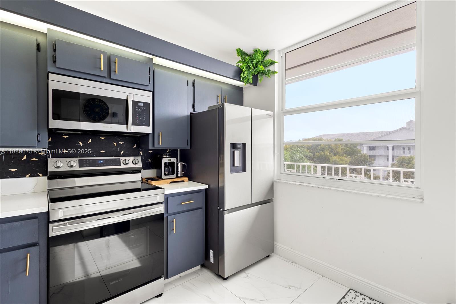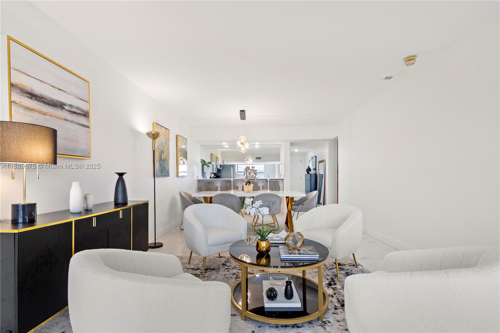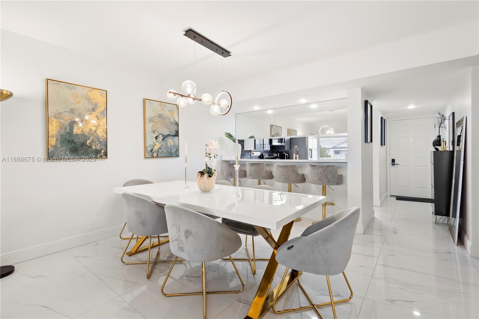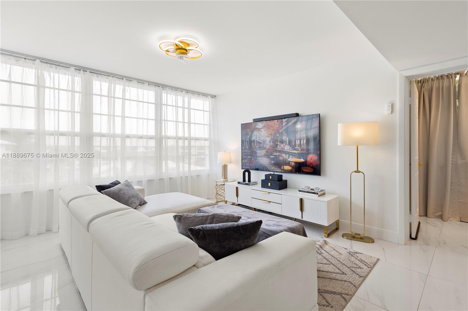 Beautiful 3 bed, 2 bath apt with 1,437 Sqf. Renovated with high-end materials and luxury details. It offers a large living room with Tv room, conversation room, dinning room and a bar for 4 people. It has 2 large bedrooms, great loundry area (new washing and dryer machines) whose annex was converted into a 3rd bedroom and also can be used as an office. High quality designer finishes throughout. All impact windows, 48x48 italian porcelain tile flooring throughout the apt, including the kitchen and bathrooms, smooth ceelings and wall painted in white with high quality paint for an easy cleaning. Must see!