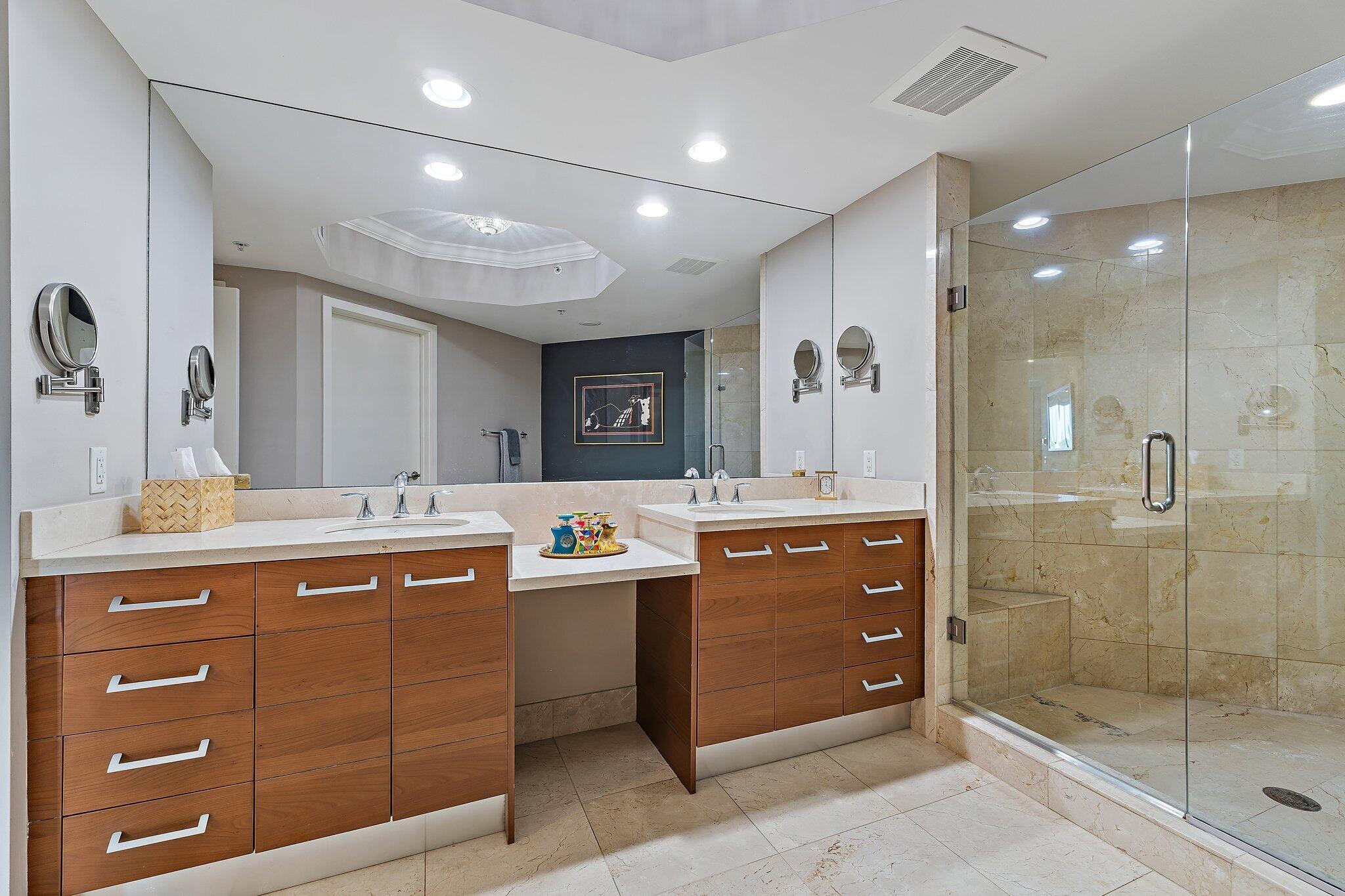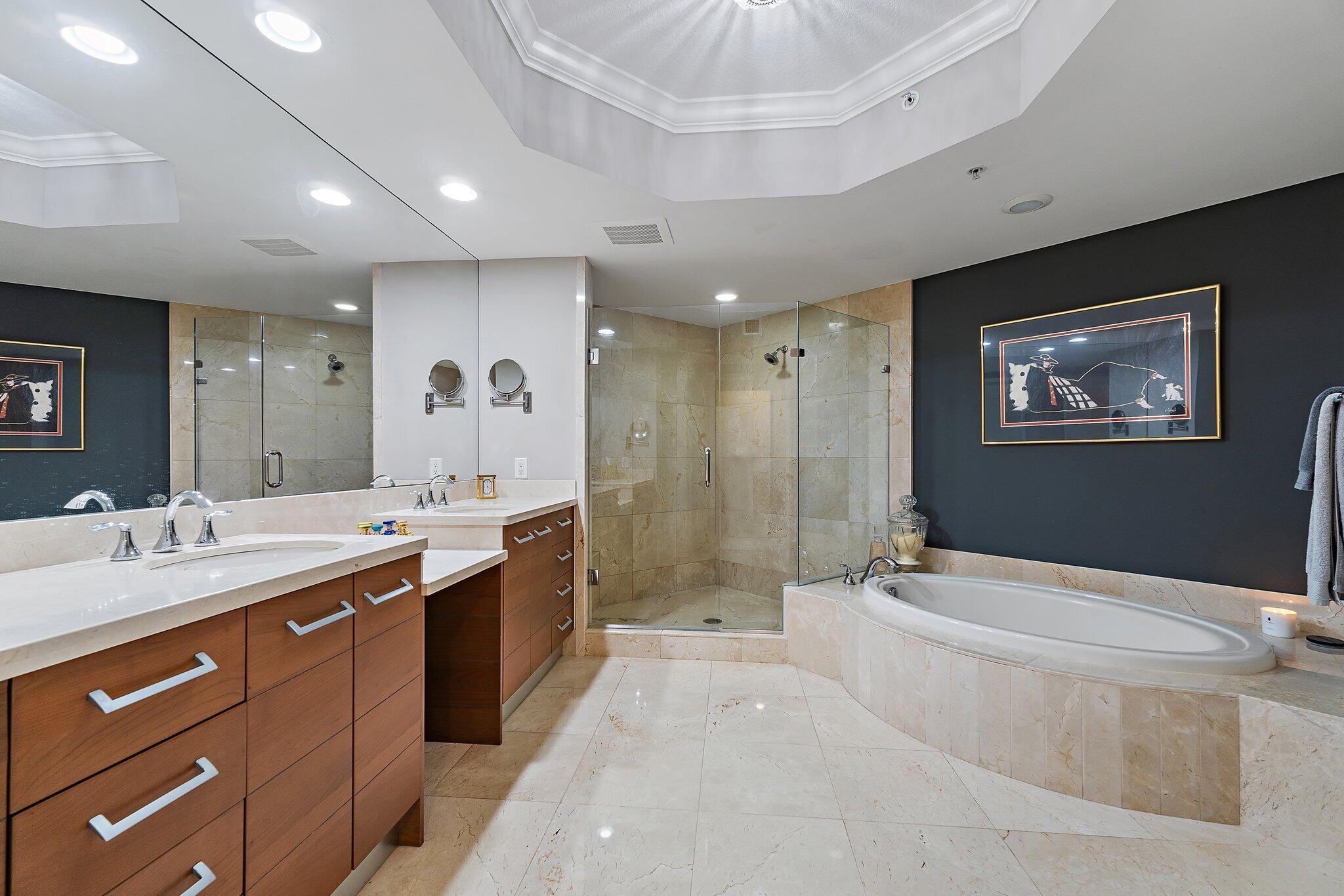 Designed for the discerning buyer, this well-designed 3/3 floor plan spans over 2,700 sf of elegant living at The Landmark. Effortless entertaining with the built-in bar and spacious kitchen, while custom millwork, motorized shades, and built-in closet systems ensure beauty and maximized function throughout. Your carefree lifestyle begins with this pet-friendly building's outstanding amenities: full-time valet, fitness center, saltwater pool, private theater, library and more. Seamless commuting and travel with PBI & private airports just 20 mins away and pristine Jupiter/Juno beaches only 10 mins away. Located in the epicenter of Palm Beach Gardens offering fine & electric dining, shopping, Whole Foods, LifeTime Fitness, entertainment & more... luxury and location! Well-funded reserves.