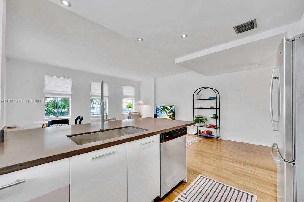 This east-facing corner unit is flooded with natural light and is located on a quiet residential street in the Flamingo neighborhood. It’s just a short walk to the beach, South Pointe Park, Whole Foods, Publix, Lincoln Road, and more. Enjoy the best of South Beach living in a peaceful setting with ample street parking. The unit features a modern kitchen, real hardwood floors, updated bathrooms, spacious closets, extra storage, central A/C, and a brand-new water heater. Smart-home touches include a Nest thermostat and keyless entry. Well-managed building with strong reserves and approved financing.