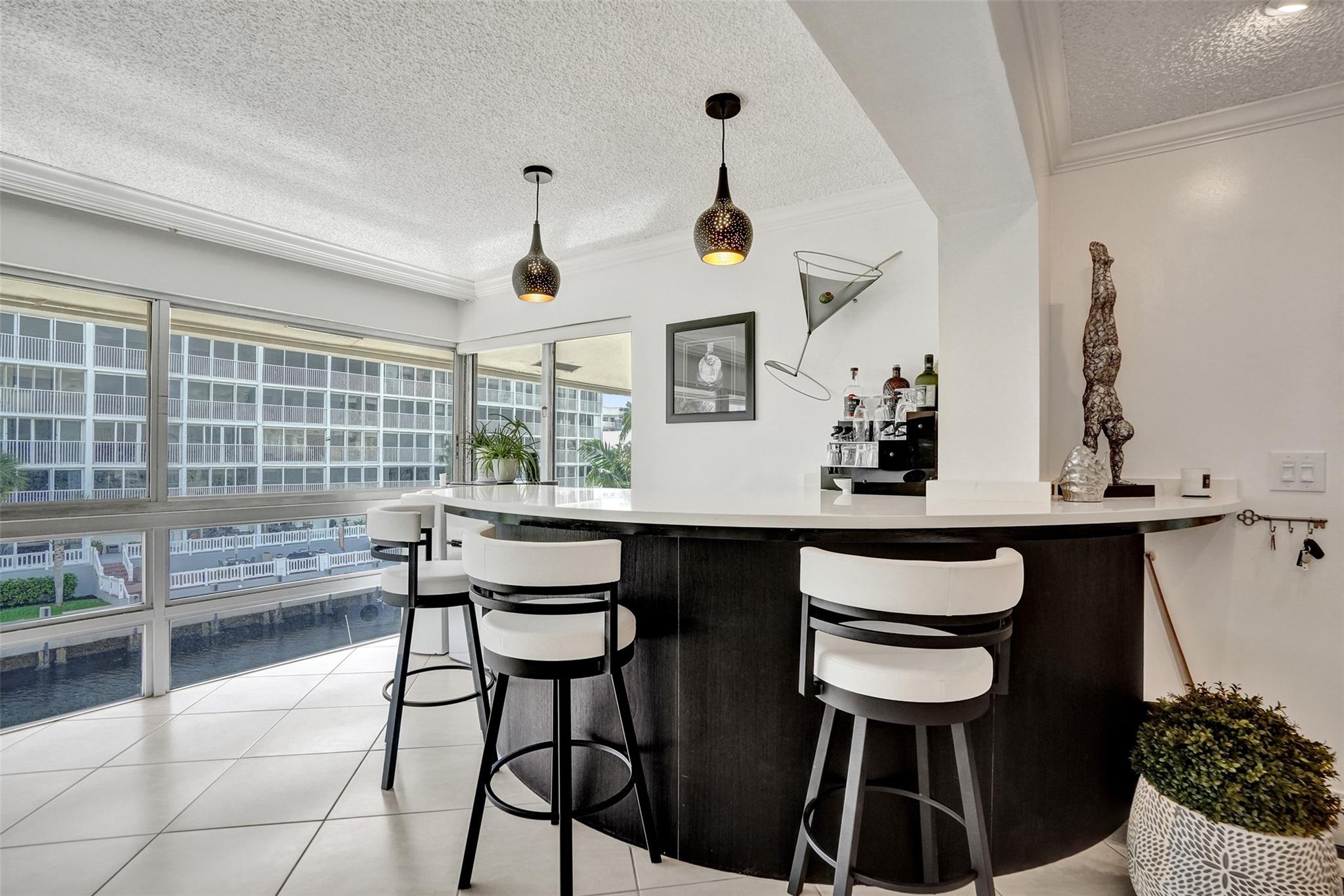 Completely open & very spacious 2 Bed, 2 Bath Waterfront condo. Boutique style building only 3 stories. This is a Corner unit, located on the Top floor giving ultimate privacy. Floor to ceiling windows give an incredible view of the canal & the main intercoastal. Large floor plan offers 1,350 Sq Ft and ample natural light. Sleek kitchen with modern appliances. Built in bar great for entertaining. Washer/dryer in the unit + Additional storage. Bldg is finishing updates including: concrete restoration, painting, refurbished pool area & more. All assessments paid in FULL. HOA fee includes exterior insurance/wind/hurricane, water/sewer/trash + more. Assigned parking space. Elevator in building. Walk to Lauderdale-by-the-Sea, enjoy restaurants & the beach. Boat dockage available for rent.