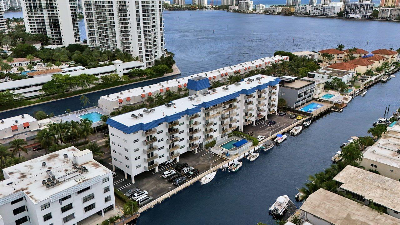 Experience luxury and security in this Eastern Shores waterfront condo, located behind a guarded gate. The 5th floor unit boasts stunning water views from both its large south-facing balcony and north side. Partial impact windows and hurricane shutters through out. High-end travertine finishes throughout, complemented by a fully remodeled kitchen and updated plumbing/electrical system. This 2 bedroom, 2 bathroom layout includes a walk-in master closet for added convenience. With the building surpassing its 40-year certification and being ahead on the 50-year certification, peace of mind is assured. Additionally, seize the opportunity to rent a dock space! This condo offers not just a home but a lifestyle! Deeded dock is only $250/M bring your boat!