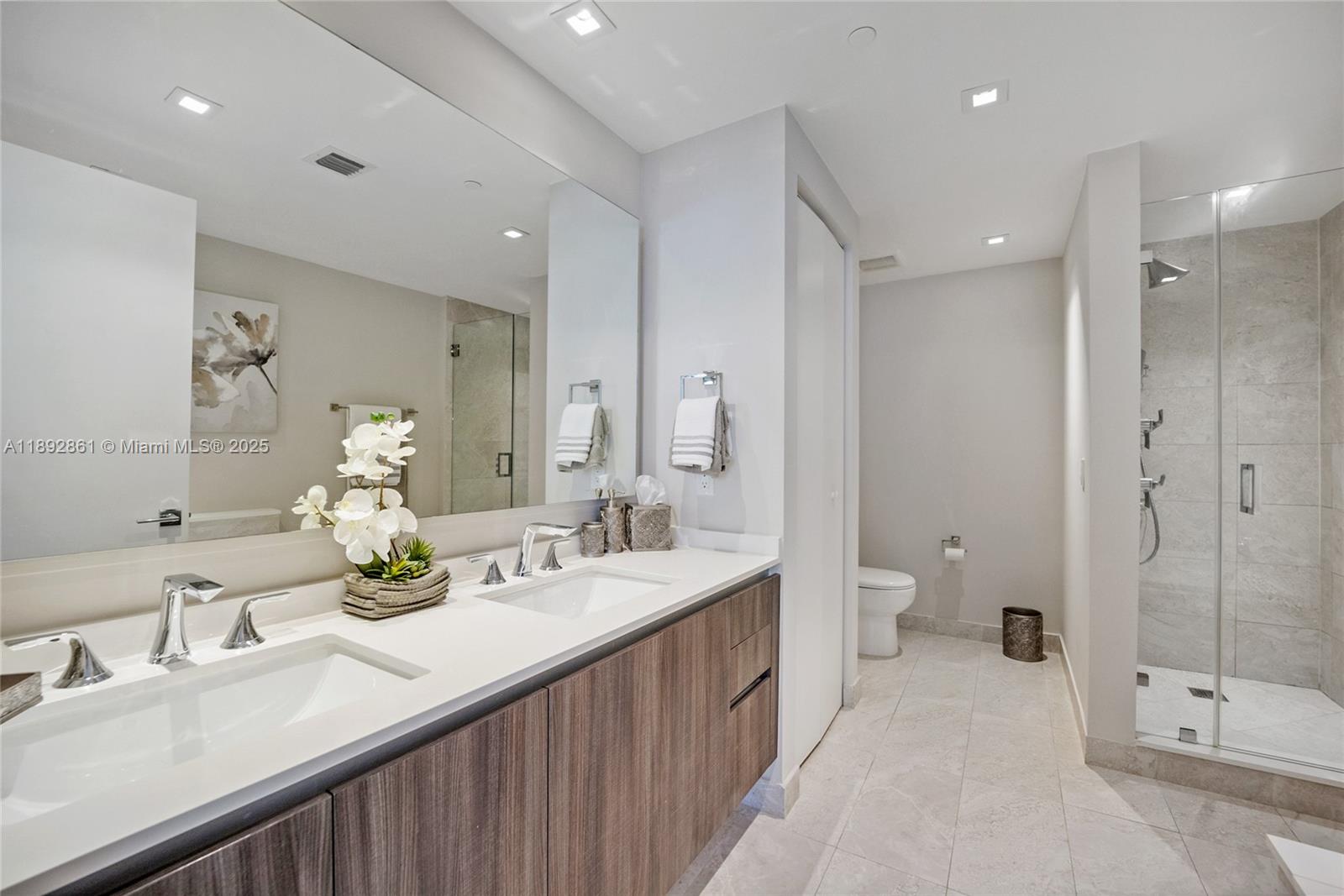 Rare opportunity for an Aria residence to come with 2 assigned parking's in a tandem space. Residence features a private elevator, private foyer entrance and 3 spacious bedrooms with en-suite bathrooms, upgraded concrete-like tile throughout, suspended ceilings with recessed dimmed lighting, kitchen with an island, Italkraft cabinetry, Quartz counters and Bosch stainless-steel appliances. Full amenity resort-style building with sunrise & sunset pools, poolside BBQs, spa, clubroom, business center, fitness center, movie theater, kids’ playroom, and more. Located in trendy Edgewater neighborhood across from the Margaret Pace park, walking distance to Adrienne Arsht Center, restaurants and Miami dining scene, excellent central location with easy connectivity