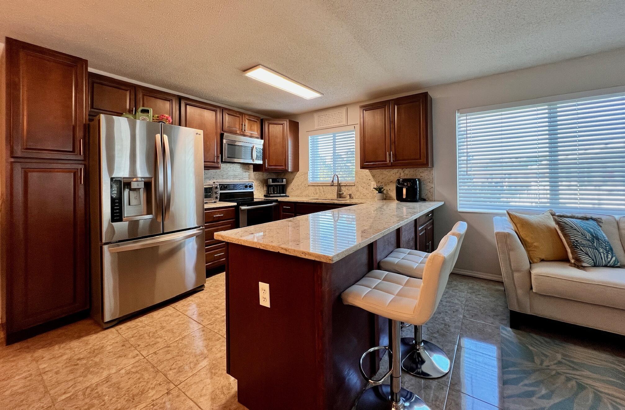STUNNING & WELL PRICED IN 55+ CENTURY VILLAGE! Move In Ready Beautifully Updated CORNER 1/1.5 With An Open Living Area. Updated & Open Kitchen Featuring Rich Wood Cabinets, Expanse of Granite Counters, Stainless Appliances, and Window for Natural Light. Tile Flooring Flows Throughout. Updated Baths. Impact Windows All Around Including the Slider to Lanai. Nicely Maintained Building With New Roof (2021), Recently Painted, and No Special Assessments! Close to Hastings Fitness Center and the Dorchester Pool. Century Village is a Vibrant 55+ Community Centrally Located in Highly Desirable Palm Beach County. Enjoy An Active Lifestyle In Century Village With....