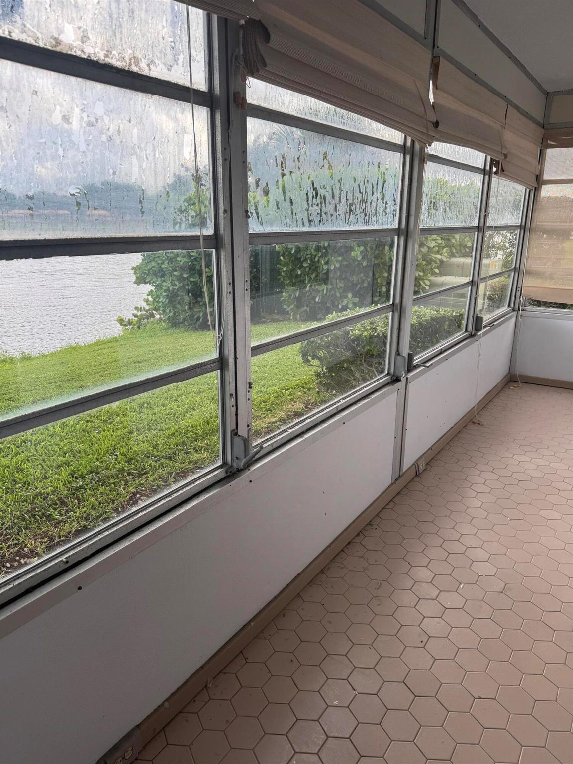 Gorgeous lake view from the shaded outside sitting area, sunroom & both bedrooms. Easy access to the main floor corner condo & close reserved parking space. 1 1/2 bathrooms, walk in closet & Kitchen appliances included. 24 hour gated community. 92,000 sq ft Clubhouse w/meeting rooms for hobbies, clubs, card games, extensive library, billiards, bingo, music & other creative activities, 1,221 seat theater, popular health club offers exercise equipment, Yoga, aerobics, Pilates & dance classes, & personal training available. Walking resistance pools, tennis courts, pickle ball courts, sailboat rentals, & shuffleboard, On-site medical building w/pharmacy, on-site beauty salon, transportation to local shopping centers, restaurants & medical facilities. No need to ever leave or even own a car.