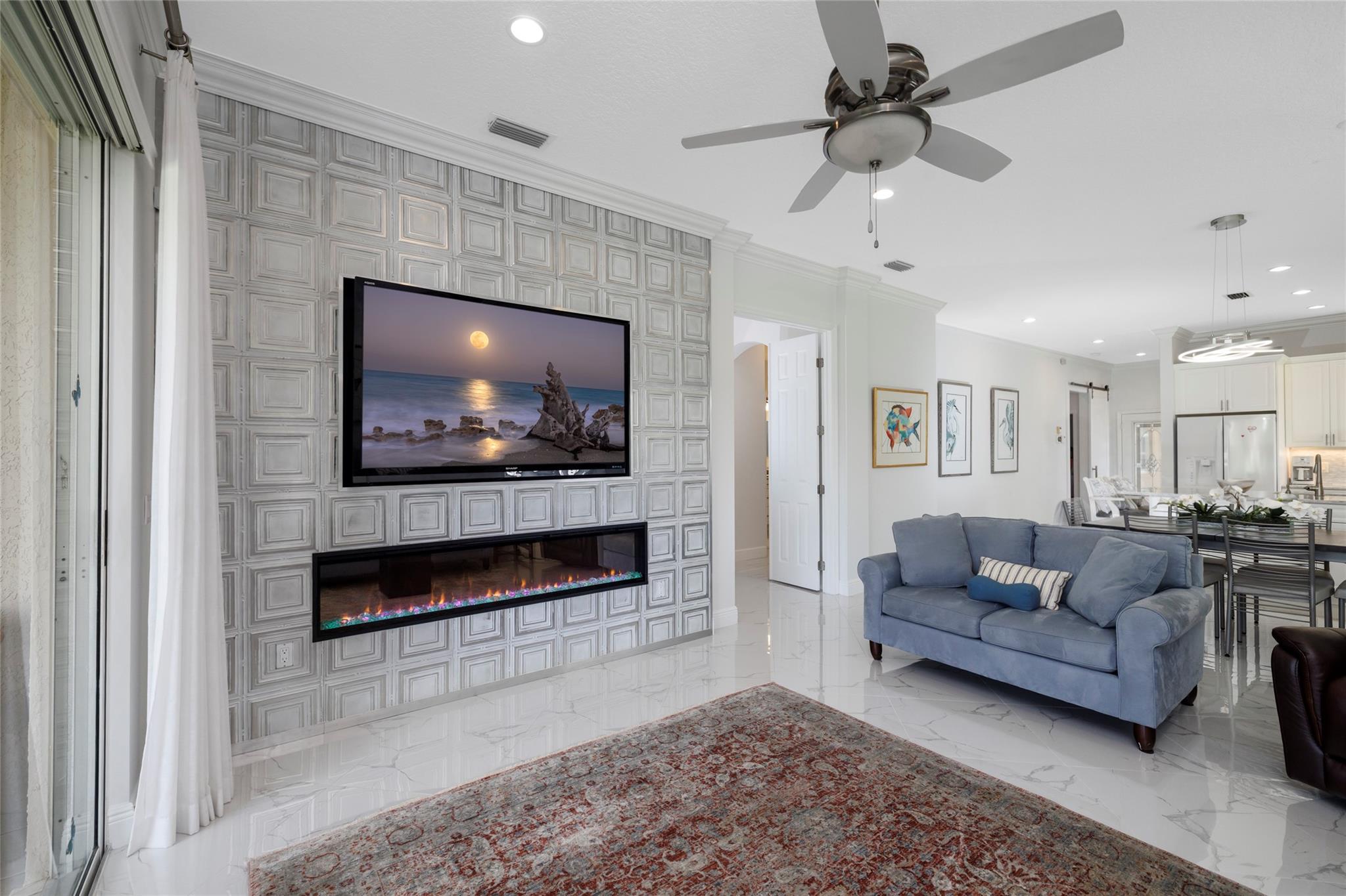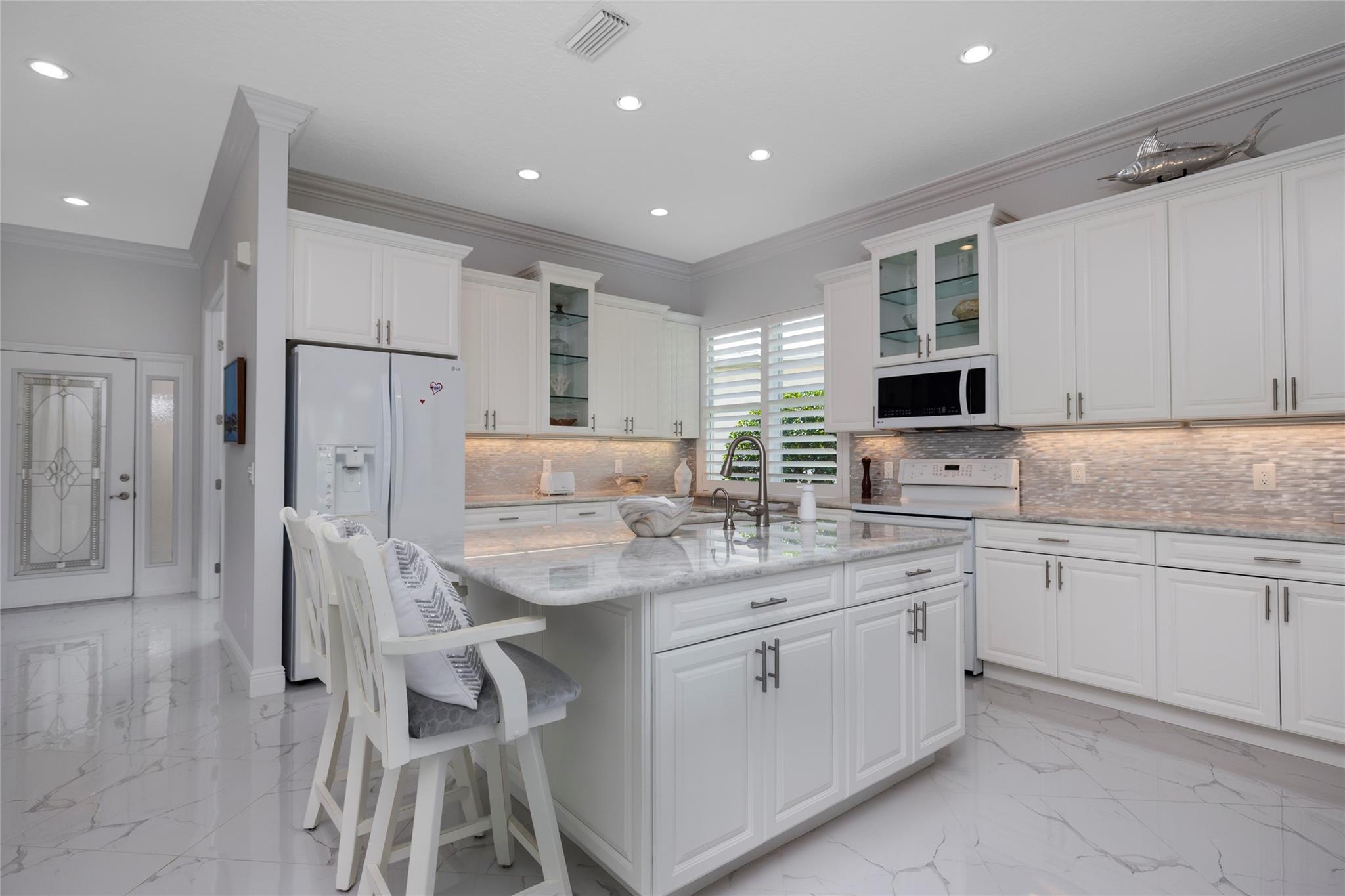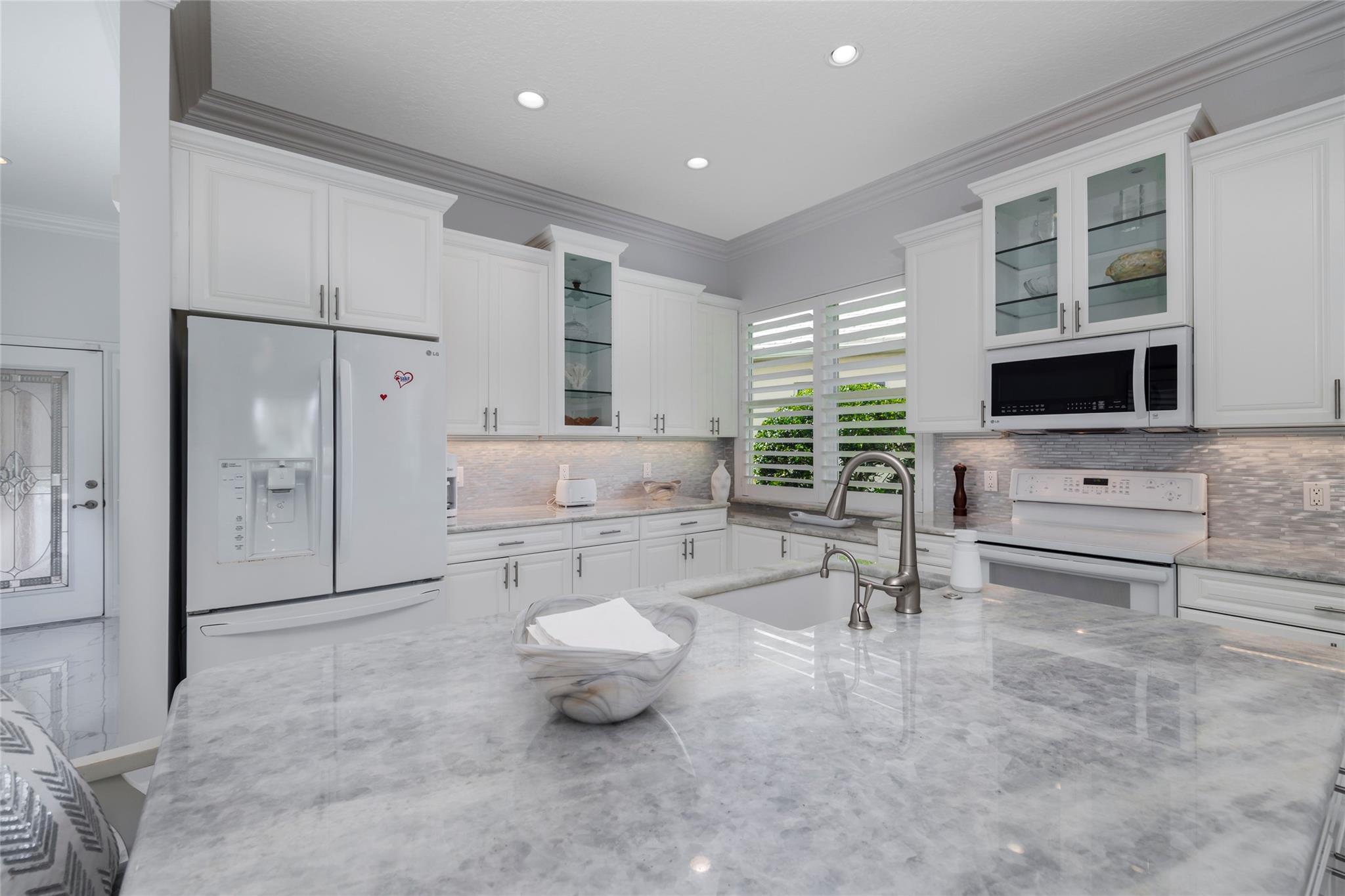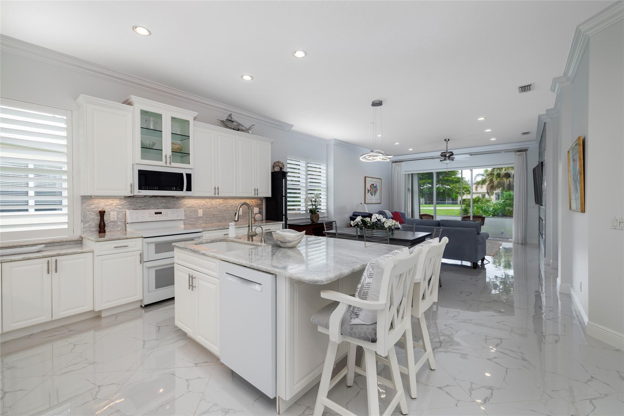 Carefree country club living at its best! Gorgeous one of a kind completely updated VILLA is being offered FURNISHED. Private Golf & Garden Views. Walls have been removed creating a true Open Concept Kitchen/Dining/Living Room. 2 Bdrm 2 Bath + Den, 2 Car Garage. All White Custom Cabinetry, Tumbled Marble Countertops + fabulous coordinating backsplash. Roof Replaced 2018, all Windows Impact Glass. Sliding Doors & Custom Front Door have Accordion Shutters. Electric Fireplace in Living Room. Privacy Door added to Guest Suite. Both baths completely renovated. Walking distance to all Amenities - Golf, Tennis, Clubhouse, Pool/Spa. Invited Club Membership is optional but necessary to access Club & Amenities. List of special features and items excluded available. This is a must see!