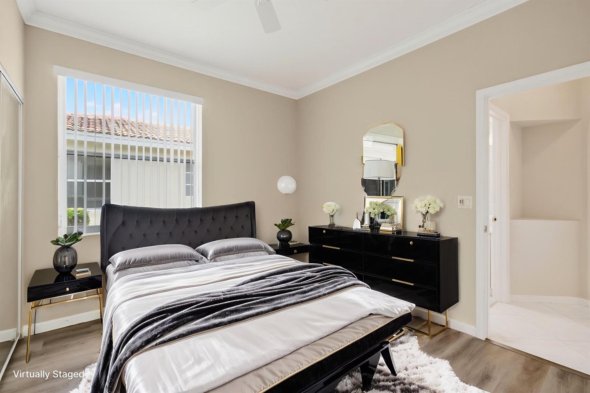 MAJESTIC ISLES- SUPER ACTIVE AND PRESTIGIOUS ADULT COMMUNITY. CLOSE TO PLACES OF WORSHIP. Welcome to 5731 Emerald Cay Terrace, in the heart of the secure, gated community of Majestic Isles, Boynton Beach. This remarkable villa flawlessly combines modern architecture and understated elegance that promise an unparalleled living experience.As you entertain or relax, you are enveloped by a sense of grandeur created by soaring ceilings and crowned moldings present throughout the premises. The neutral tiled flooring, found across all main living areas, exudes a charming blend of aesthetic appeal and durability. Luxury vinyl flooring is thoughtfully incorporated into two of the three bedrooms, promoting warmth and comfort underfoot.