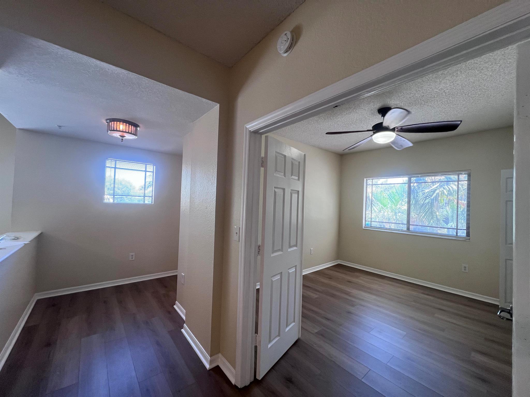 This is a corner unit with private entrance on first floor and interior stairs leading to the second floor living space. Located in walking distance to all community amenities like swimming pool, gym, tennis court, pickleball court, EV charger and more. Plenty of parking in front of this building. Unit has brand new vinyl plank flooring and fresh paint. New kitchen appliances and vinyl plank flooring installed in August 2025
