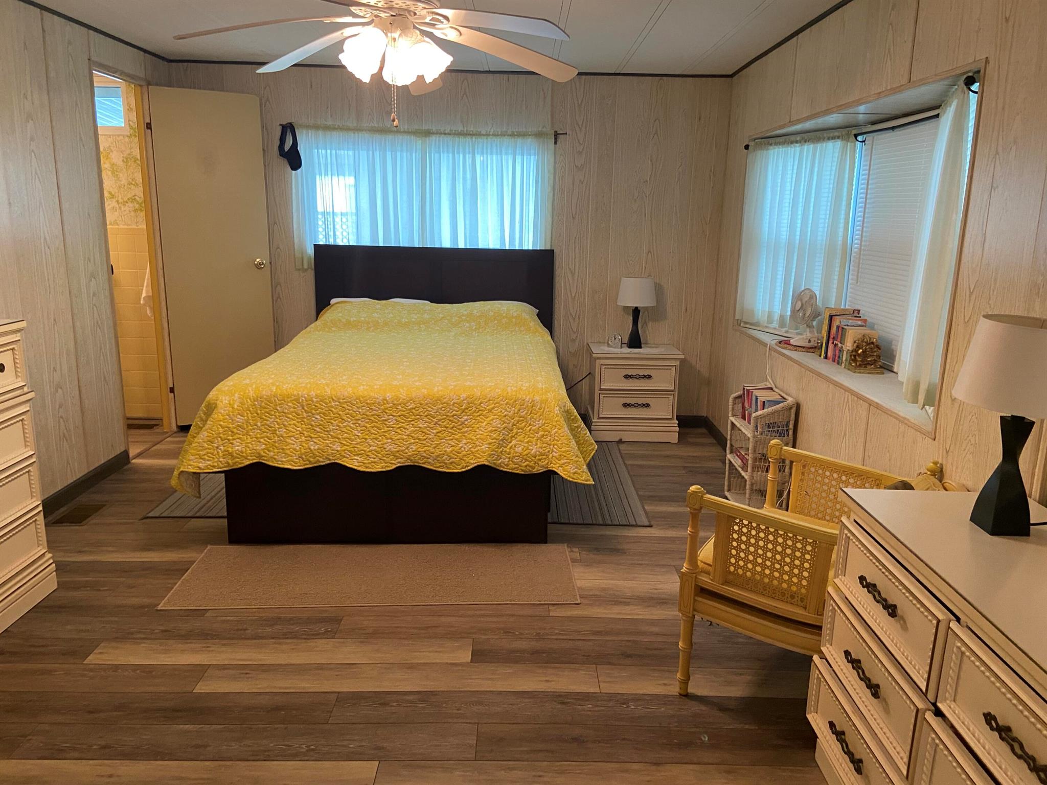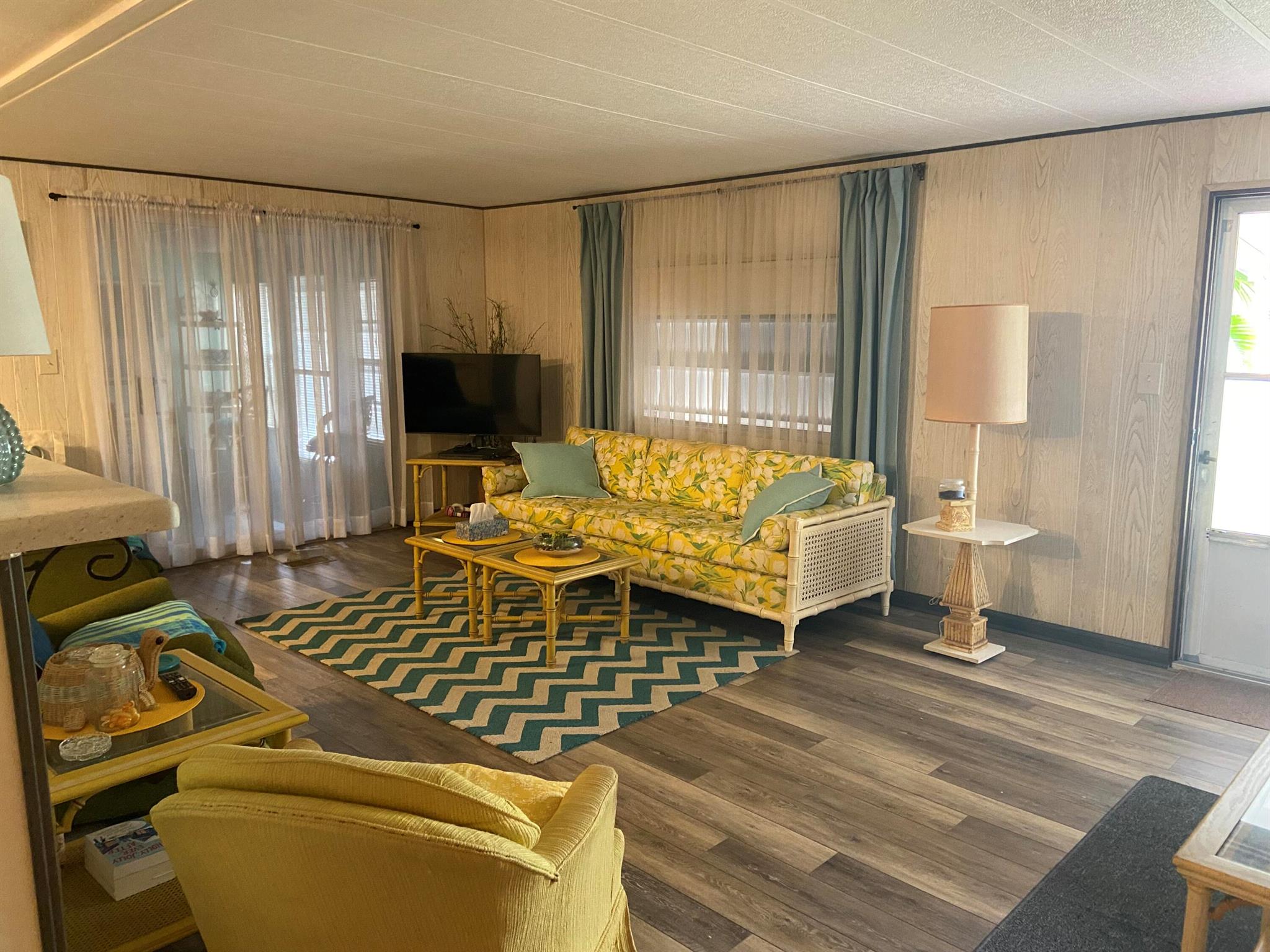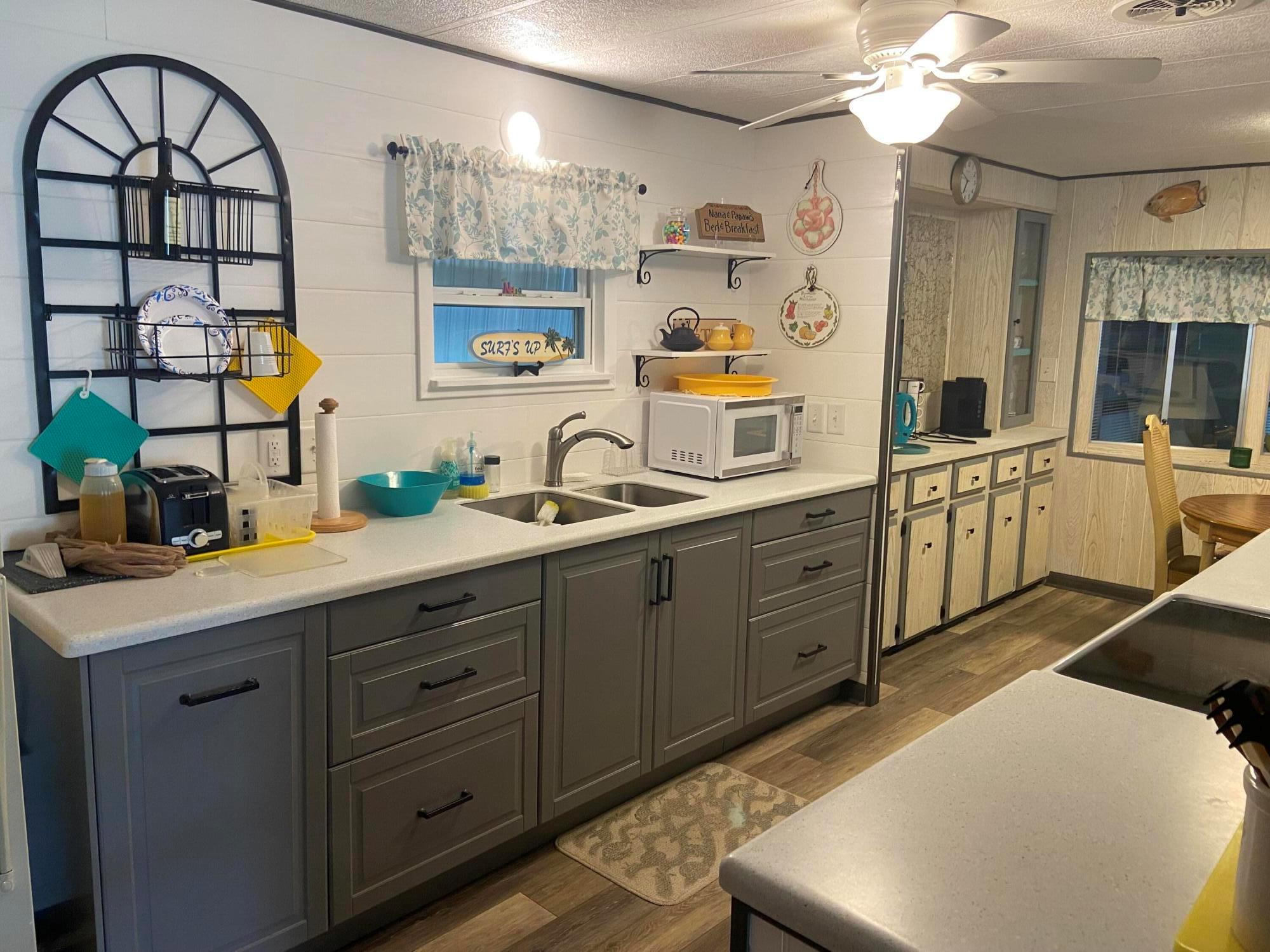 This charming 2 bedroom 2 bath home has numerous updates including new kitchen, on demand hot water, new bath, new moisture barrier, washer, dryer in shed, new skirting new ac 2019, and most new windows. All new laminate flooring. Offered fully furnished and located central to clubhouse and golf course, and lots of activities and great friends. INCLUDES 2 new trike bikes for a leisurely ride around this great 55+ community. This lot has a large back yard for entertaining and an extra-long driveway for 3+ vehicles. There is a spacious front Florida room under air for more entertaining space. All buyers must get residency approval with Spanish Lakes communities. Call today and we will walk you through the process! Call ME and Let's schedule your showing today!