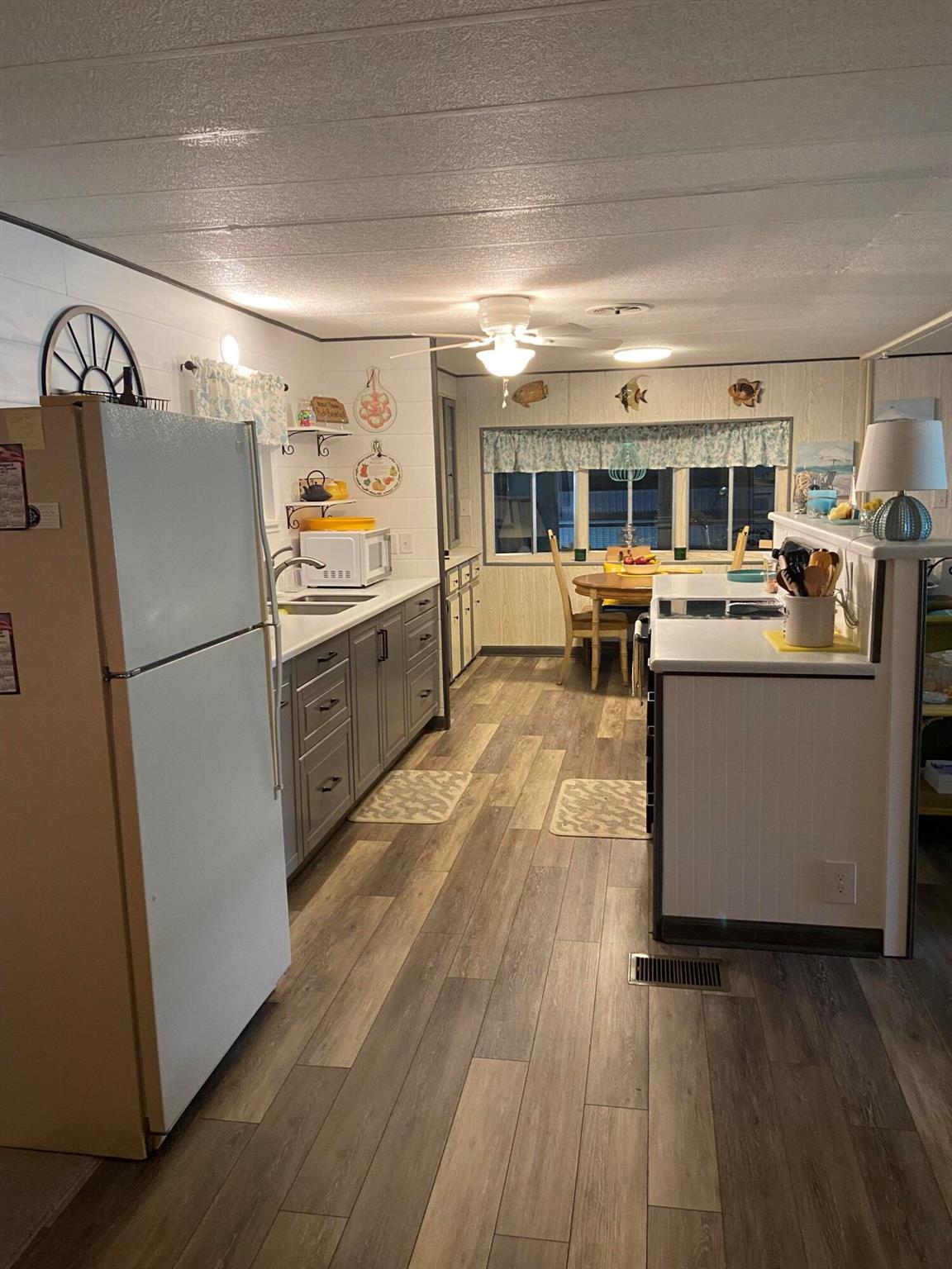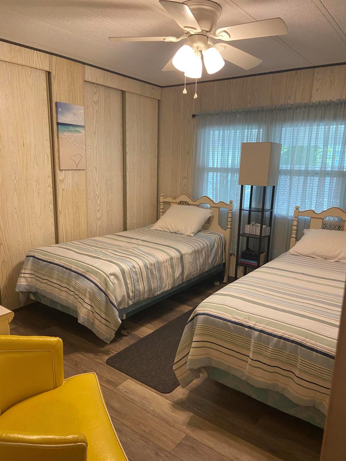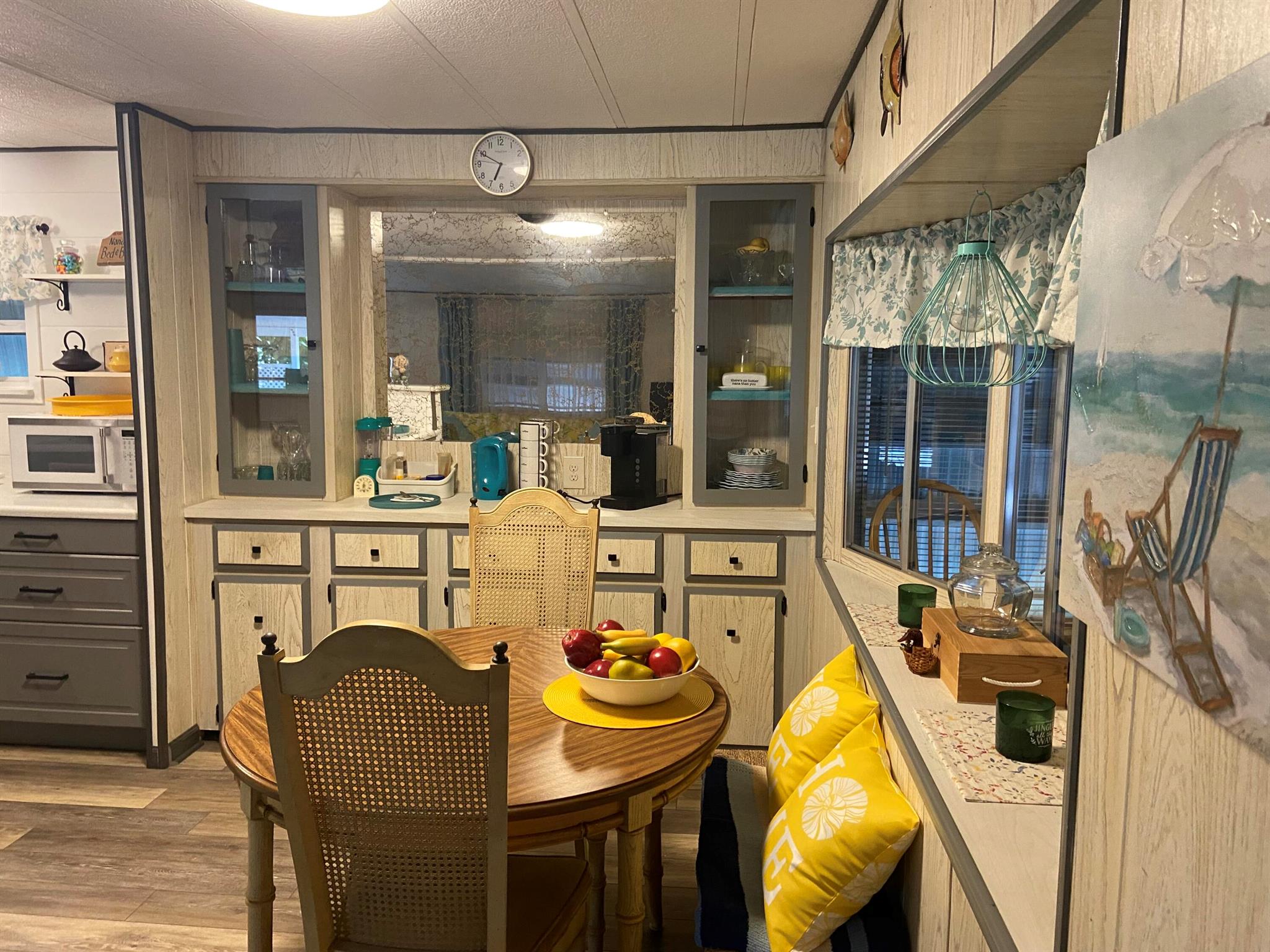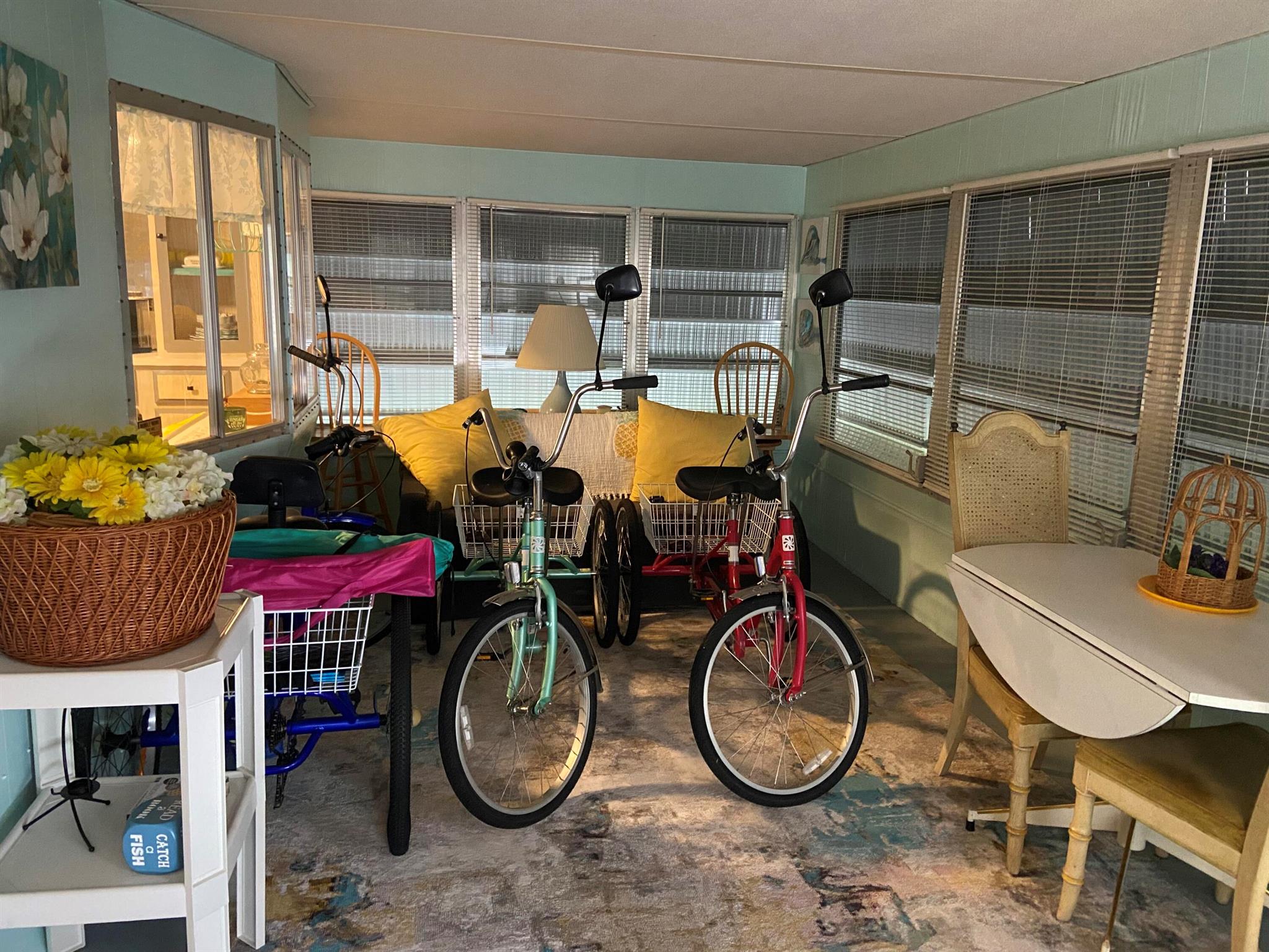 This charming 2 bedroom 2 bath home has numerous updates including new kitchen, on demand hot water, new bath, new moisture barrier, washer, dryer in shed, new skirting new ac 2019, and most new windows. All new laminate flooring. Offered fully furnished and located central to clubhouse and golf course, and lots of activities and great friends. INCLUDES 2 new trike bikes for a leisurely ride around this great 55+ community. This lot has a large back yard for entertaining and an extra-long driveway for 3+ vehicles. There is a spacious front Florida room under air for more entertaining space. All buyers must get residency approval with Spanish Lakes communities. Call today and we will walk you through the process! Call ME and Let's schedule your showing today!