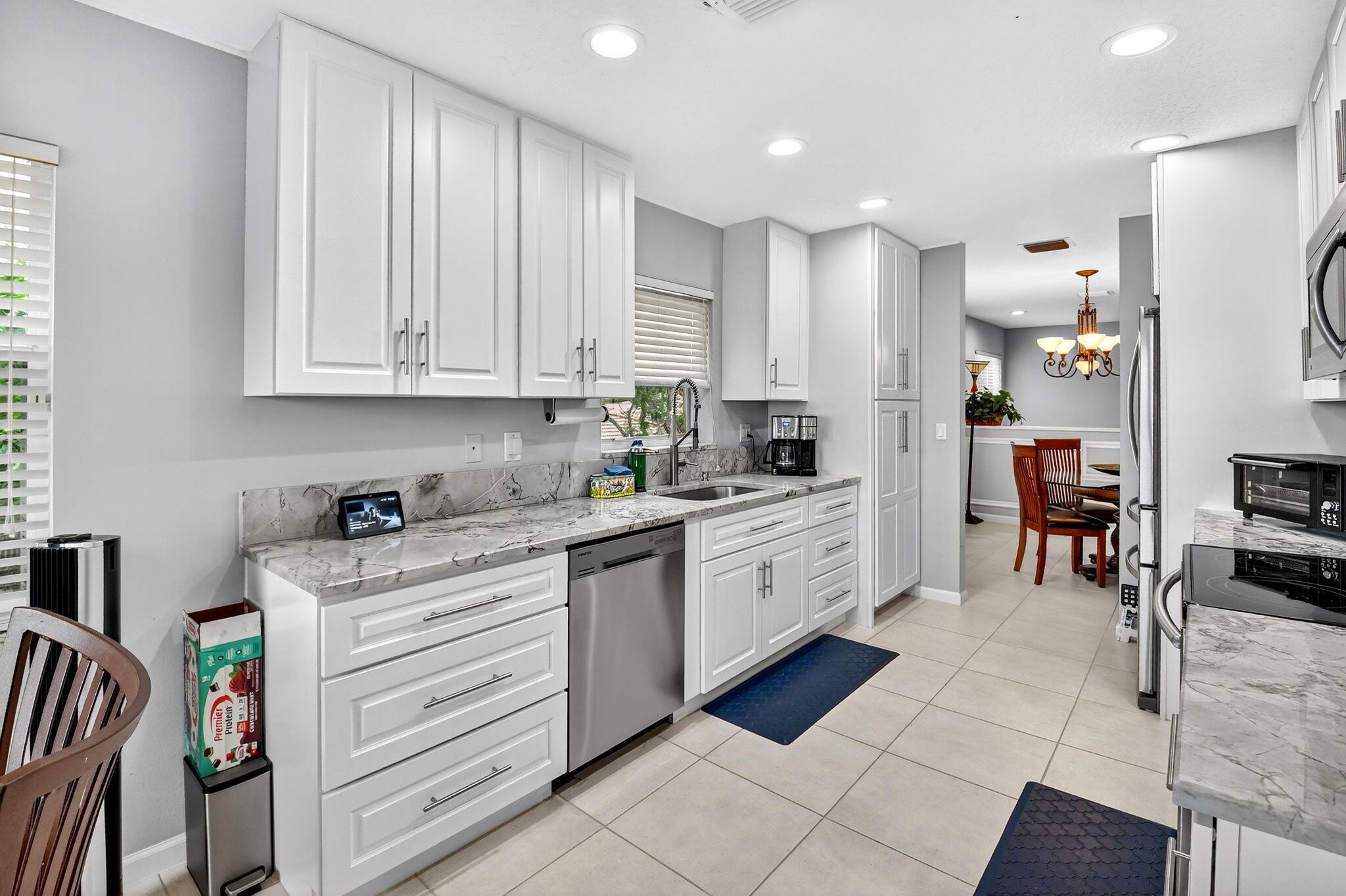 RARELY AVAILABLE 2nd floor coach home with interior elevator, extensively renovated coach home featuring vaulted ceiling, screened-in patio overlooking a gorgeous wide lake, (outdoor living at its finest.) modern kitchen with quartz counters, custom white cabinets & SS Appliances, gorgeous, 2 renovated bathrooms. Luxury laminate in master & 2nd bedroom. New roof in 2024. NO assessments! Condo fees include water. alarm, internet, TV, all amenities at newly renovated Club with tennis, pickleball, billiards, bocce, theatre, cafe, 35 social clubs, gym, water aerobics & much more, No country club fee. Move right in and enjoy. Can be rented immediately.