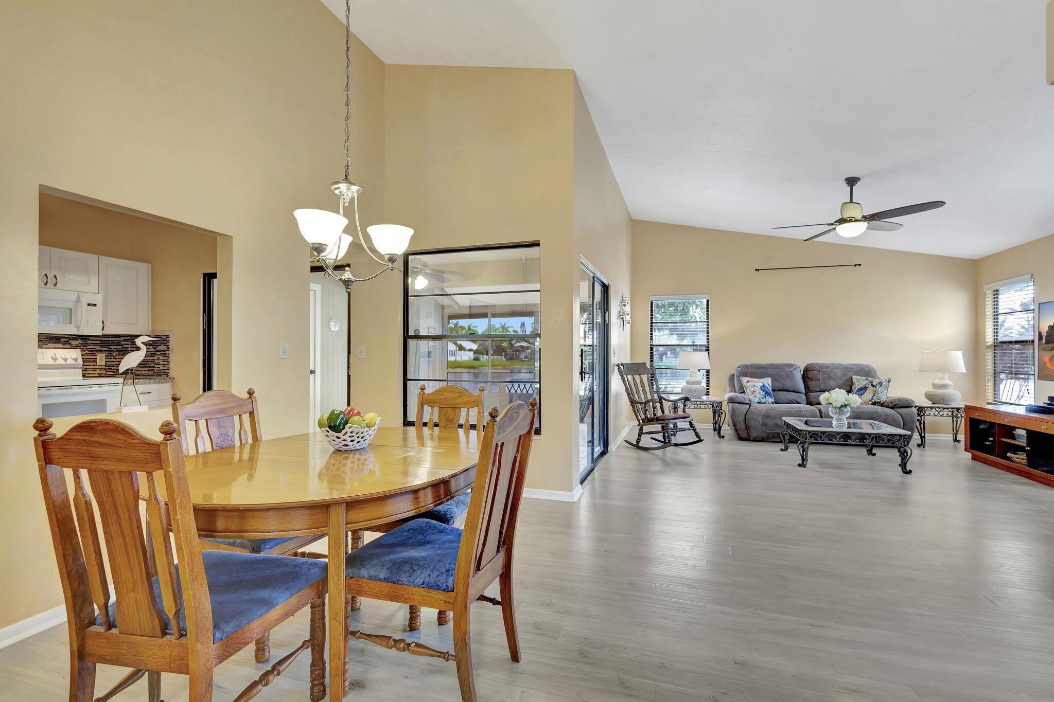 Welcome to this spectacular villa with breathtaking water views and plush greenery. This villa features a large, enclosed patio to entertain your family and friends. 2 bed 2 full bath equipped with washer and dryer, newer stylish flooring throughout, 2024 water heater, new thermostat. Plenty of storage capacity. An abundance of windows to let in the natural light. Lovely primary bedroom features a sliding glass door to an outside patio with a fence and door to the front yard. This is one of the premier locations, the swimming pool is steps away from your front door and the club house is only seconds away which features billiards, library, sauna, swimming pool, community room for cards, board games, the More...