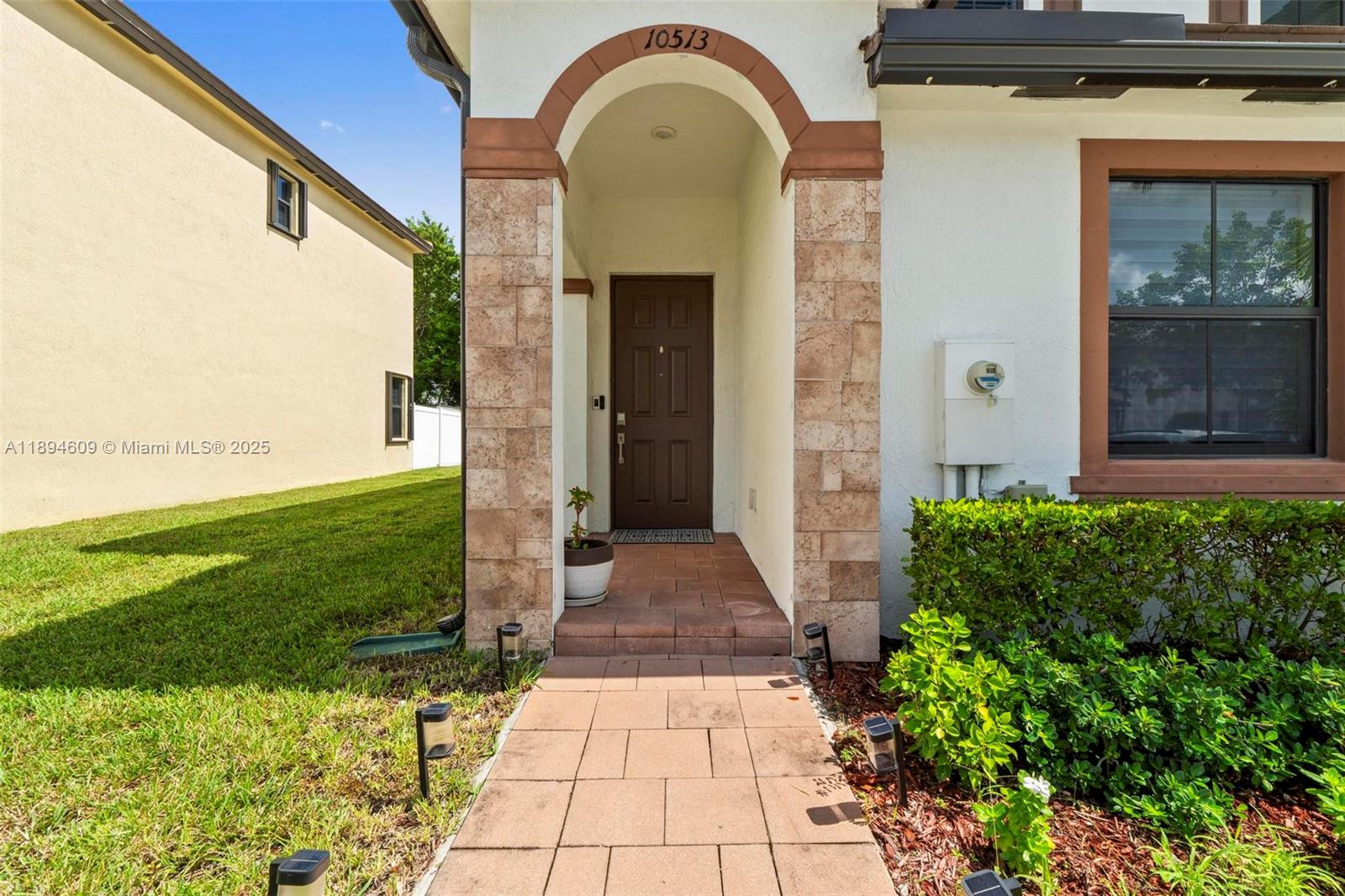 Corner townhouse in the exclusive Aquabella community. This three-bedroom townhouse boasts the best layout in the community, with three full bathrooms (one for each bedroom). One of the bedrooms is located downstairs for maximum privacy or use as an office. The other two bedrooms are located upstairs. Additional side windows allow for abundant natural light. Enjoy a modern kitchen with stainless steel appliances, an open concept, and newly refinished flooring. Enjoy a private backyard. The community is located in an excellent school zone. It features a spacious clubhouse, fitness center, swimming pool, children's water park, security, and the HOA covers front yard maintenance.