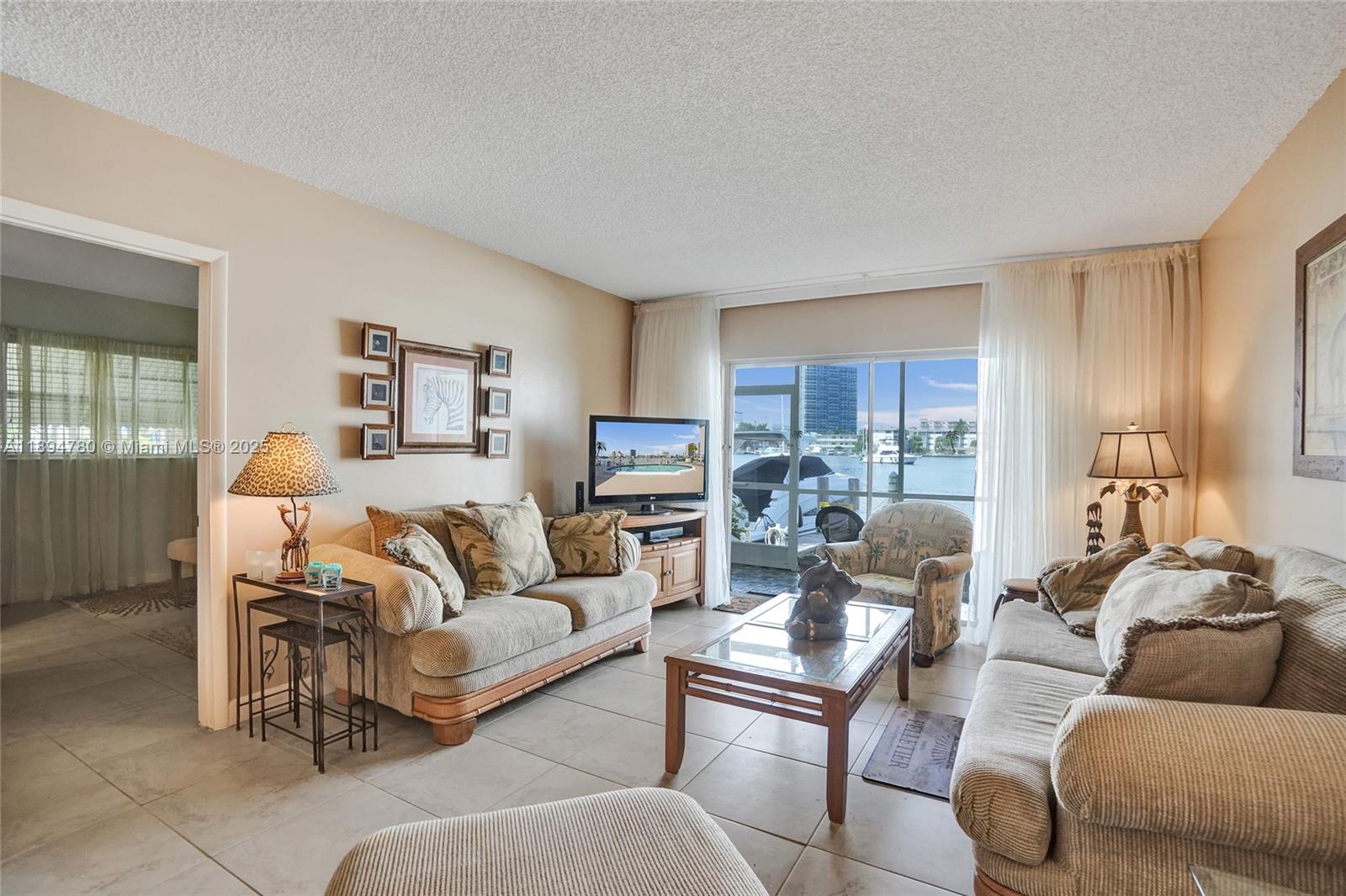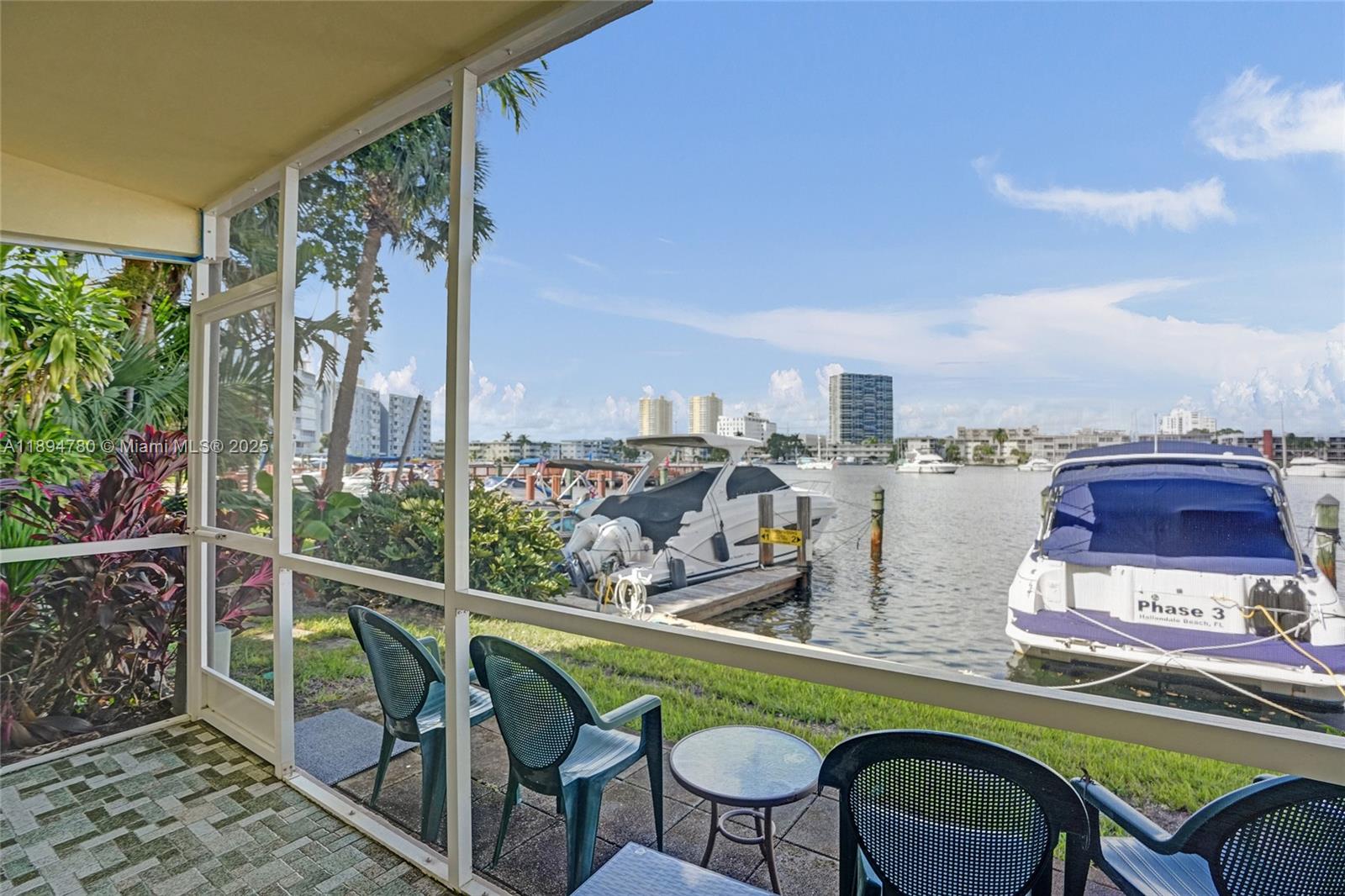 Beautiful corner unit with stunning Intracoastal views and a screened terrace featuring a private exterior door on the first floor. Ideally located in the heart of Hallandale, perfect for boat owners. This fully furnished 2-bedroom residence offers a granite countertop kitchen with stainless steel appliances. Dock space available for boats up to 35 ft, including water and electricity. This HOPA community is a co-op where the land is owned and fully paid by the seller. Amenities include a waterfront pool and sundeck directly on the Intracoastal, BBQ area, and shuffleboard. Prime location near restaurants, grocery stores, and the beach. Internet and cable are included in the HOA fees.