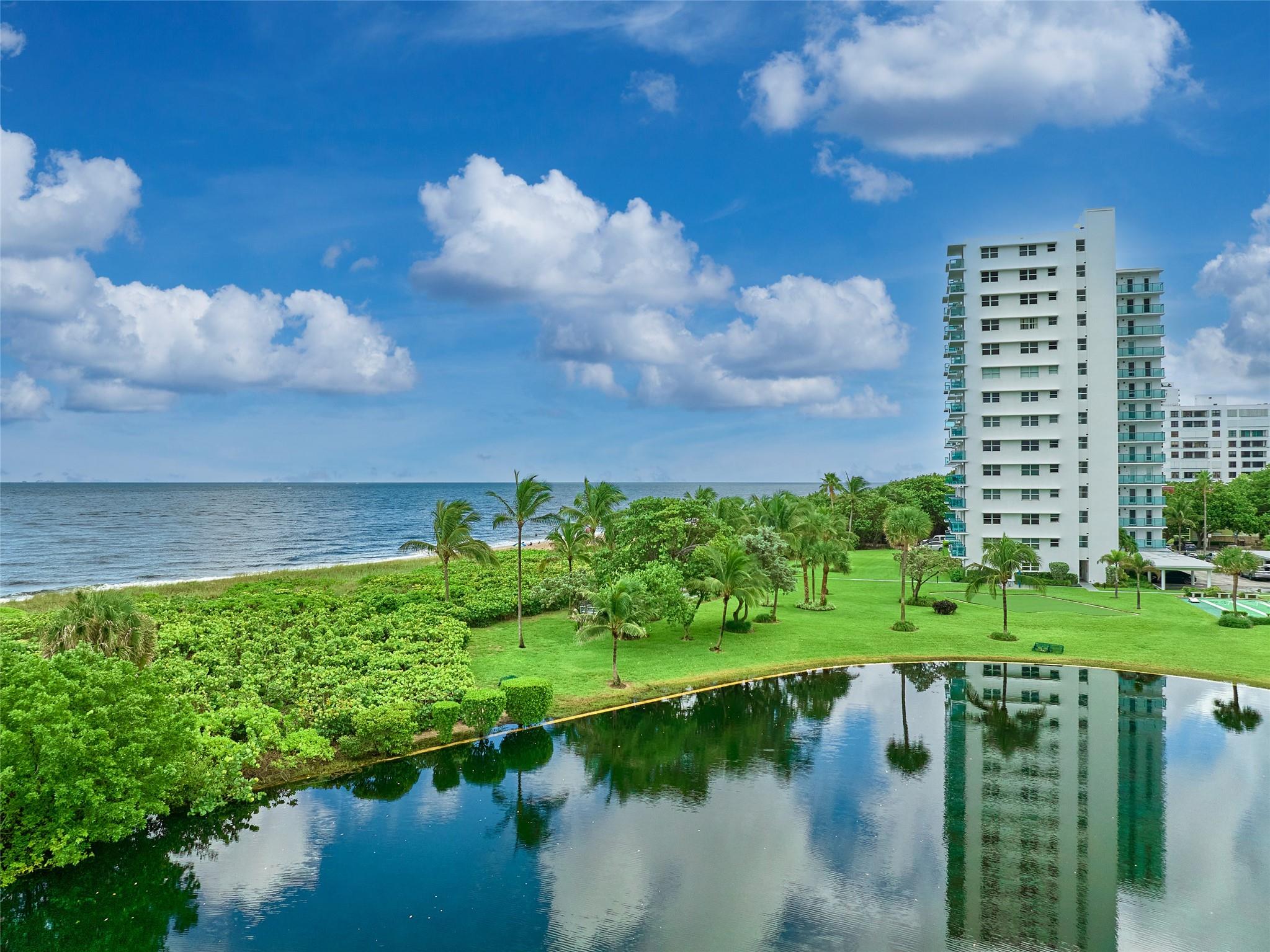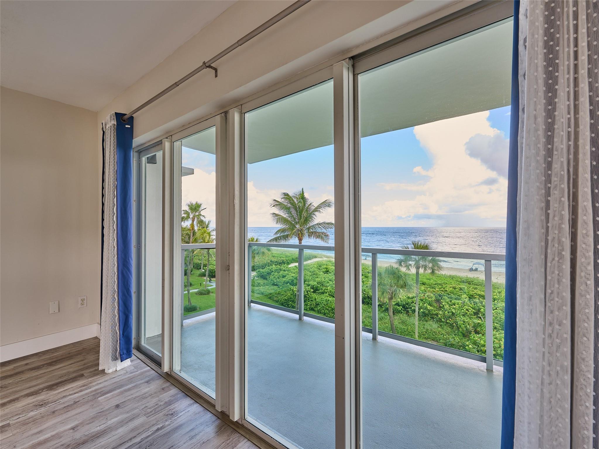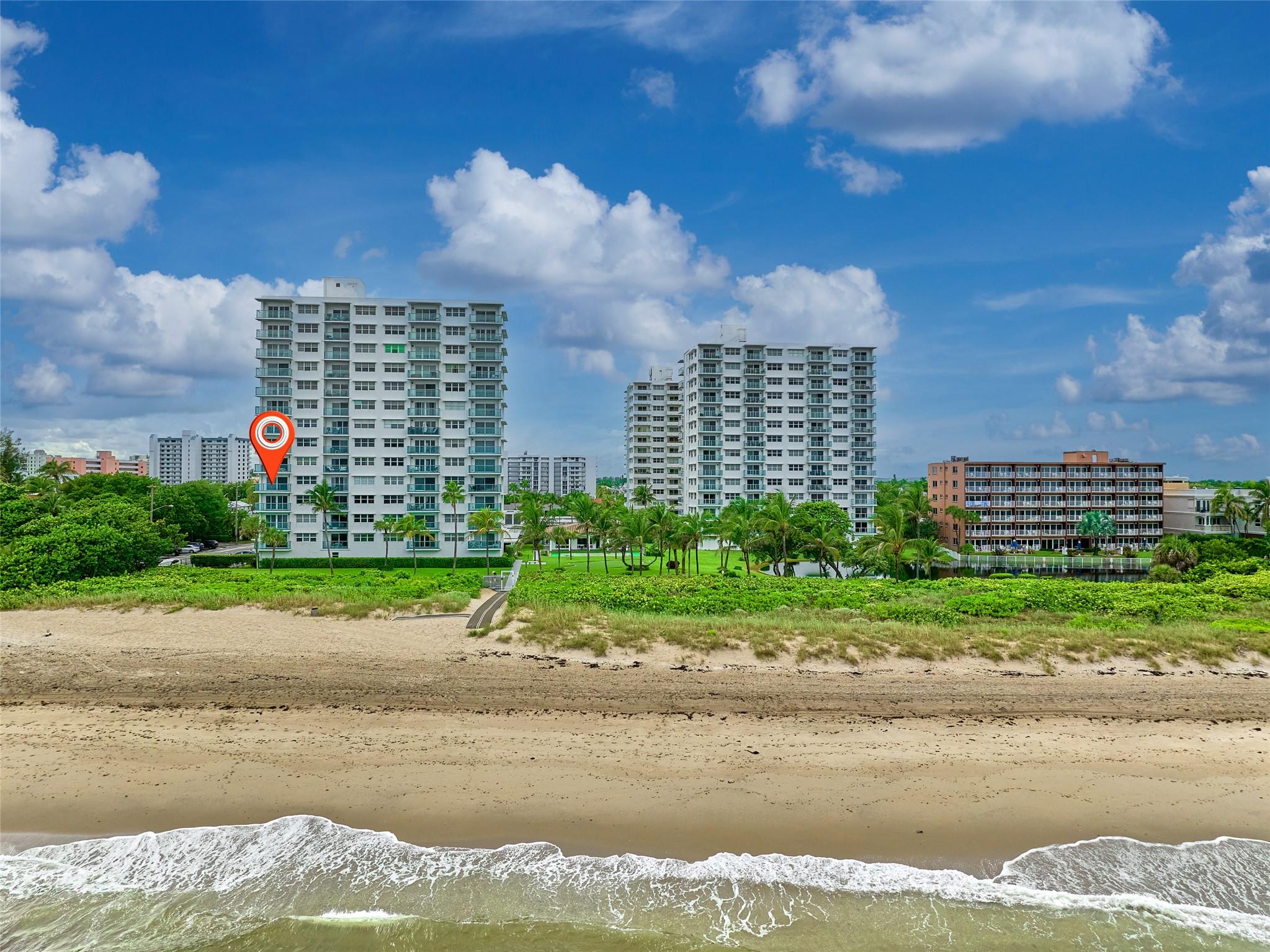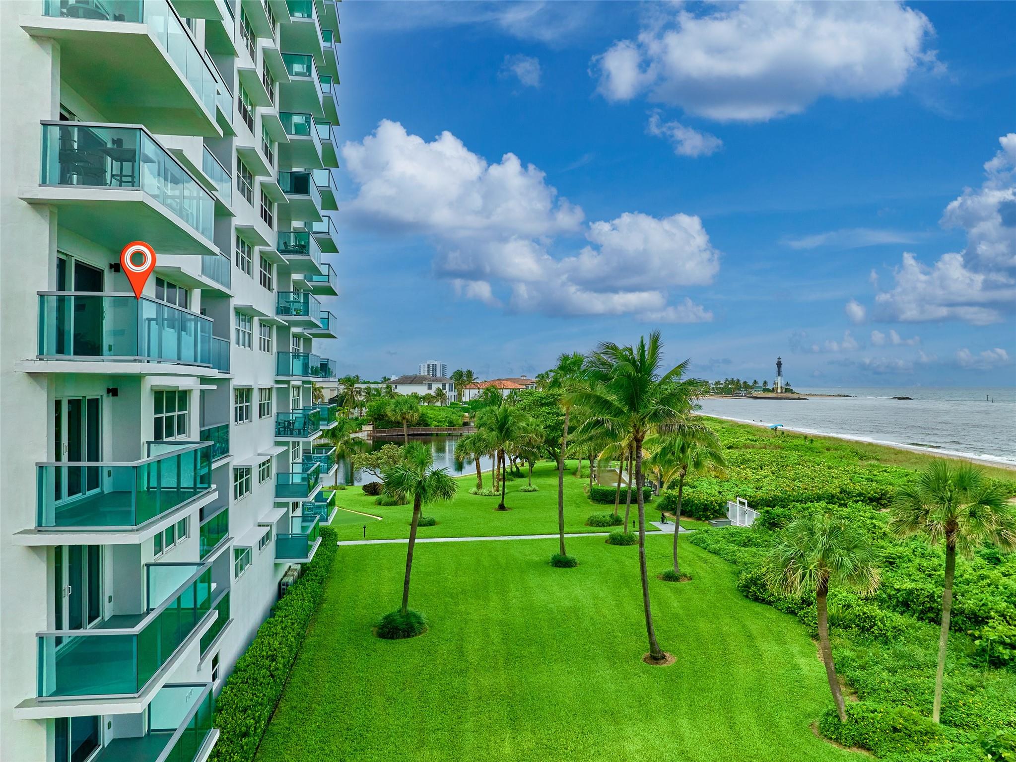 Beautiful SE corner 2BR/2BA oceanfront condo with panoramic views of the ocean and historic Hillsboro Lighthouse. This bright, airy unit features an open kitchen, spacious bedrooms, and updated with luxury vinyl plank flooring. Enjoy the private glass balcony and ample natural light from large windows. The building offers a new fitness center, bike room, and laundry facilities. Amenities include private beach access, heated pool, clubhouse, putting green, shuffleboard, and bocce ball. Deeded covered parking and plenty of guest parking. Low maintenance fees and all assessments have been paid by seller. Perfect for full-time living or a beach getaway!