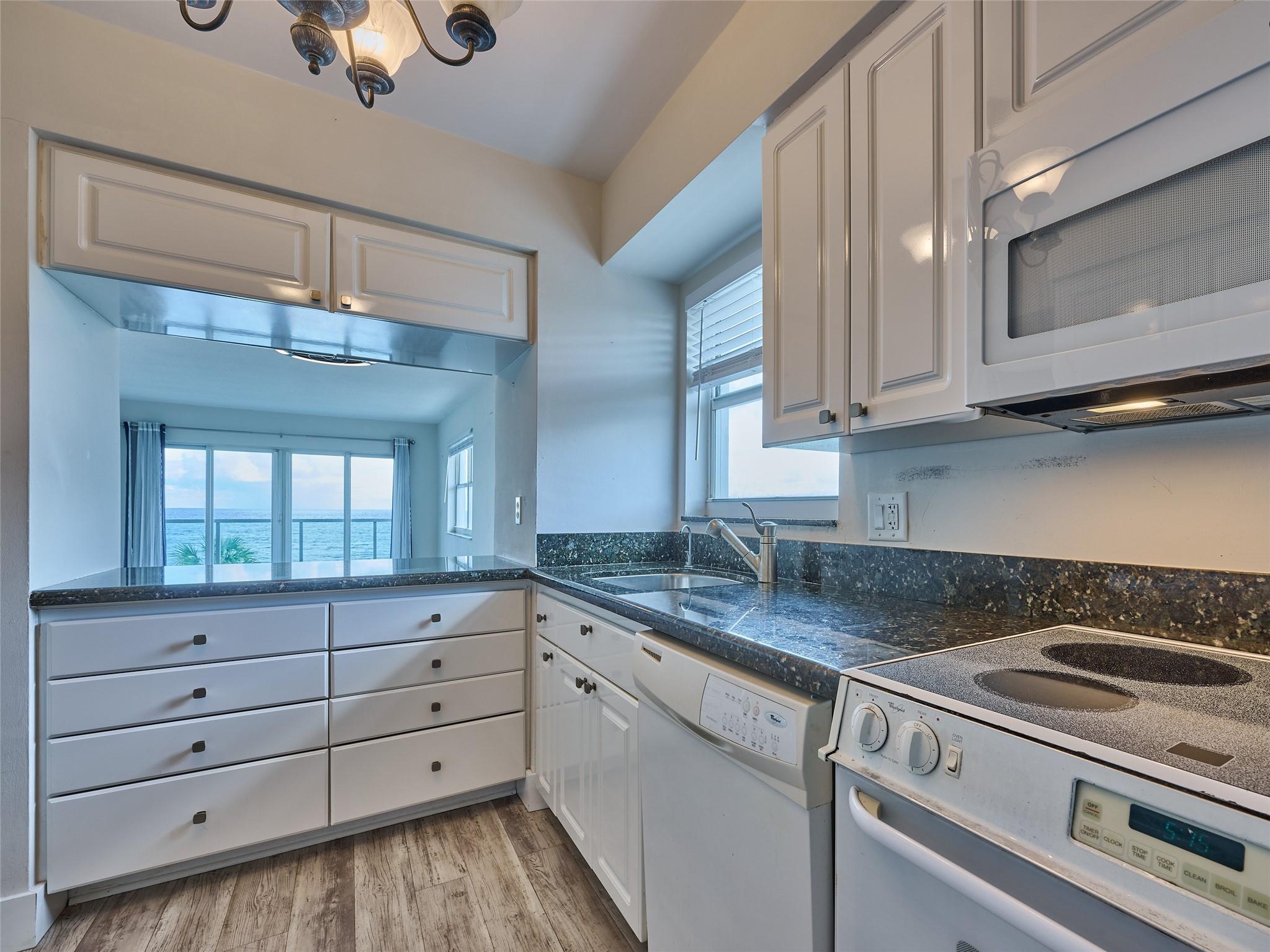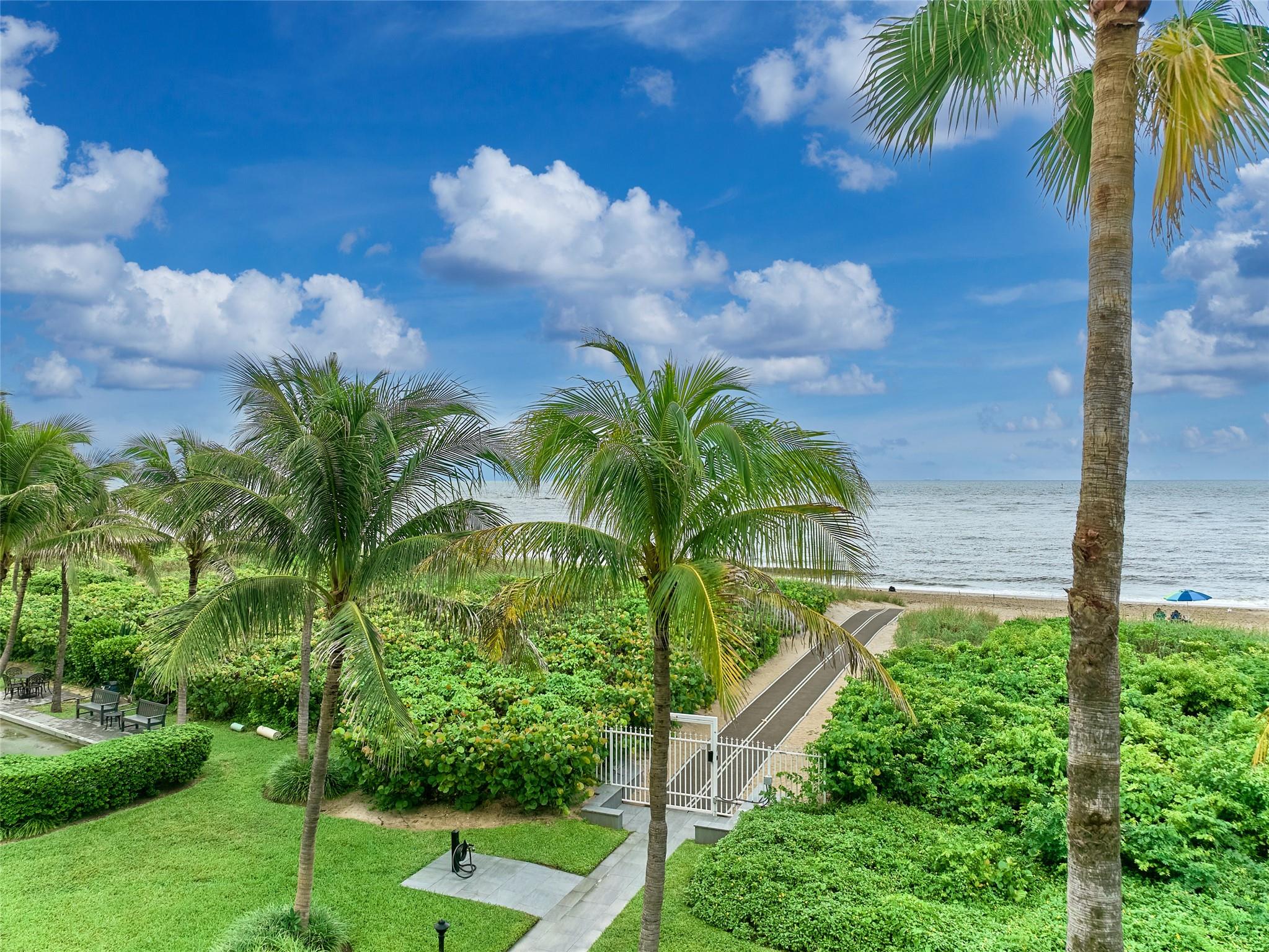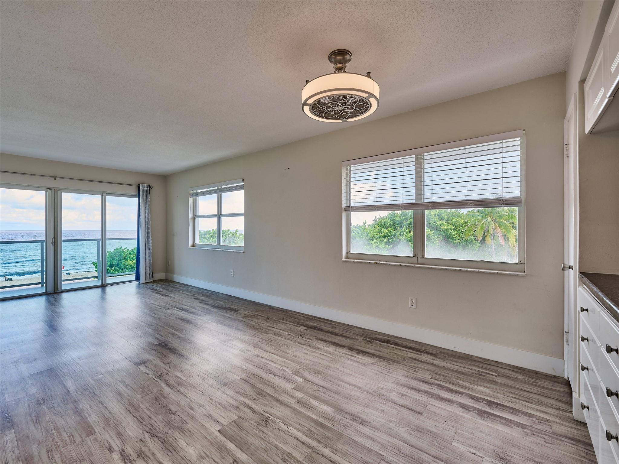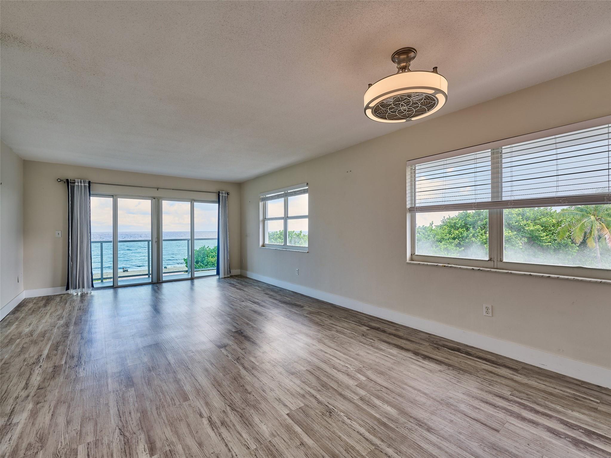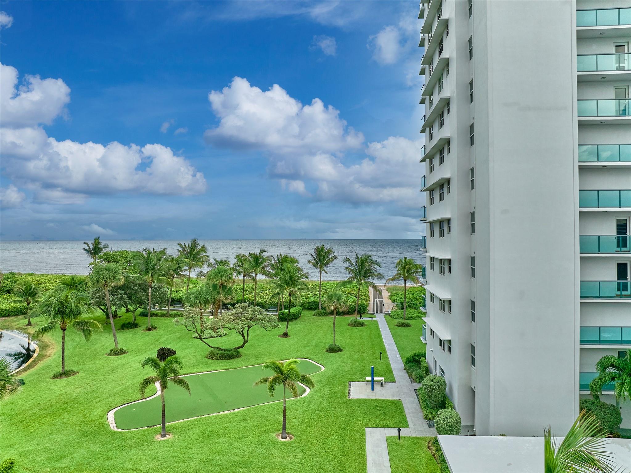 Beautiful SE corner 2BR/2BA oceanfront condo with panoramic views of the ocean and historic Hillsboro Lighthouse. This bright, airy unit features an open kitchen, spacious bedrooms, and updated with luxury vinyl plank flooring. Enjoy the private glass balcony and ample natural light from large windows. The building offers a new fitness center, bike room, and laundry facilities. Amenities include private beach access, heated pool, clubhouse, putting green, shuffleboard, and bocce ball. Deeded covered parking and plenty of guest parking. Low maintenance fees and all assessments have been paid by seller. Perfect for full-time living or a beach getaway!