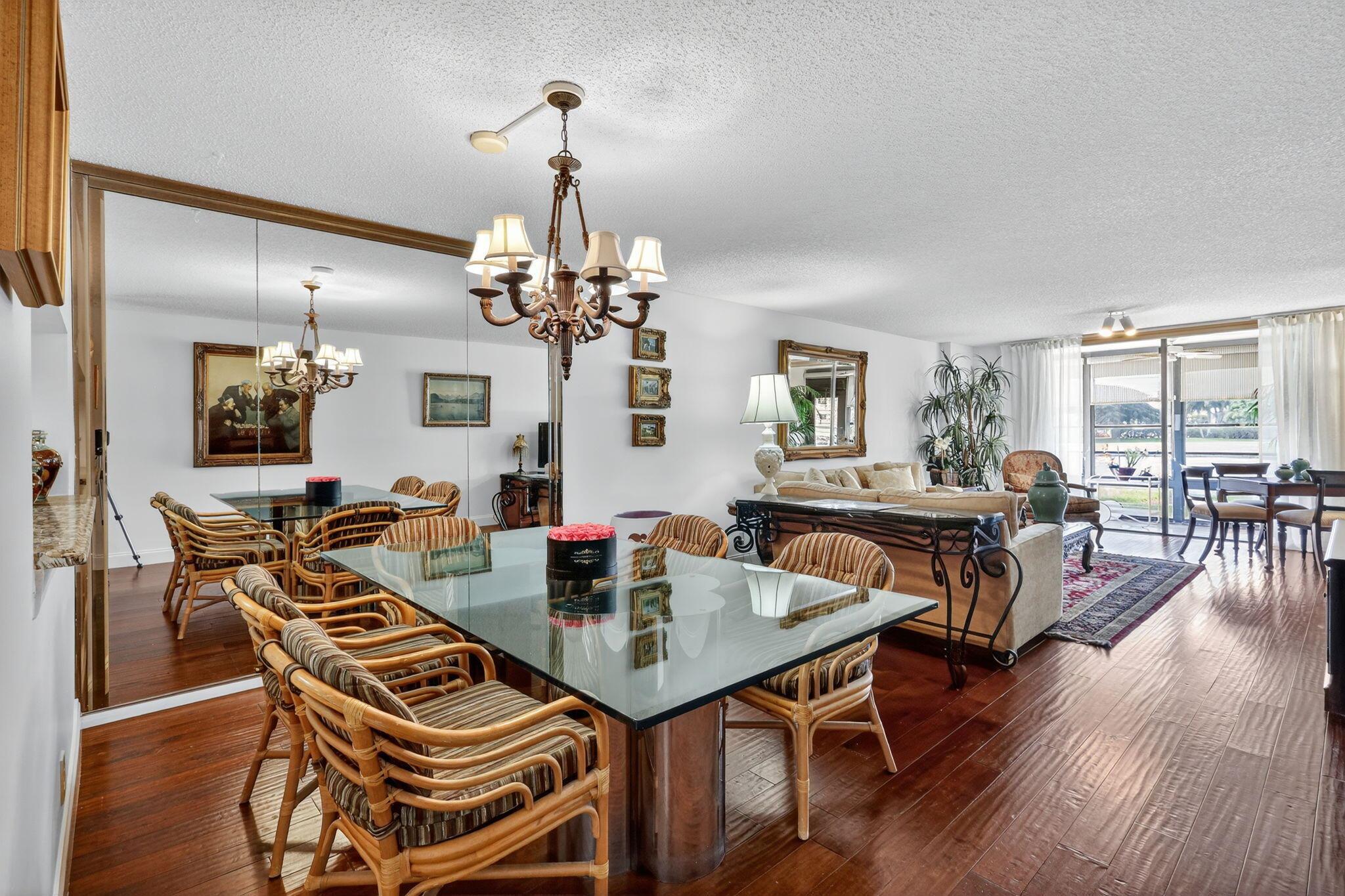 Enjoy this beautifully Watersedge updated 1st floor corner unit with a wrap-around water view in the vibrant community of Lakes of Delray. The location is ideal. 2 bedrooms, 2 baths. Luxurious wood flooring throughout the living area. A spacious kitchen with a cozy and convenient breakfast area and new blinds. The master bedroom has brand new wood-look floors. New ceiling fan and blinds also in the master. The primary bath was just completely renovated with dual sinks, new porcelain tile floors, quartz counters and contemporary cabinetry. The enclosed patio overlooks the tranquil lake and grassy expanse. The Lakes of Delray is an active community with a wide array of activities, clubs and entertainment.