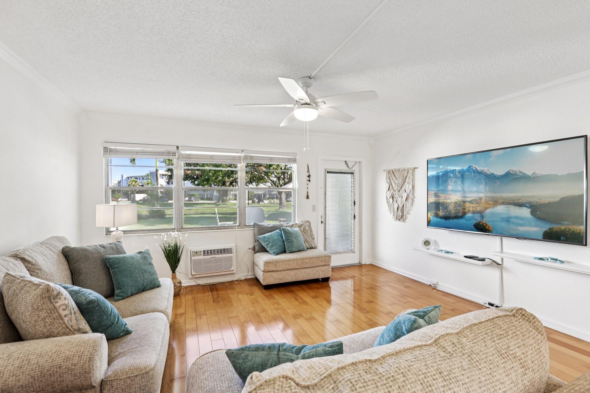 Welcome home to this spotless, updated and cheerful 1 bed 1 bath home in delightful Century Village East. Minutes to everything you need and want (shopping, restaurants and beach), CV offers its residents amazing amenities and social activities. The home features new AC, new fans/lighting, new appliances, new closet doors, new furnishings, new electric panel and crown molding. A new roof was just installed! No carpet anywhere! Wood laminate flooring in the living room and bedroom, tile in the kitchen and bathroom. Grill steaks at the open patio overlooking the lake. Laundry room is just next door. Clubhouse is just nearby. From the rear lanai, enjoy direct access to your vehicle! Just bring your suitcase and begin enjoying the amazing Florida lifestyle you've been dreaming of!