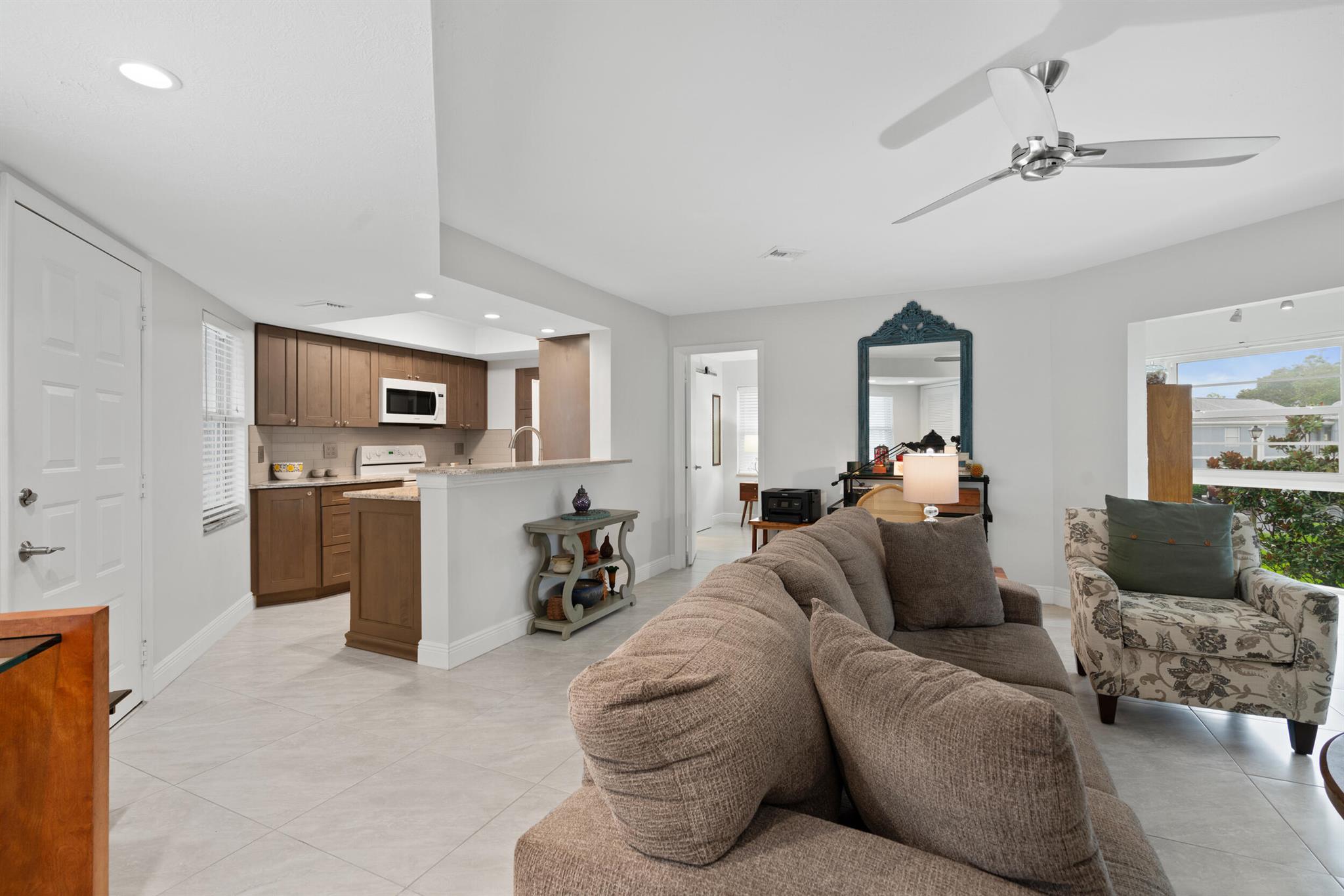 BEAUTIFULLY UPDATED 2-Bedroom Condo Designed for Relaxed Florida Living!This immaculate 1200 sq. ft, 2-bedroom, 2-bath home offers comfort, style and peace of mind with quality upgrades throughout. Each bedroom features its own private en-suite retreat with custom vanities, upgraded tile showers, and stylish lighting. The open kitchen offers modern cabinetry, gleaming granite countertops, a range of newer appliances, perfect for cooking or entertaining friends. Enjoy the comfort of FULL IMPACT-TINTED WINDOWS (2021), a screened security door, and cool, spotless tile floors throughout. Located in a friendly, all-ages, pet-welcoming community with a sparkling pool and tennis court, this move-in-ready condo blends modern upgrades with the easy, carefree lifestyle you've been dreaming of!