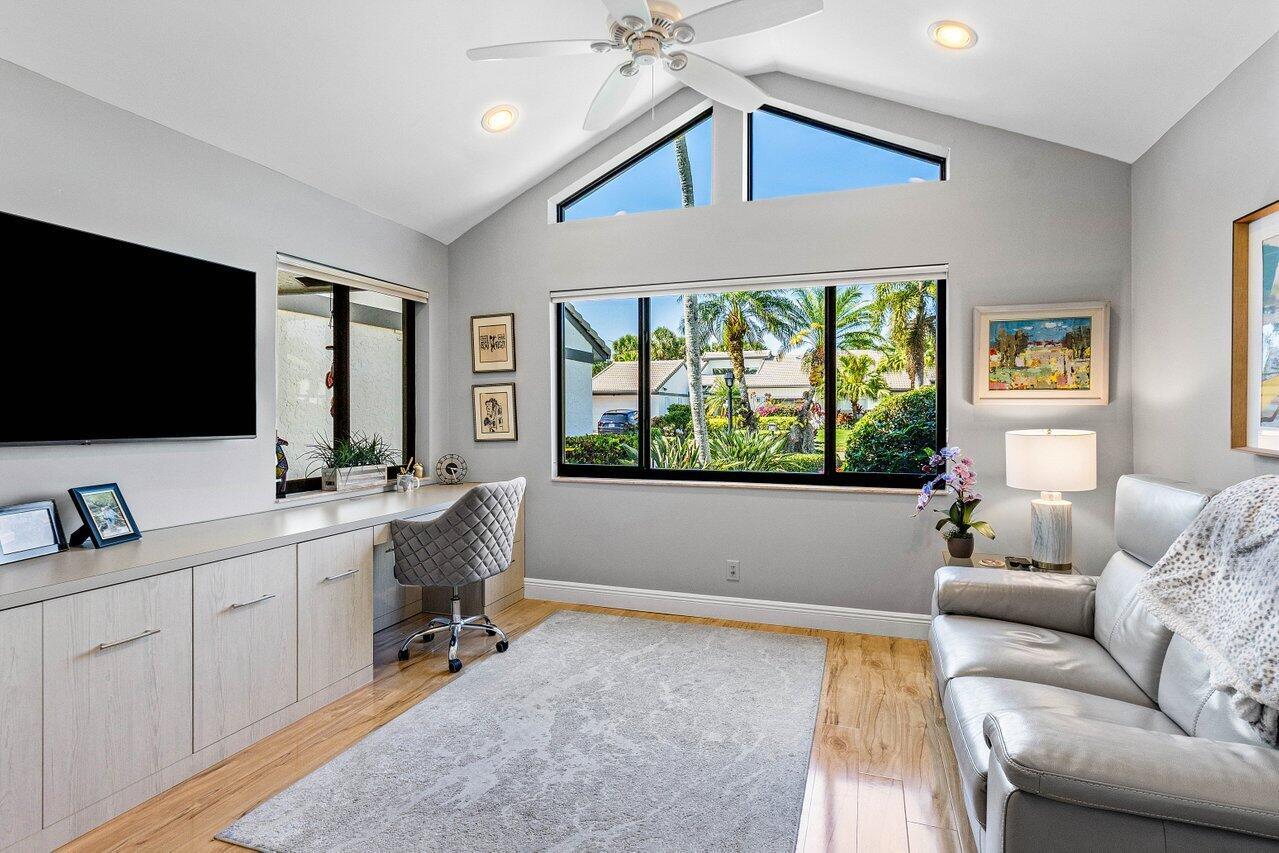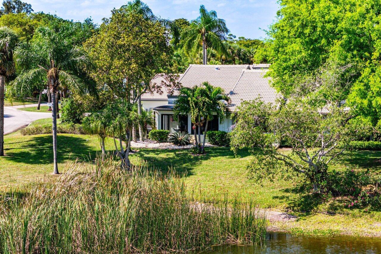 Beautifully remodeled custom villa, situated on a desirable corner lot in Cambridge II at Hunters Run Country Club. This residence offers 2 bedrooms and 2 bathrooms, with custom additions totaling over 2400sf of living space. Step inside to a sun-filled great room with vaulted ceiling and water views. Entertain guests in the formal living room or relax in the casual family room. French doors lead to a charming private patio perfect for outdoor dining. The primary suite boasts custom closets and a gorgeous spa-style bathroom. The guest suite features a custom parlor addition great for an office or additional sleeping space. Other notable highlights include a full-house standby generator, partial hurricane impact windows/shutters, a 1.5-car garage, and much more.