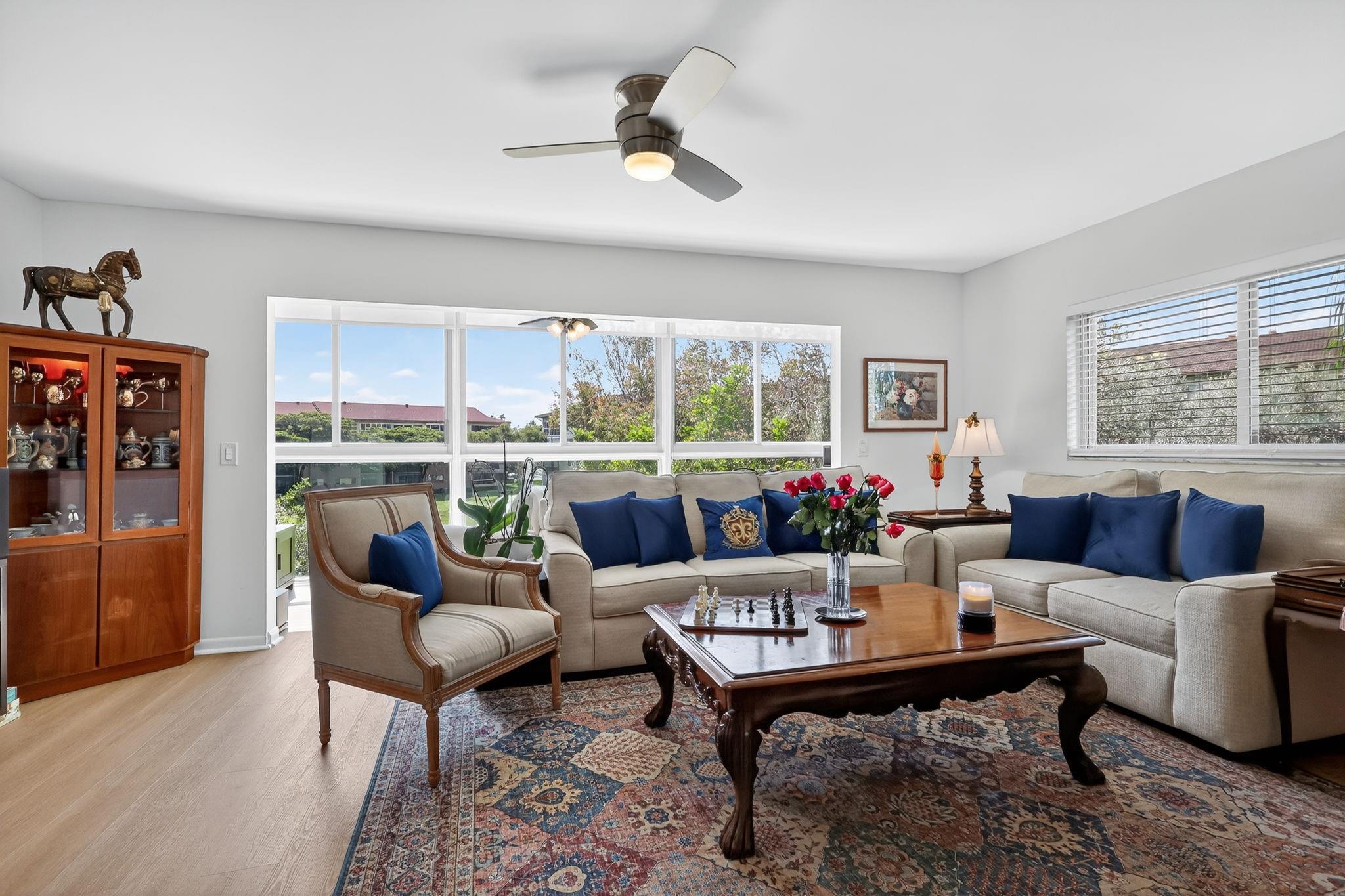 Amazing green garden views from this beautifully maintained corner Magnolia model! Bright, spacious, and tastefully updated, impact windows throughout, vinyl floors, and honeycomb electric shades. Remodeled kitchen with granite countertops, stainless-steel appliances, recessed lighting, a double sink, pantry, and reverse osmosis water system. Enclosed balcony extends the living room, offering additional interior square footage and a perfect space to relax or entertain. Master bedroom with walk-in closet and a remodeled bathroom with a walk-in shower and dual vanities. Newer A/C and water heater, parking space right across from the elevator. Located between 2 pools, close to the Pembroke Road back gate. Association fee covers cable, internet, water, insurance, roof, and all amenities.