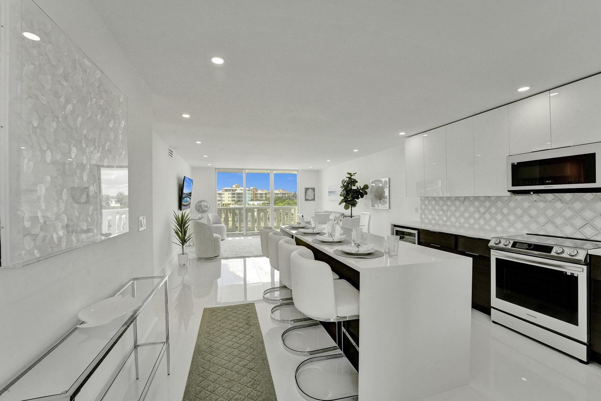 STUNNING CONDO with Direct Waterview's of the intracoastal from your living room and bedroom. Milestone inspection completed. Fully renovated unit bright and white with natural light! The most beautiful unit on the market you will find! Priced Ready to sell! New impact glass slider and windows through out all new Samsung bespoke white acrylic appliances adding a fresh look to this amazing condo! Entertain from the large island kitchen counter with wine cooler. brand new AC Unit and Water heater in the unit for stress free transaction. Both bathrooms are just gorgeous with wave tiles and new glass shower enclosures for the guest room and white marble look for the master, floating vanities for a spacious feel!