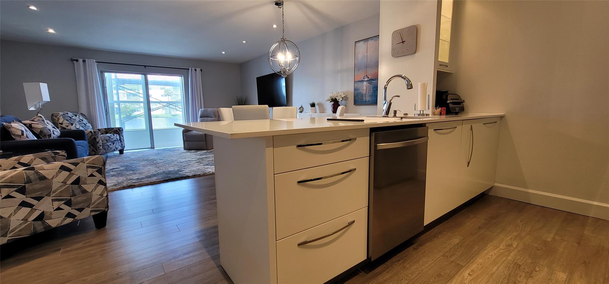STUNNING 1 BEDROOM 1 BATH CONDO with a breathtaking water view in the sought-after Castle Gardens 55+ community! This unit has been completely remodeled with high-end finishes and exquisite designer furniture—ready for you to move right in. Enjoy modern upgrades throughout, from the sleek kitchen and elegant bathroom to the stylish flooring and lighting. Relax on your private balcony overlooking the tranquil water. Castle Gardens offers a vibrant, active lifestyle with resort-style amenities including pools, clubhouse, fitness center, and social activities. Truly the best deal in Castle Gardens!